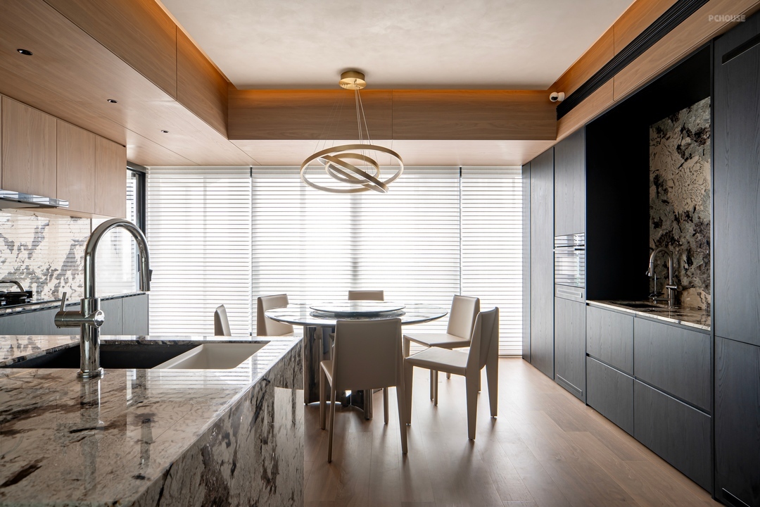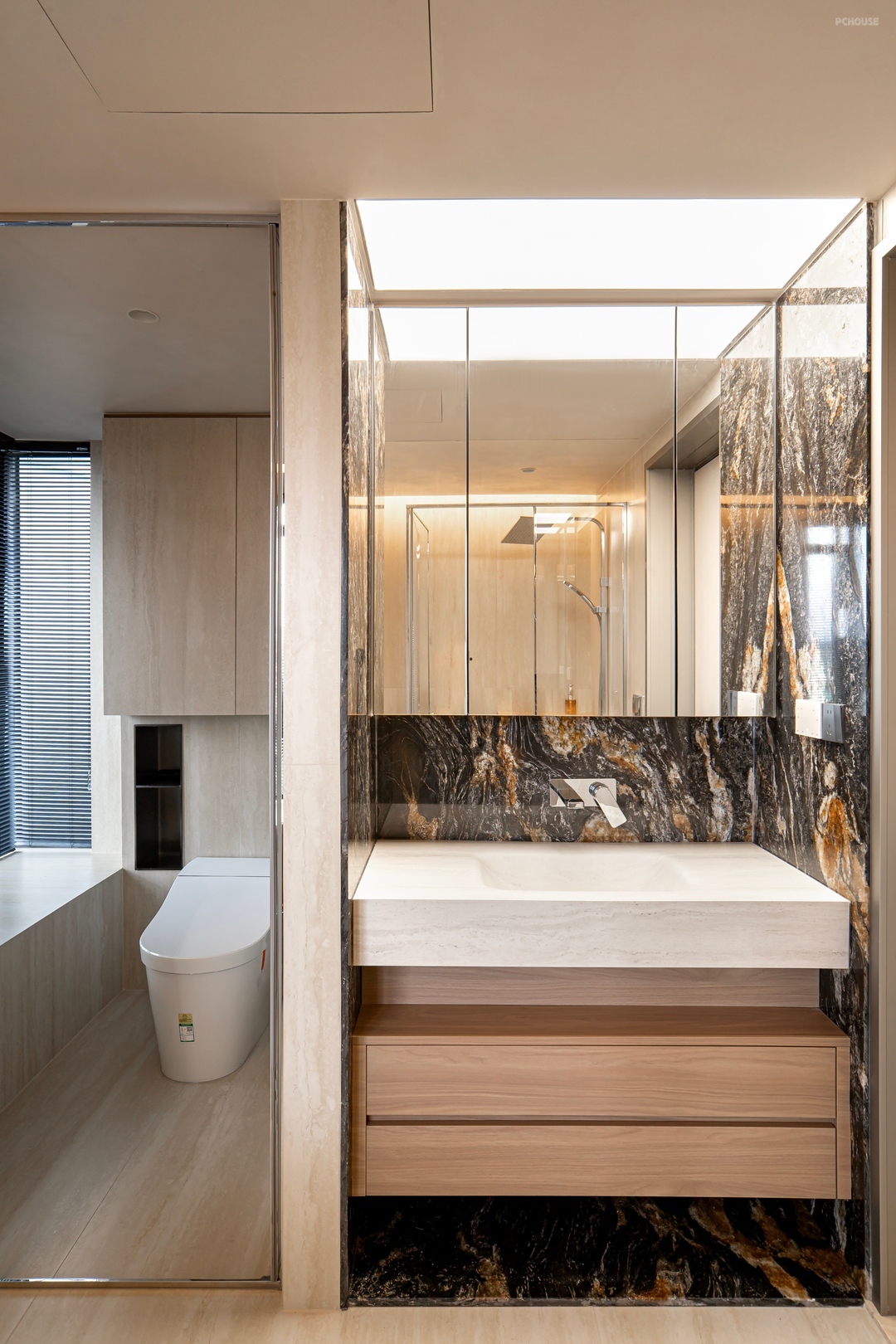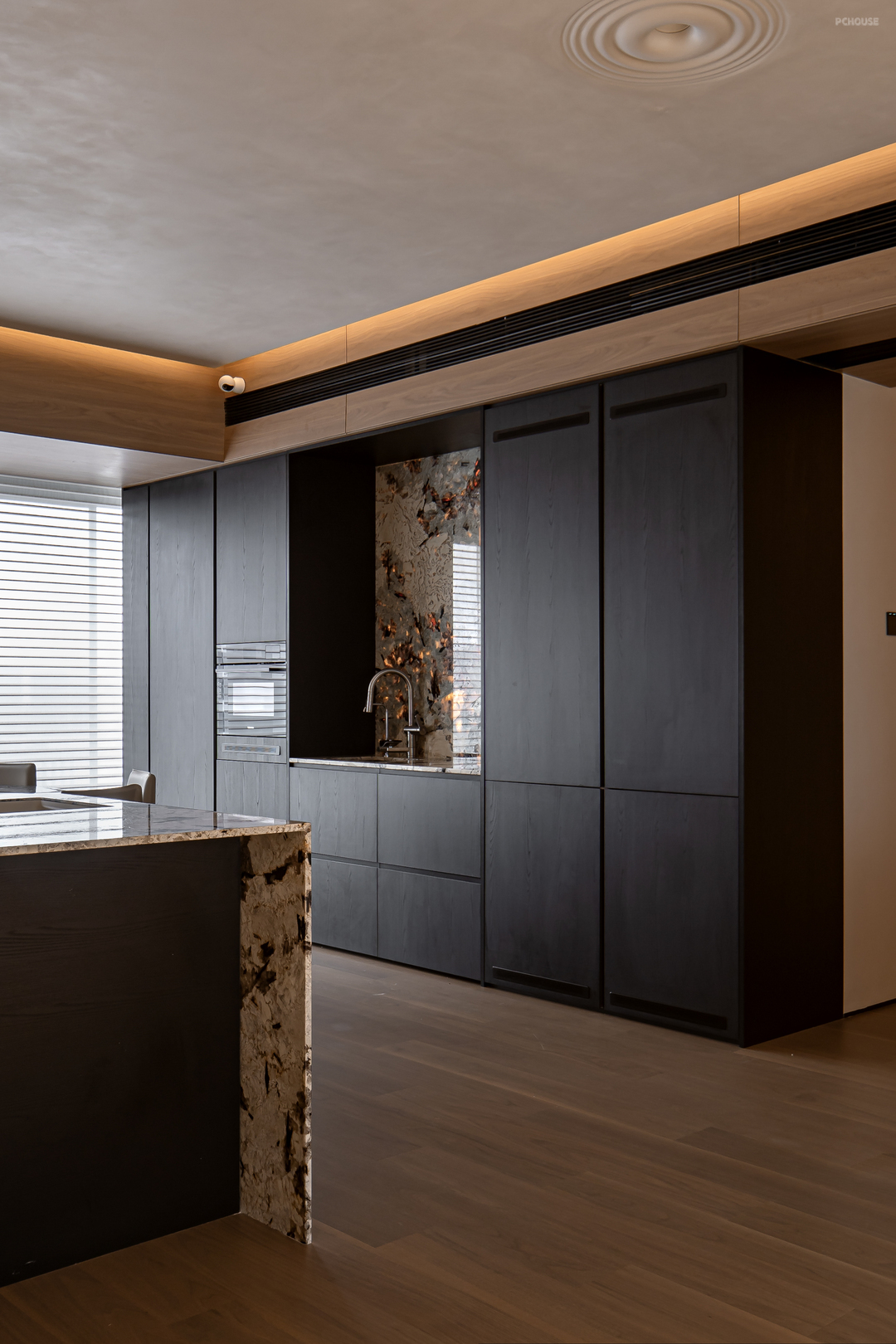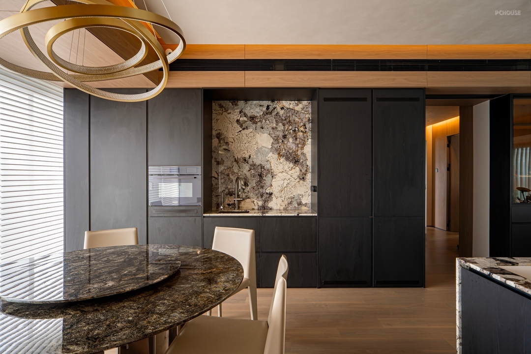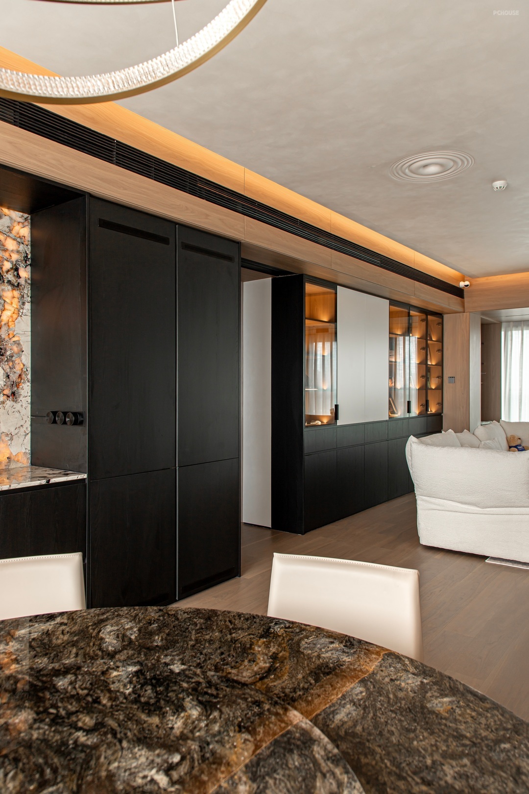 宝宝的妈妈是一位审美极好的老师,希望家里除了满足孩子的需求之外,也希望家有高级感,在材质与质感的选择搭配上,也遵循了女主人的喜好,空间里融入了有细节的奢石与木饰面,对日立中央空调的出风口位置也进行了精心设计。