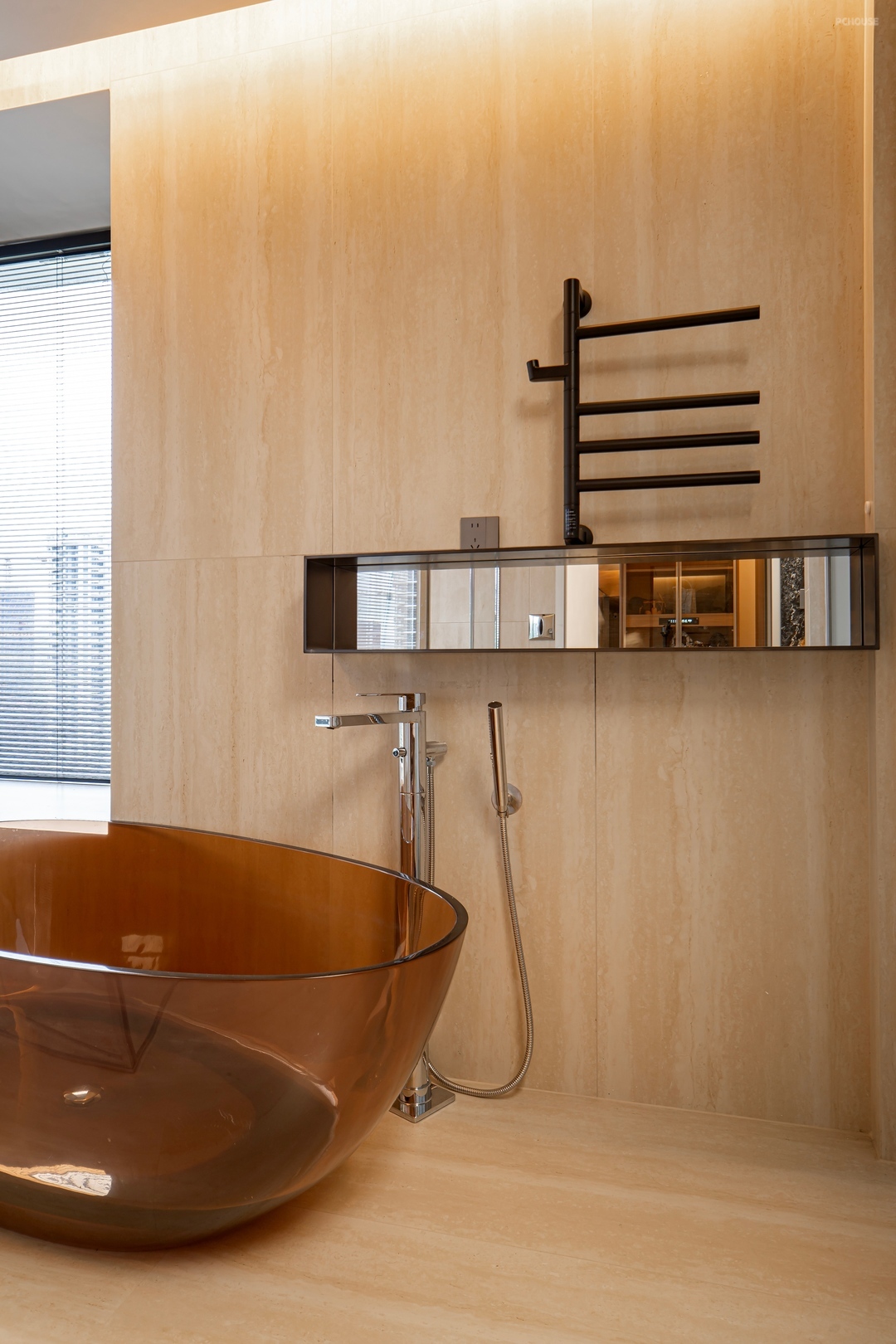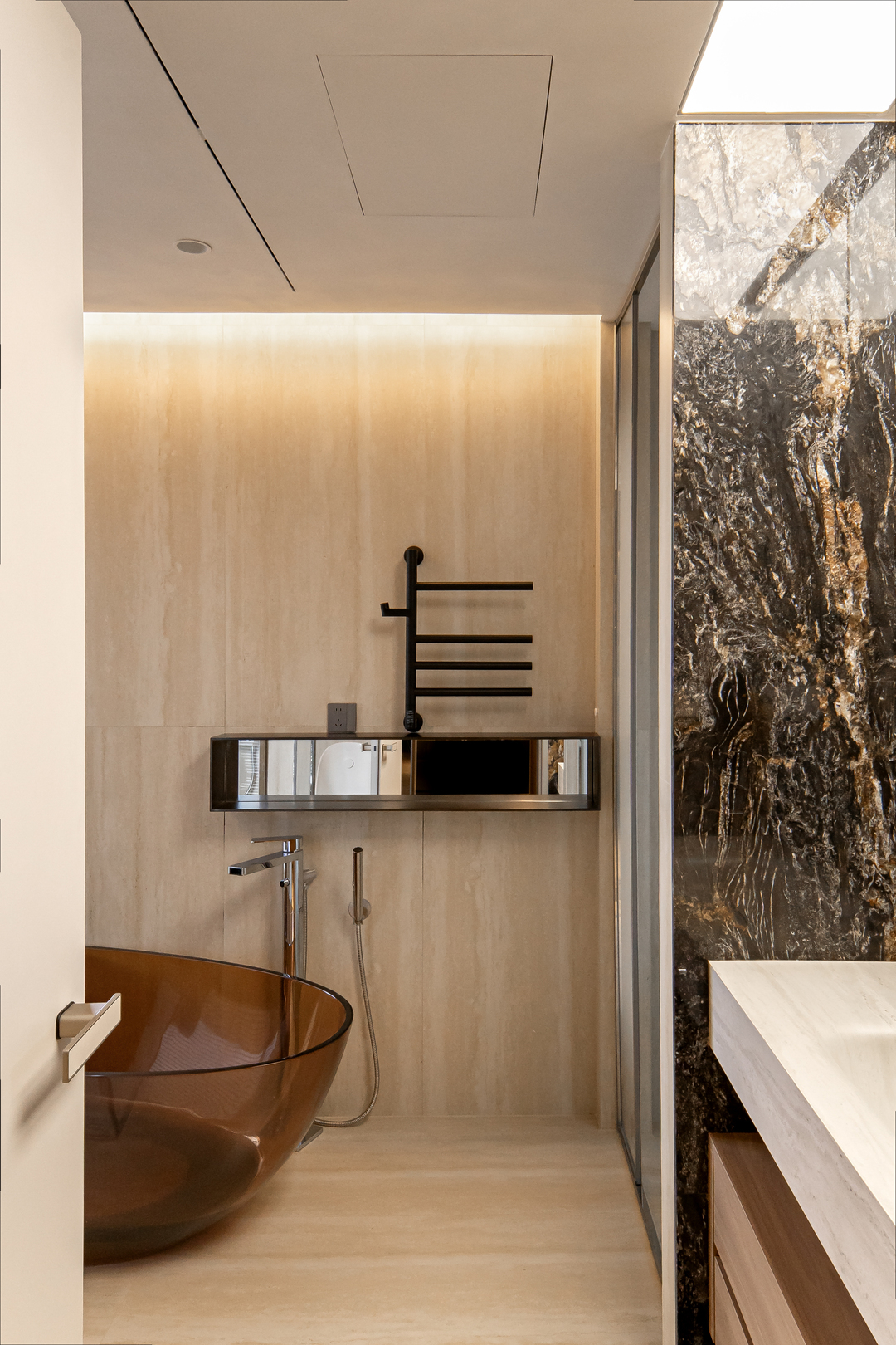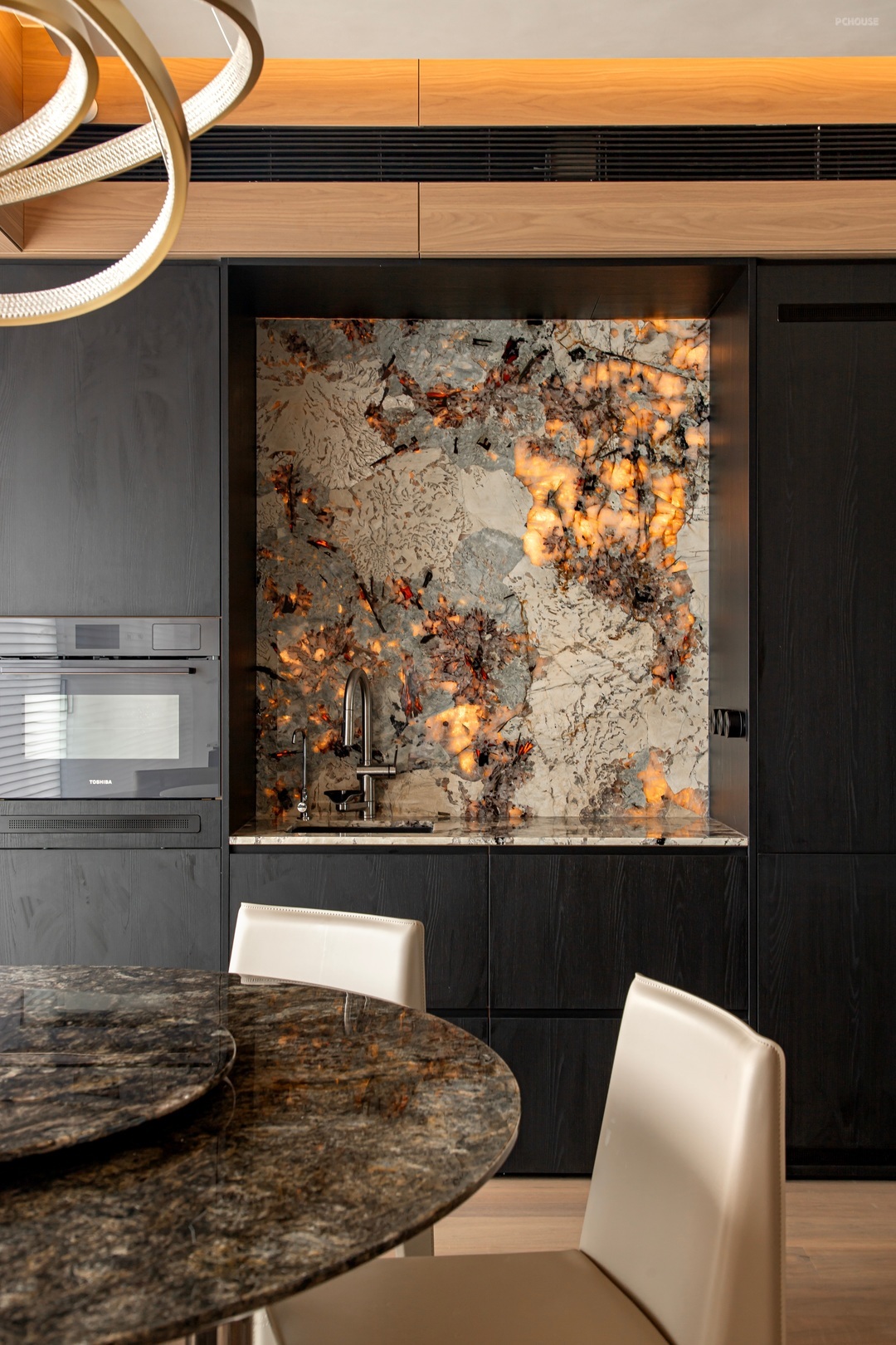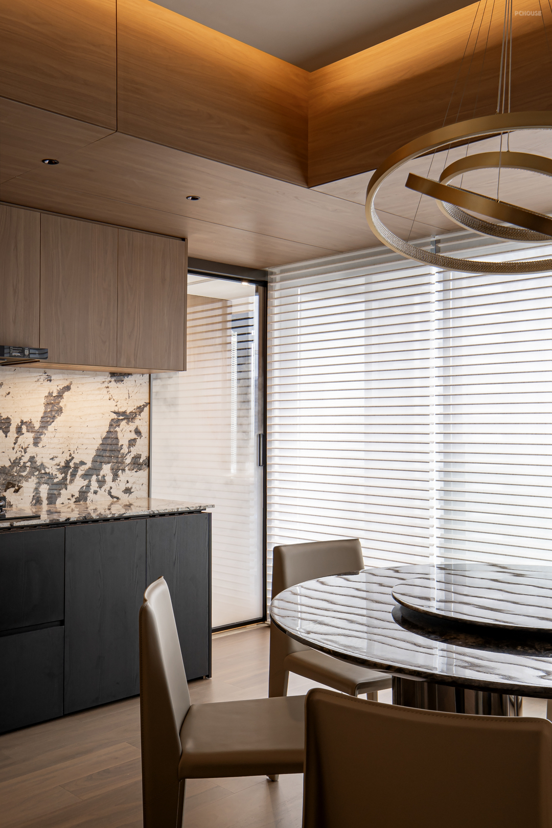 宝宝的妈妈是一位审美极好的老师,希望家里除了满足孩子的需求之外,也希望家有高级感,在材质与质感的选择搭配上,也遵循了女主人的喜好,空间里融入了有细节的奢石与木饰面,对日立中央空调的出风口位置也进行了精心设计。