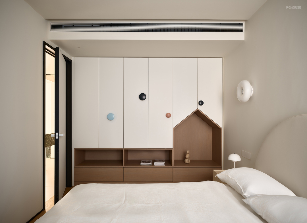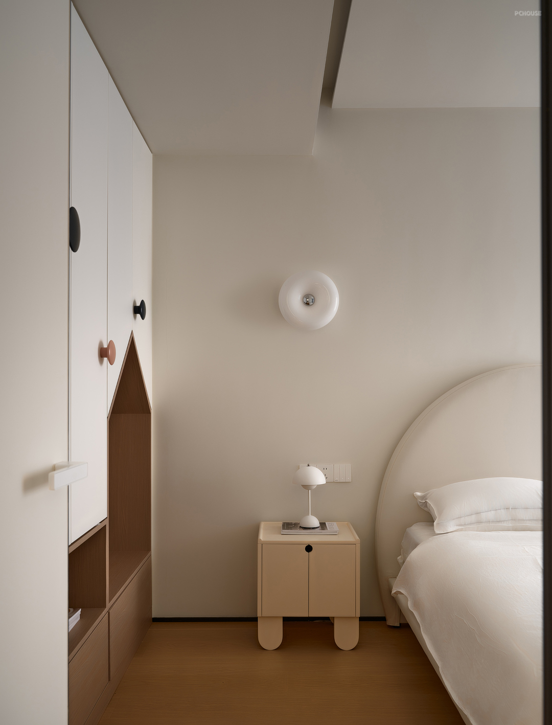 卧室的墙面采用了淡雅的色调,搭配柔和的灯光,营造出宁静舒适的休息环境。床品选择了柔软的材质,触感舒适,能够让人迅速放松身心,享受美好的睡眠时光。整个卧室的设计既实用又美观,满足了孩子的生活需求,也体现了设计师对细节的精心把控