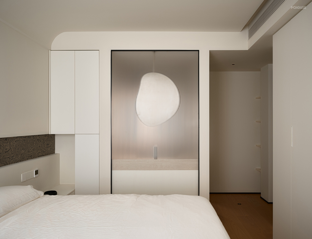 淡雅而极简的纯白色卧室,营造出清新舒适的氛围感!床头背景墙采用了简约的线条设计,与整体风格相呼应,显得既时尚又不失温馨。
