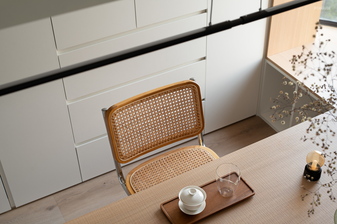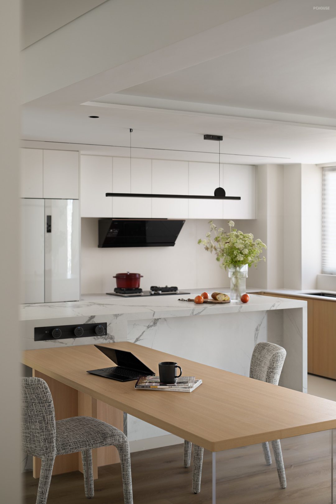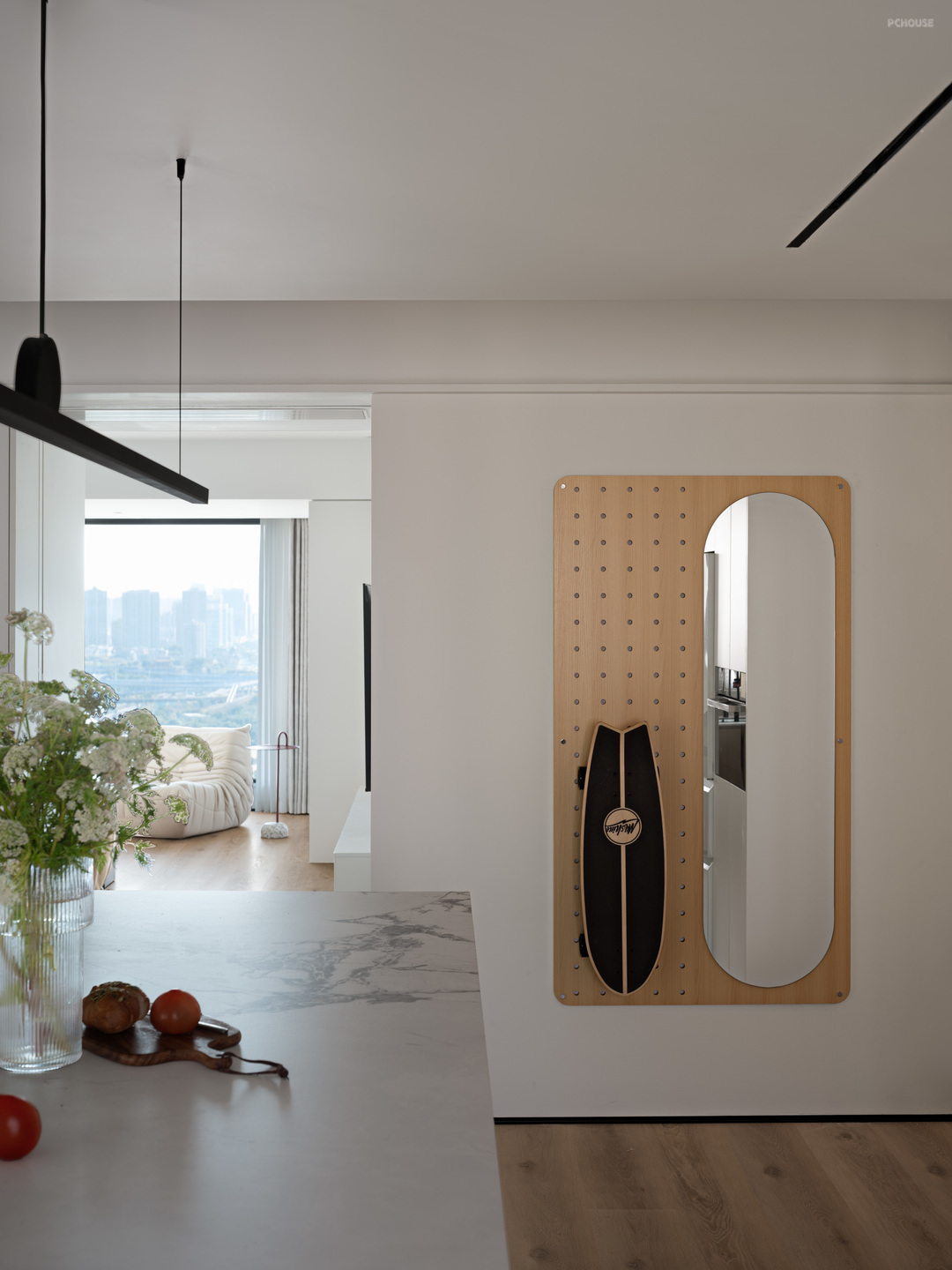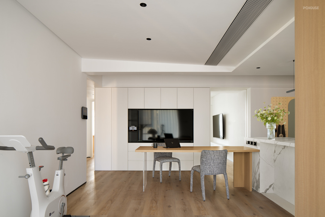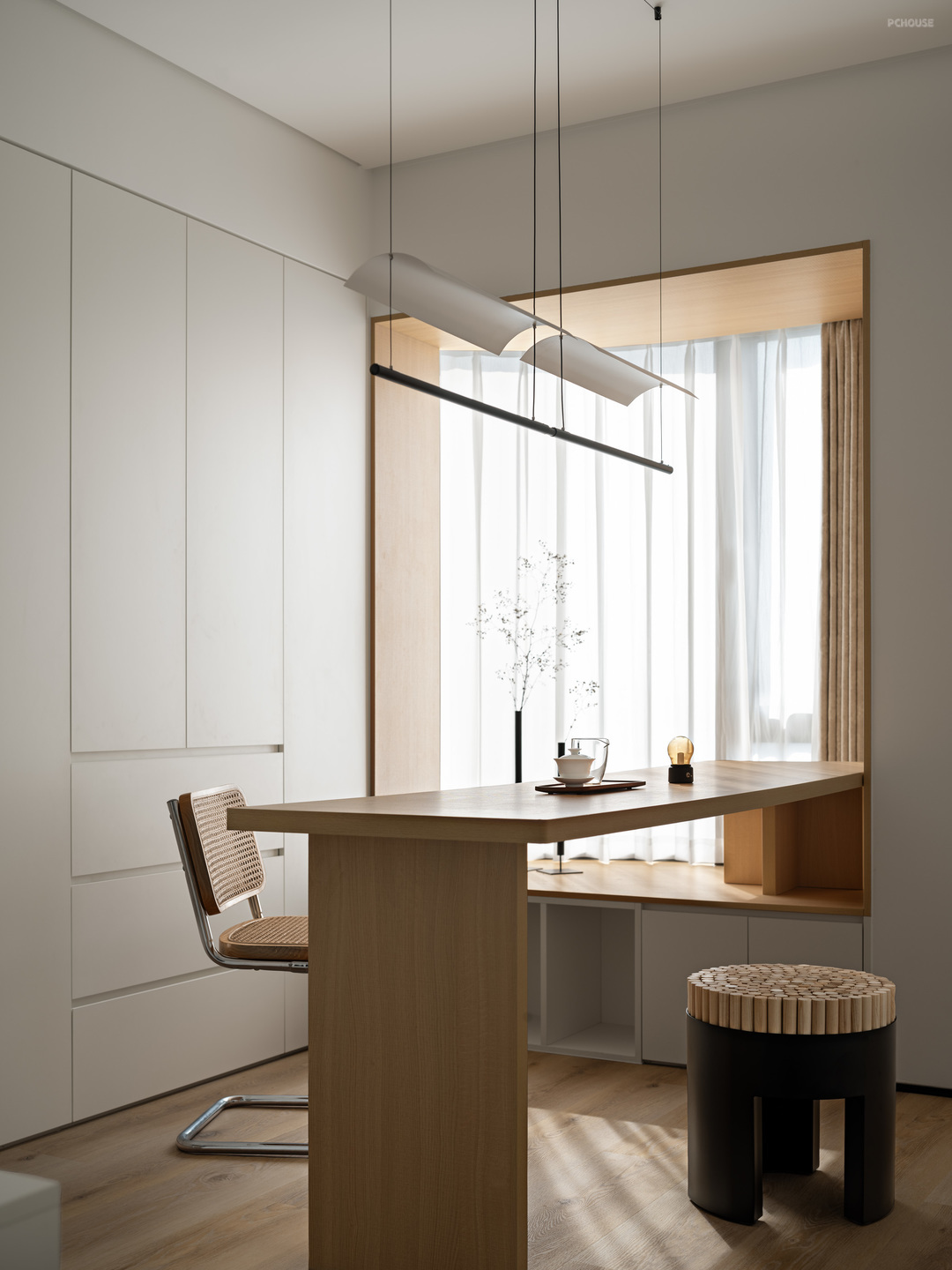 前言: 本案业主是一对年轻情侣,养了一只橘猫主子,想要一个原木柔和、温馨简单的家。喜欢彼此间能够随时互动交流,接受开放式厨房和去客厅化设计理念;想要一间能够满足两人同时开黑的独立电竞房、一间满足1-2人办公的书房,需有供宠物自由活动的空间;还有充裕的储物空间;需要减少人工打扫或清洁的频次。