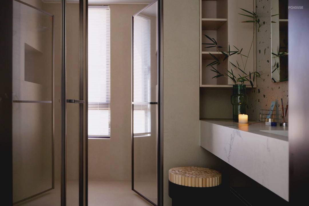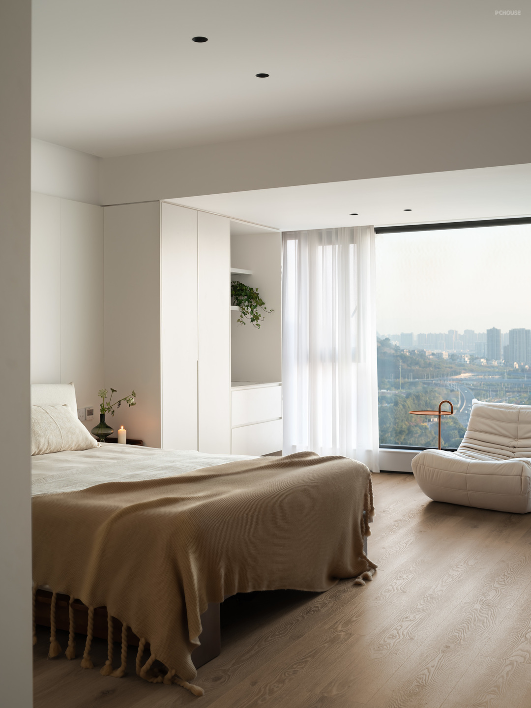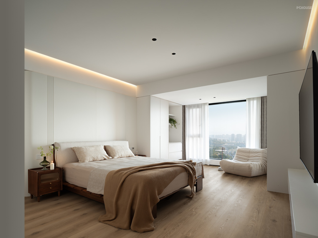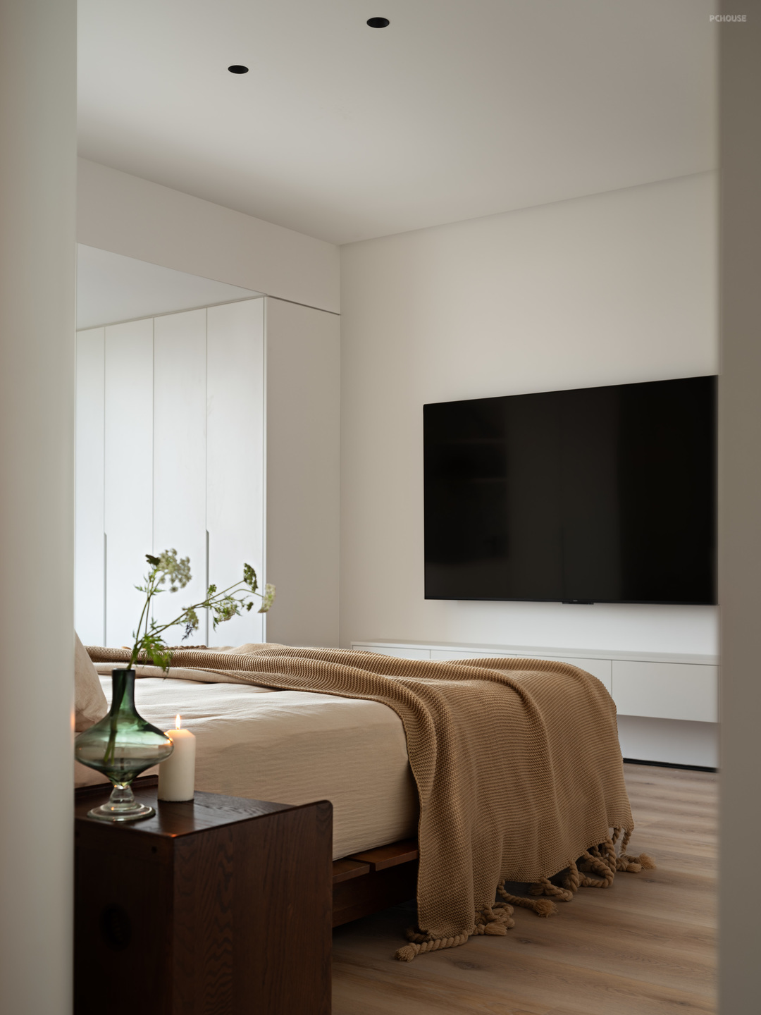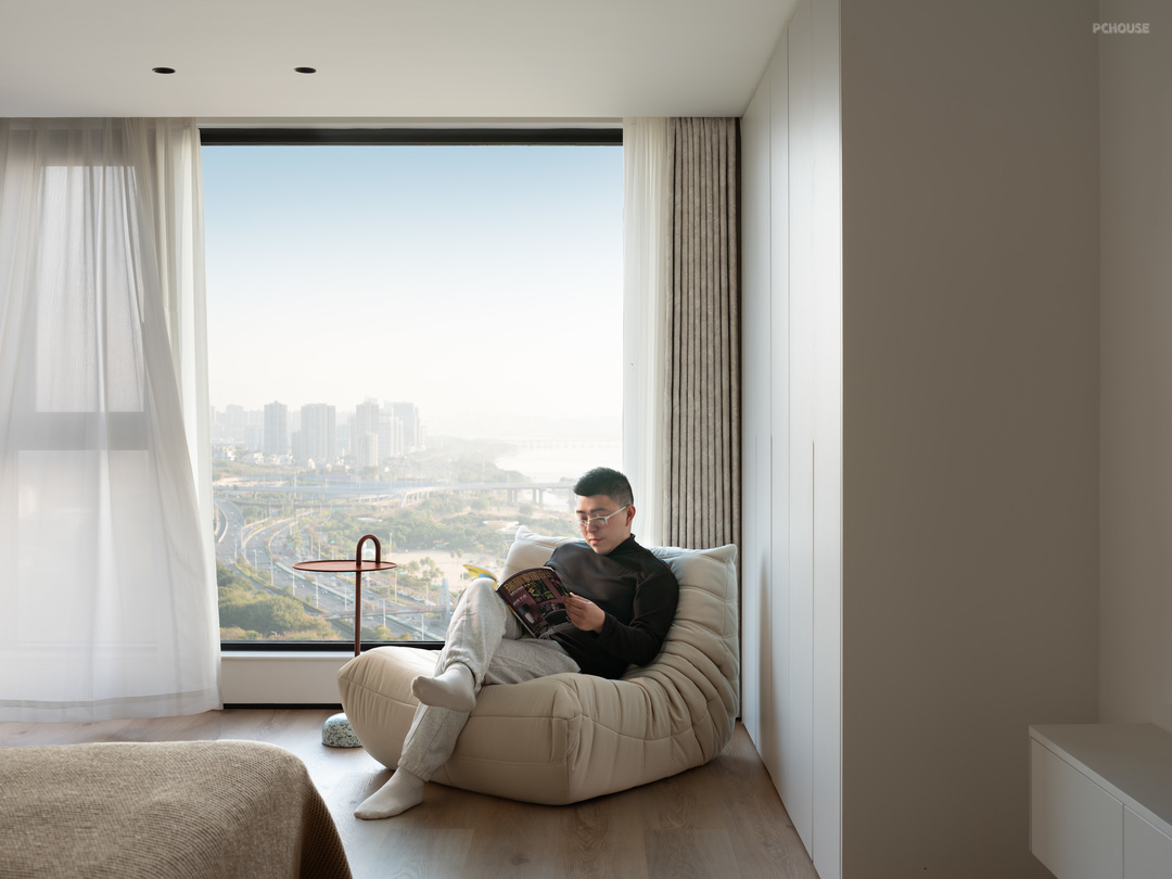 前言: 本案业主是一对年轻情侣,养了一只橘猫主子,想要一个原木柔和、温馨简单的家。喜欢彼此间能够随时互动交流,接受开放式厨房和去客厅化设计理念;想要一间能够满足两人同时开黑的独立电竞房、一间满足1-2人办公的书房,需有供宠物自由活动的空间;还有充裕的储物空间;需要减少人工打扫或清洁的频次。