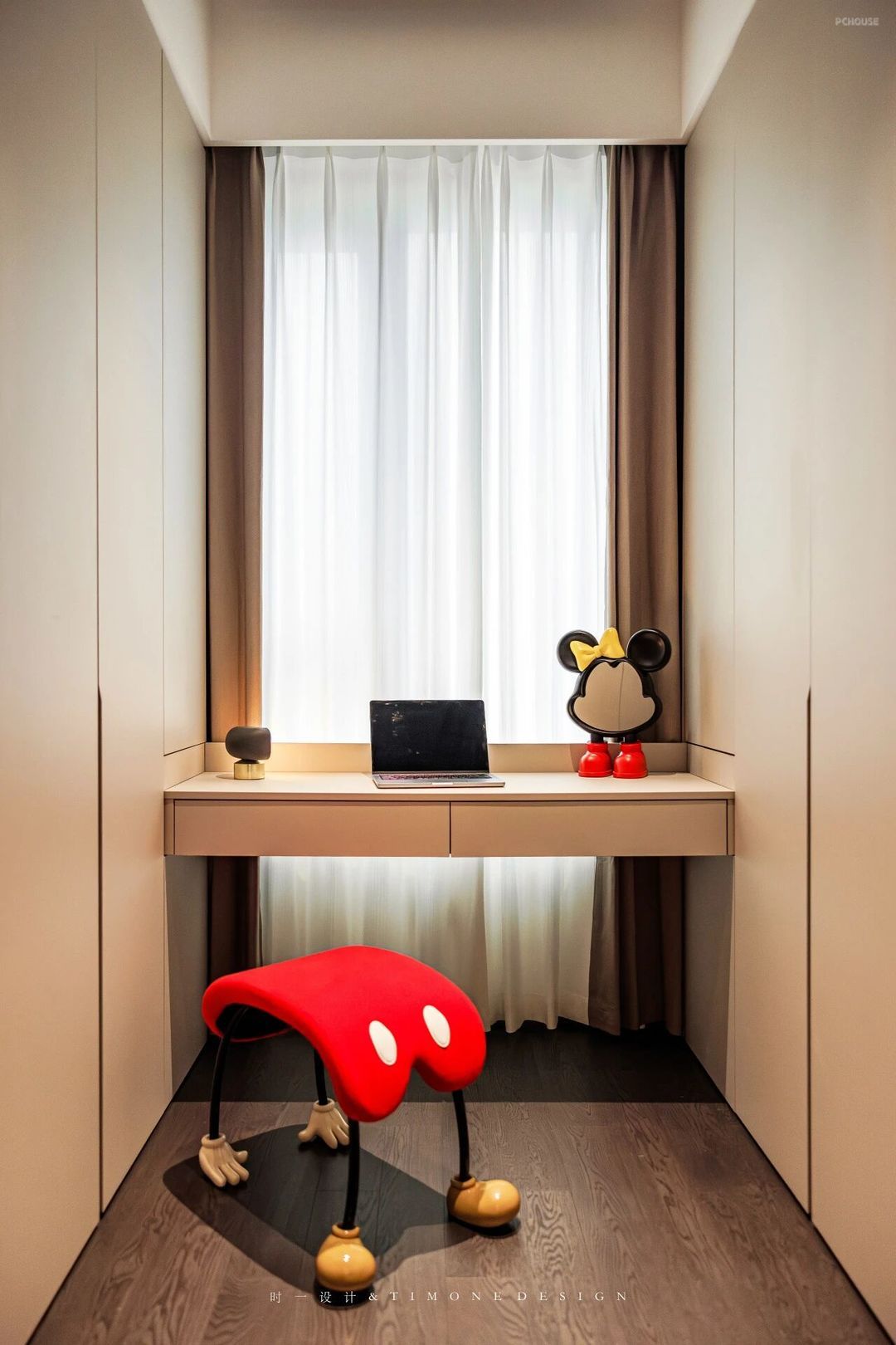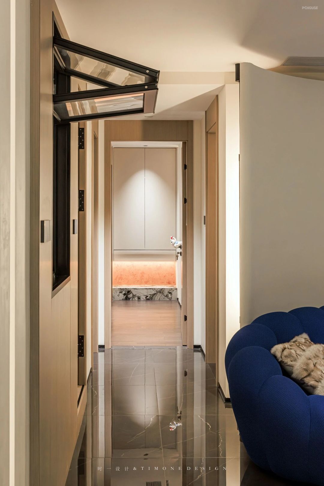 在书房与走廊方向开了一扇窗户不仅仅与客厅有了互动性,同时也让整个走廊更加通透明亮。