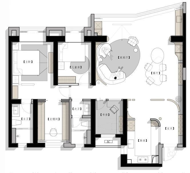 1、卧室套房仪式感欠佳,基础收纳储物量不足
