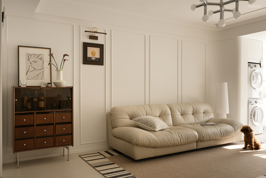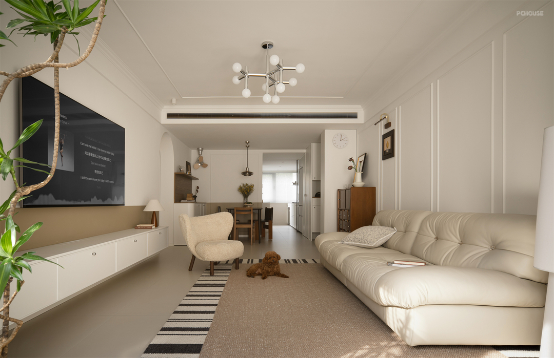 将光引入室内,让窗外绿植成为家的背景,当柔和的奶茶棕、生机勃勃的绿交织出一幅纯净自然松弛的画卷,这套因结构所制格局改造受限的陈旧老房,在设计师手里焕然重生,不仅丰富了空间的功能,也为其注入了灵动与活力,营造出秩序与美感兼具的居住环境.