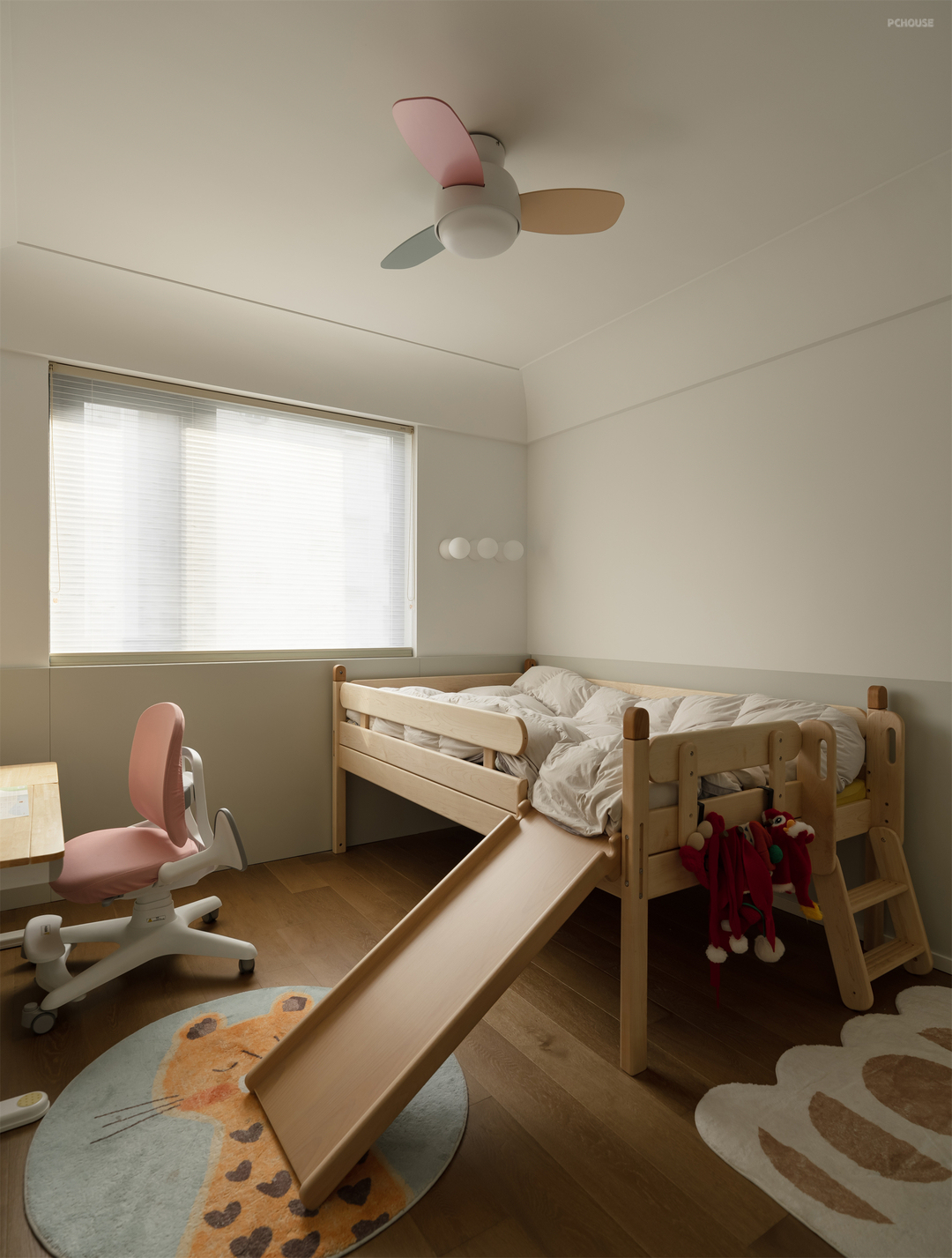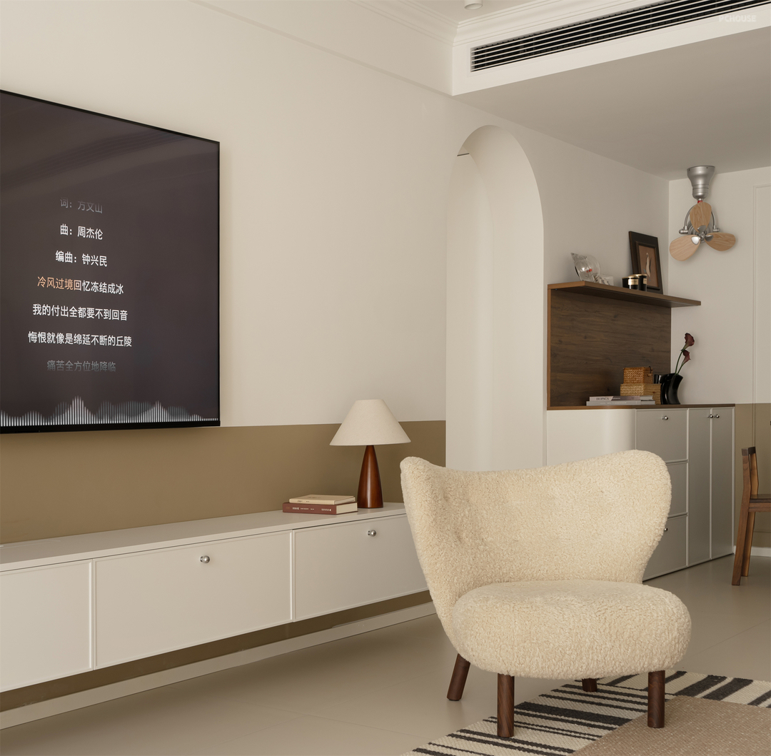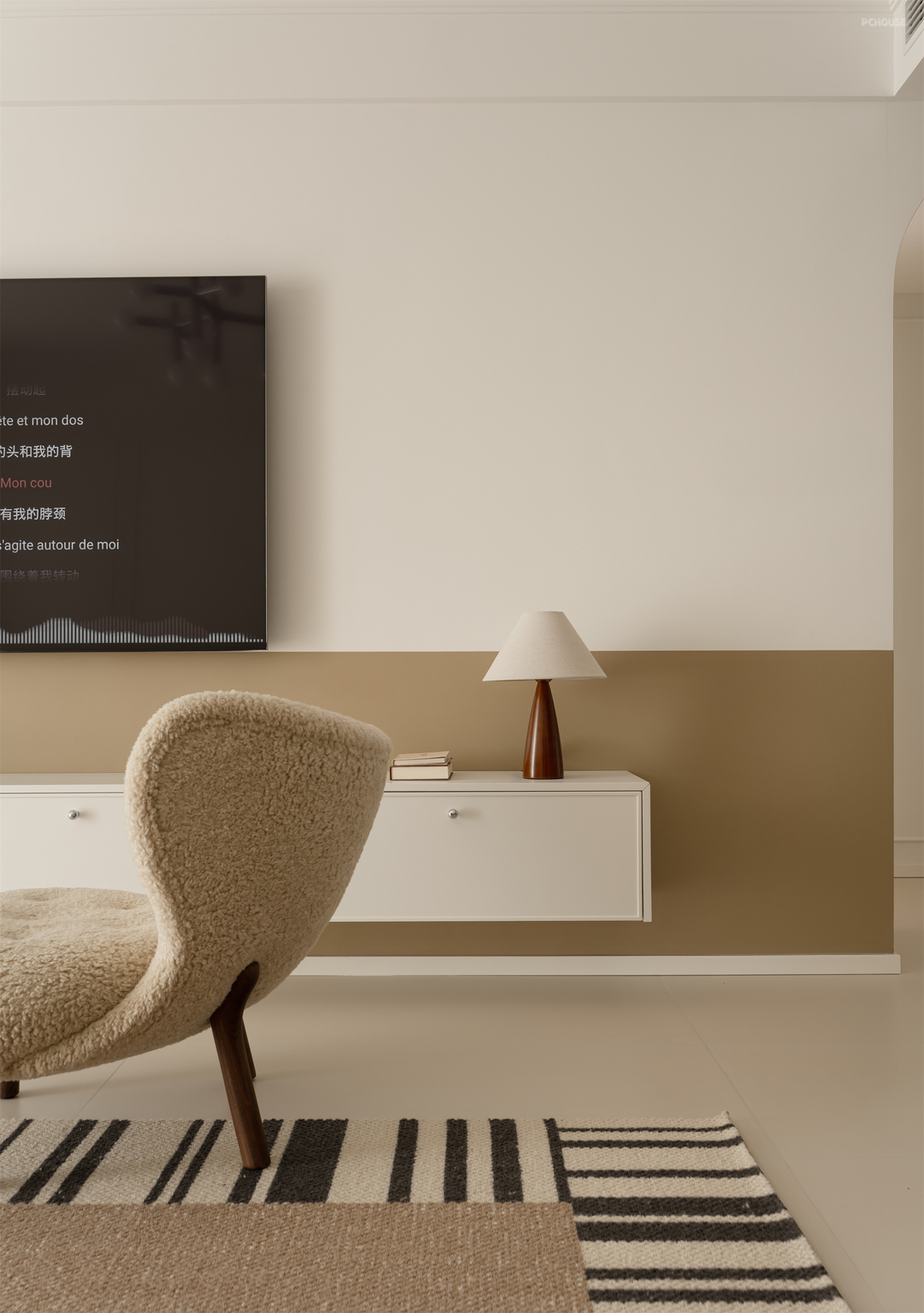 充分兼顾长期主义的美学和功能诉求,选择柔和低调的米白色和奶茶棕为底色,奠定温暖包容的基调。摒弃不必要的过度装饰,用涂料拼色和优雅弧线完成空间美化。#家居配色