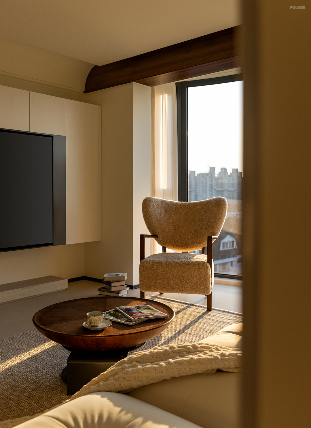 本案最大的亮点是“引光入室”,回归空间本质,让自然光成为氛围的塑造者,通透的采光设计完美契合居住者对家的想象,将建筑优势转化为恰到好处的尺度体验。人在其中,成为空间主角,连呼吸都随之轻盈。