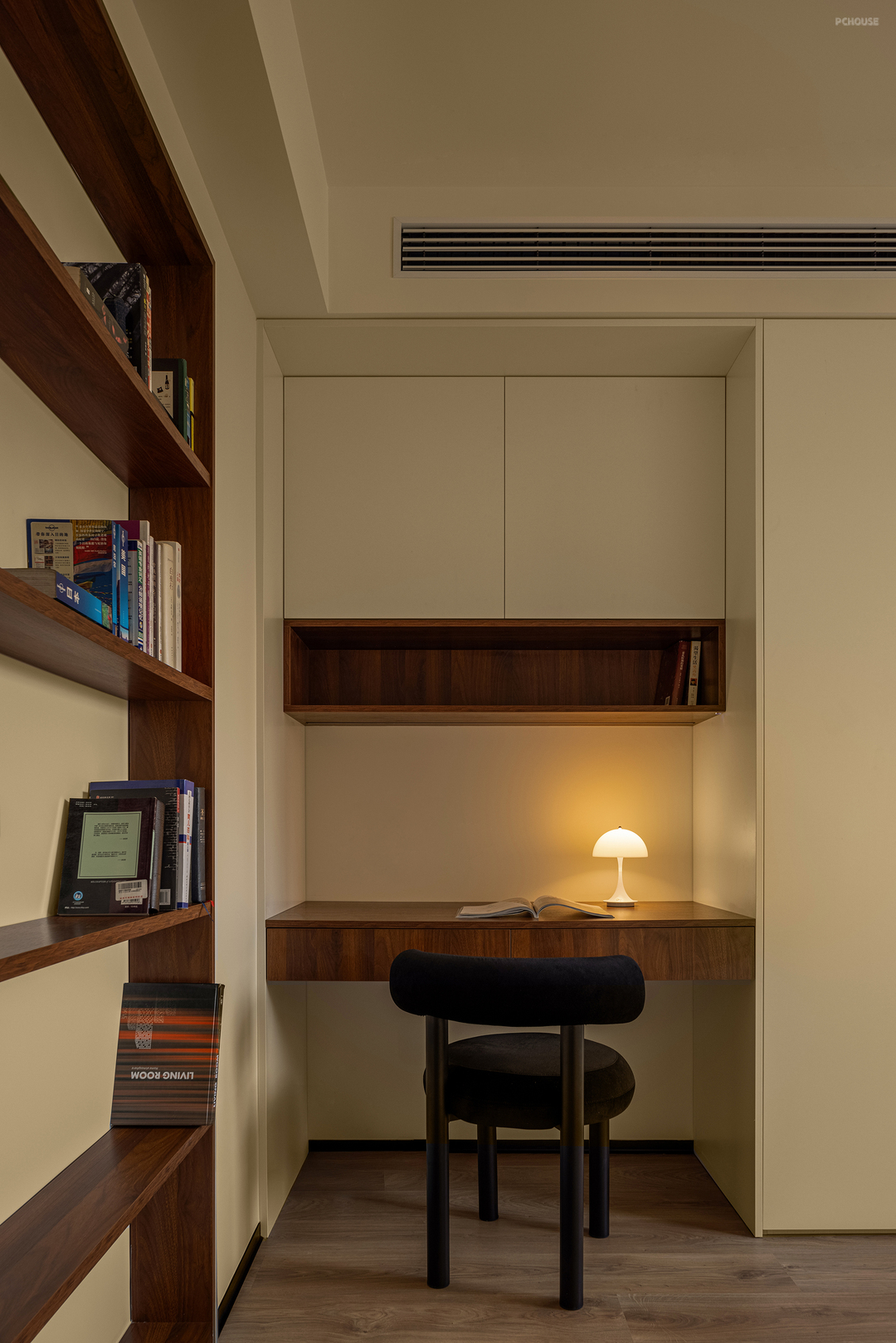 美学与功能融合:钢琴区融入书架墙,车模陈列柜成为客厅亮点,真正实现“简而不冷,满而不乱”。