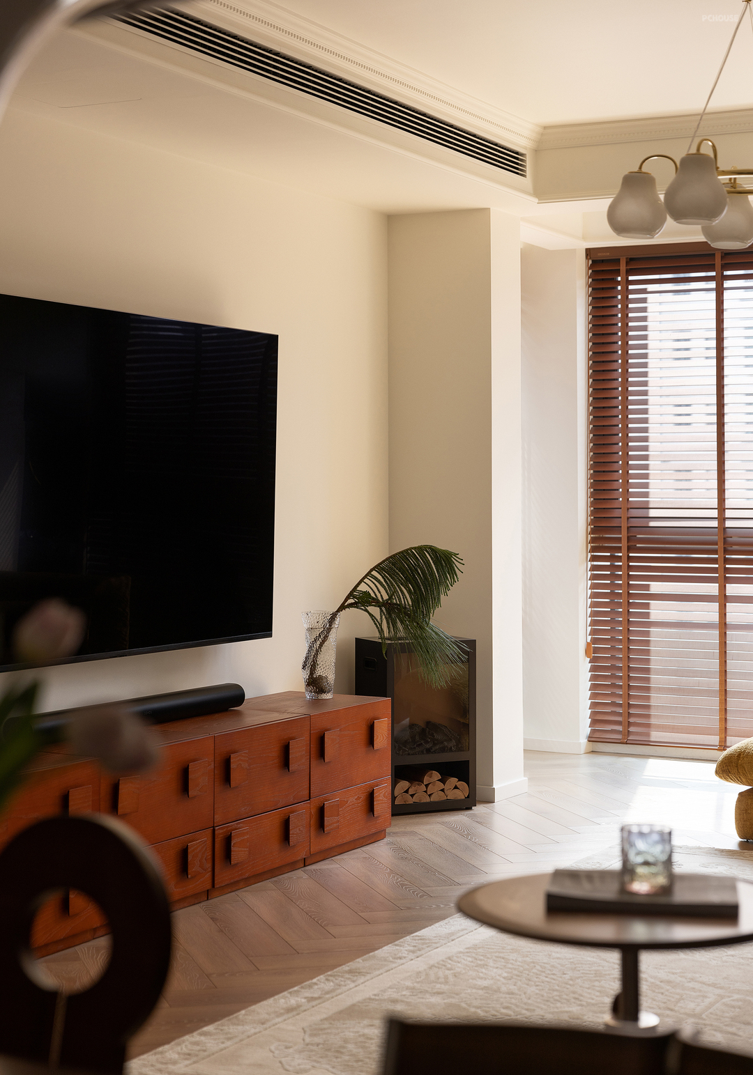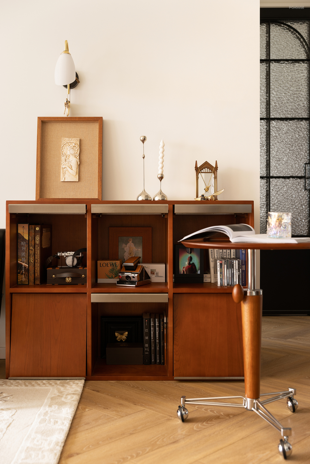 中古风格组合柜成为客厅的视觉焦点,既满足储物需求,又以独特造型和精致质感提升空间格调。整体设计通过自然材质与复古元素的巧妙融合,呈现出精致而富有生活气息的家居环境。