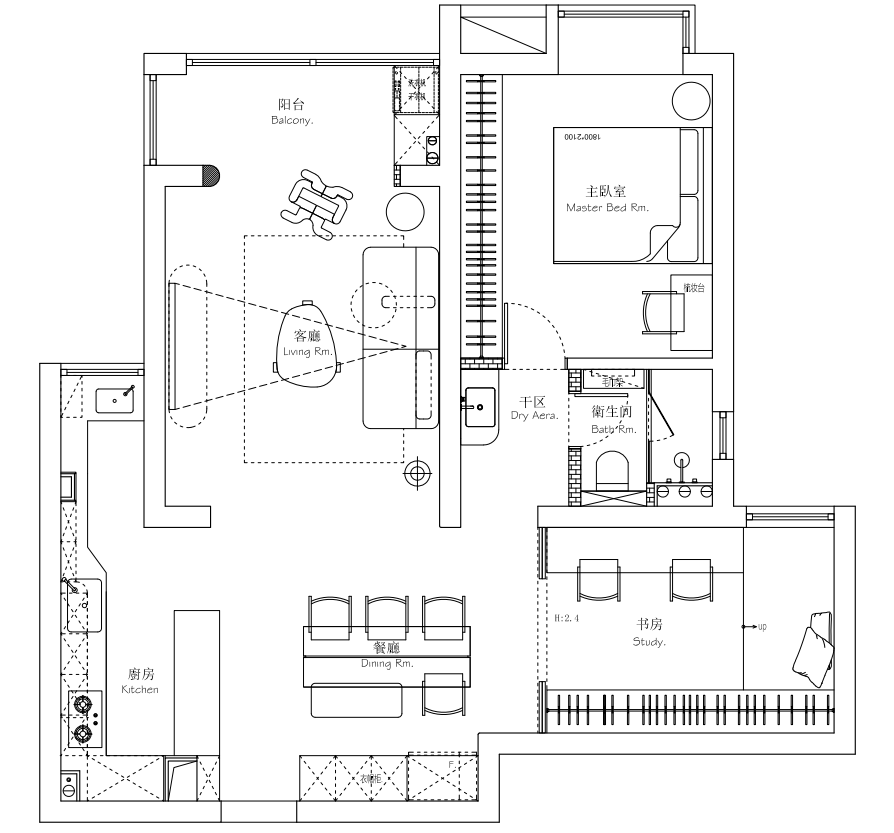 针对夫妻二人的居住需求,平面空间改造聚焦于空间利用率与功能优化。