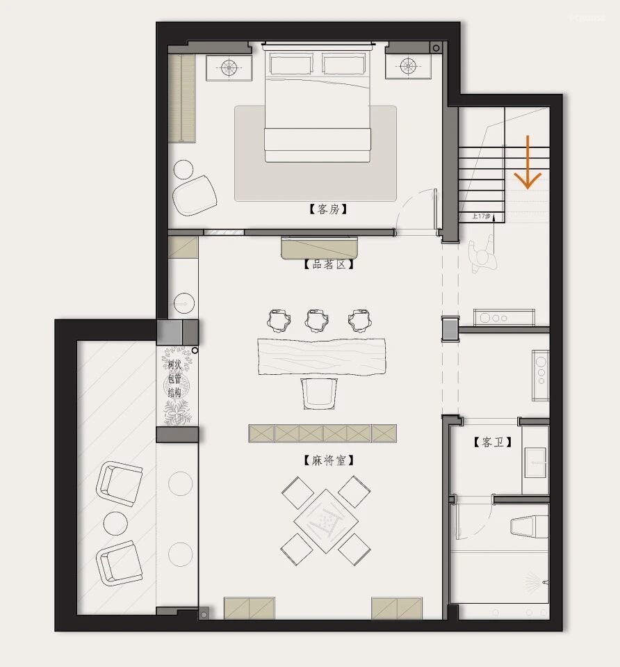品茶区、麻将桌、单人阅读椅环绕法式雕花壁炉,多元场景自由切换。复古书架与大理石茶几碰撞,这里是思想与欢笑的自由领地。