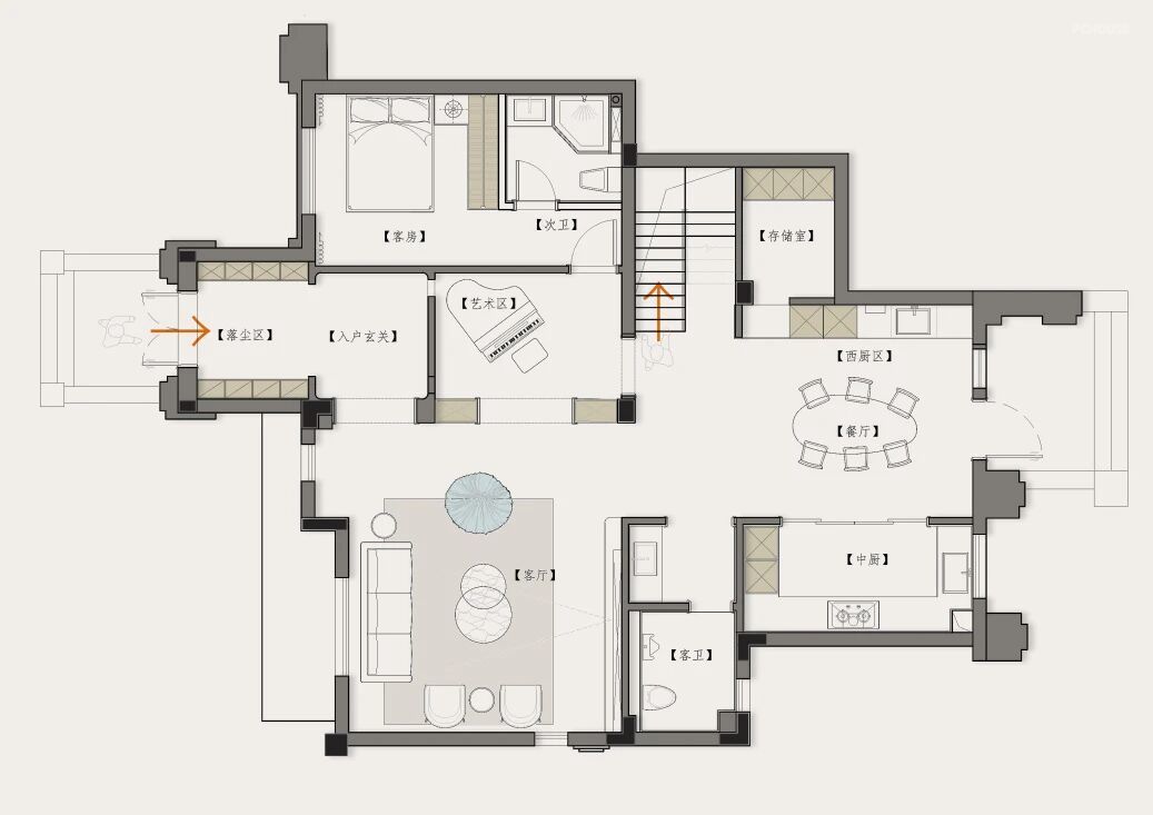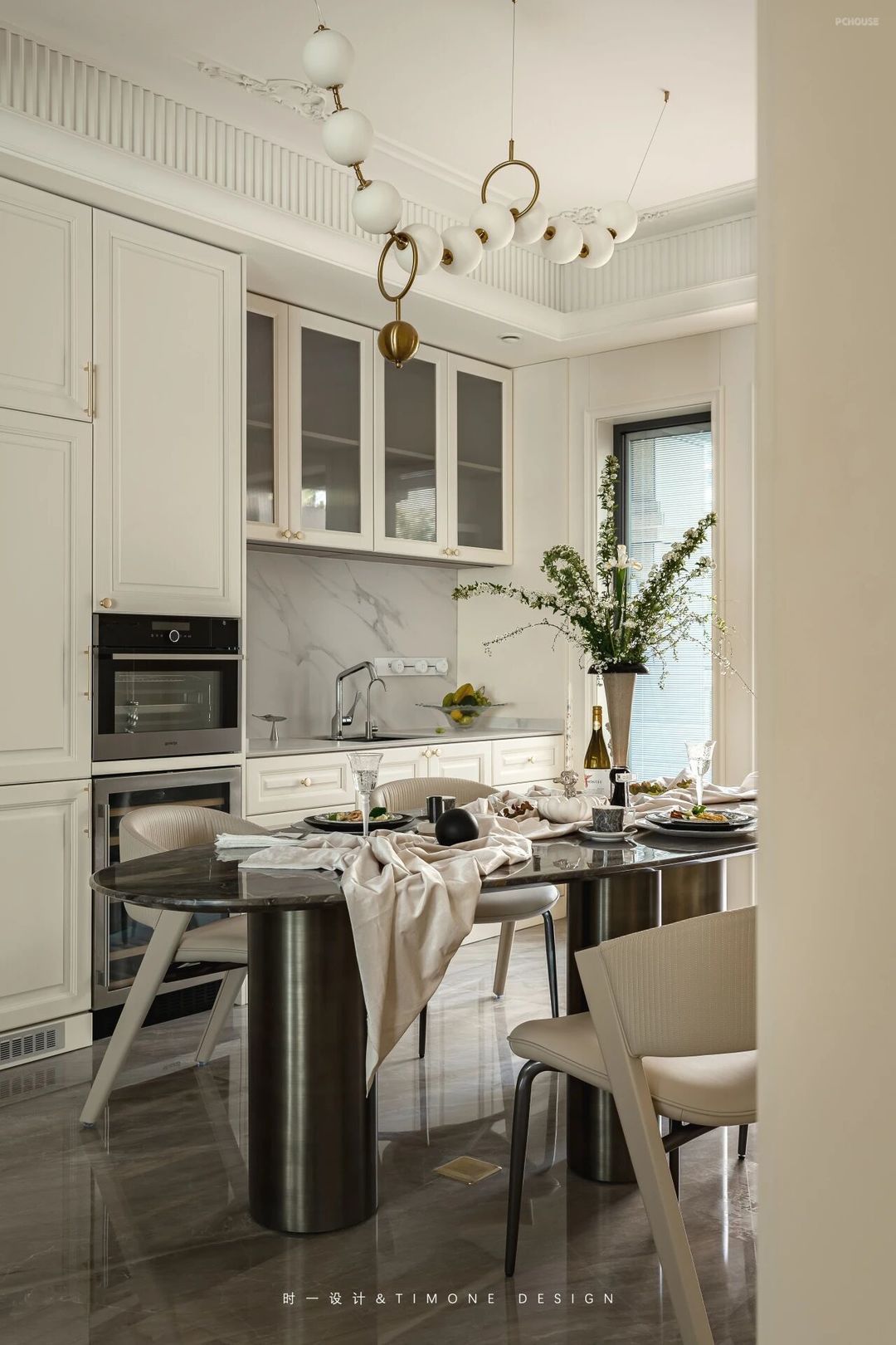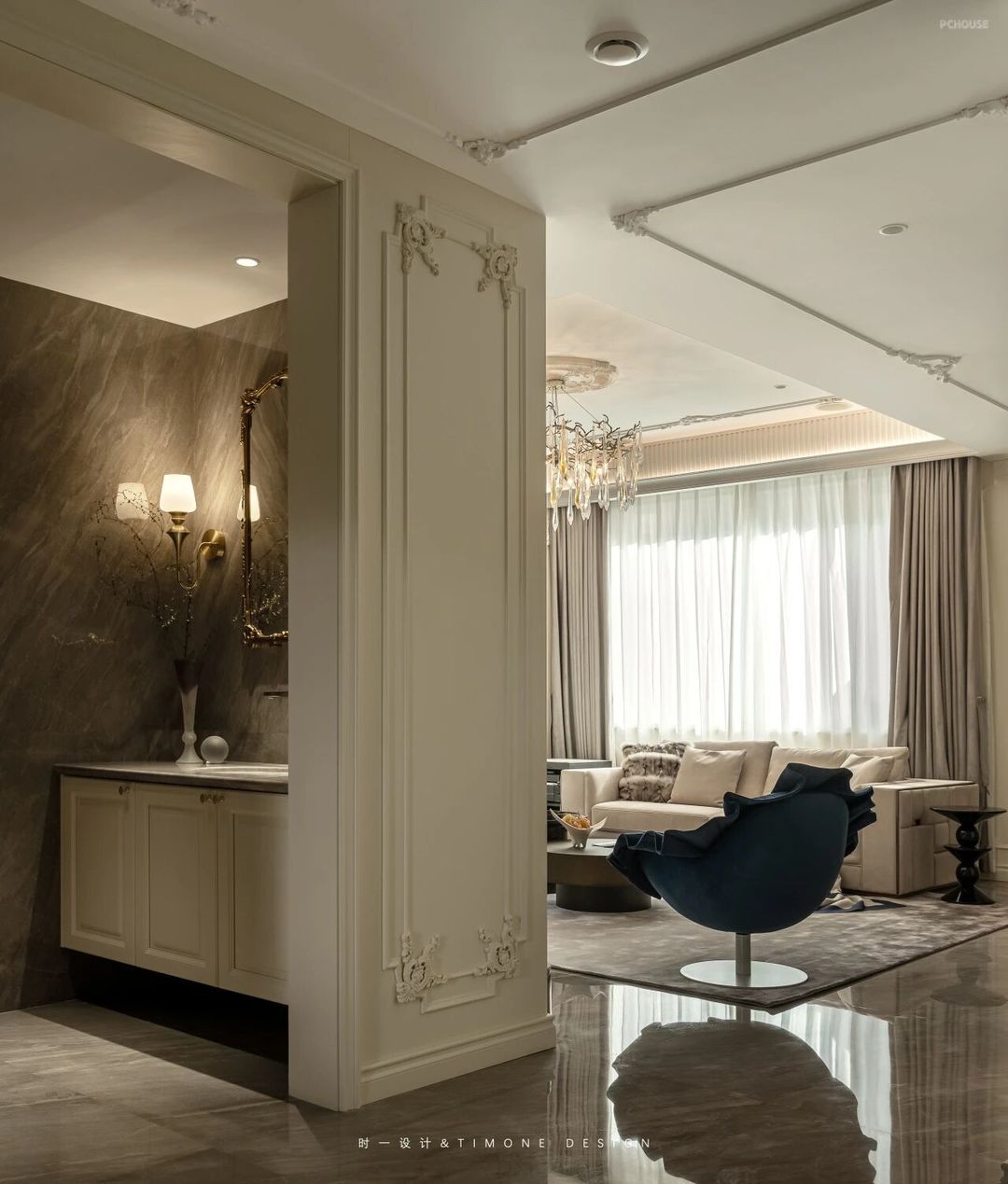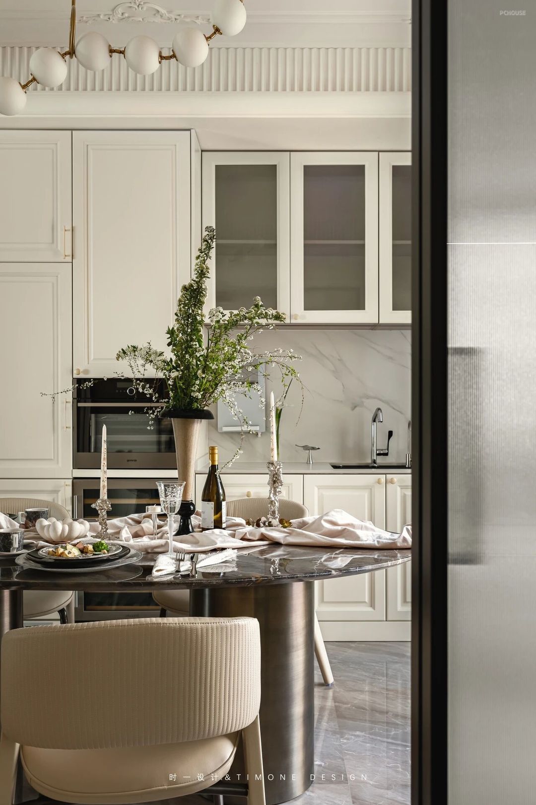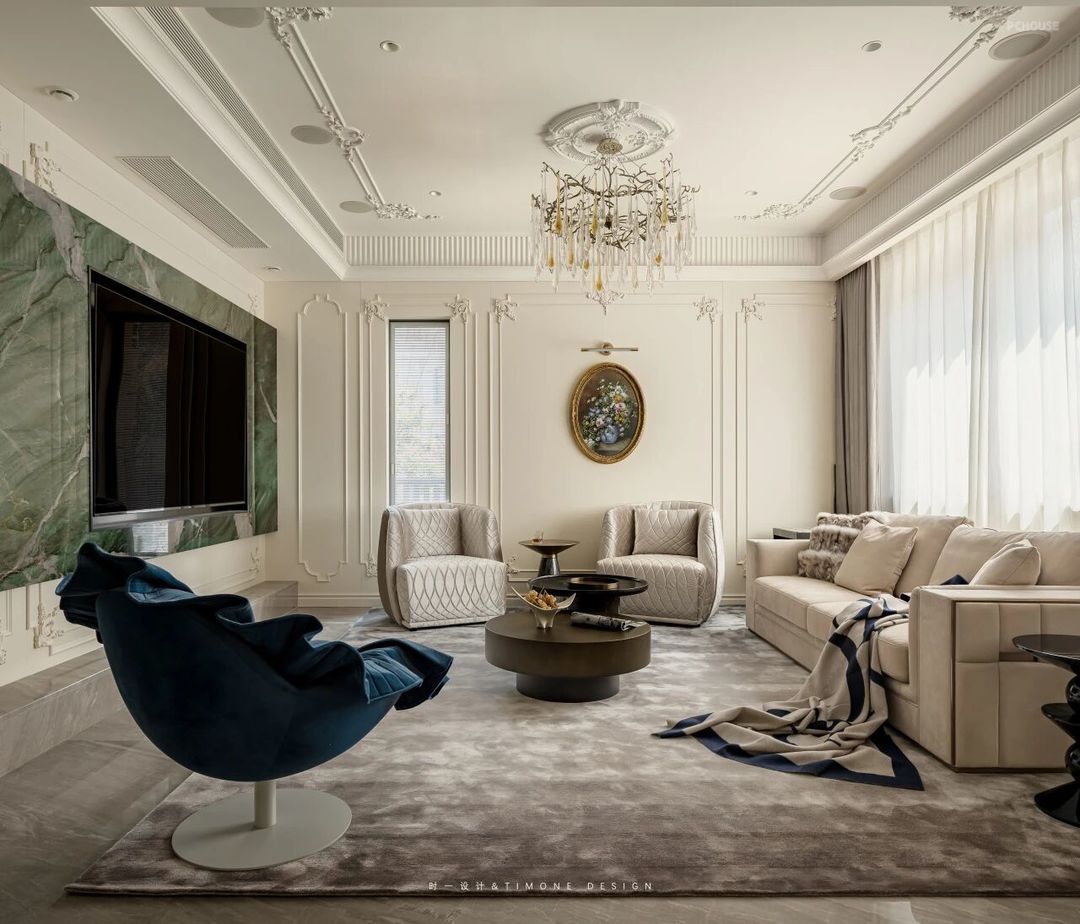 前言: 这座455㎡的法式轻奢别墅,以柔和的奶油色为基调,融入金属线条与天然石材,在经典与现代之间找到完美平衡。每一寸空间都诠释着「奢而不华,简而精致」的生活哲学,为居者这一四口之家打造一场永不落幕的艺术盛宴。