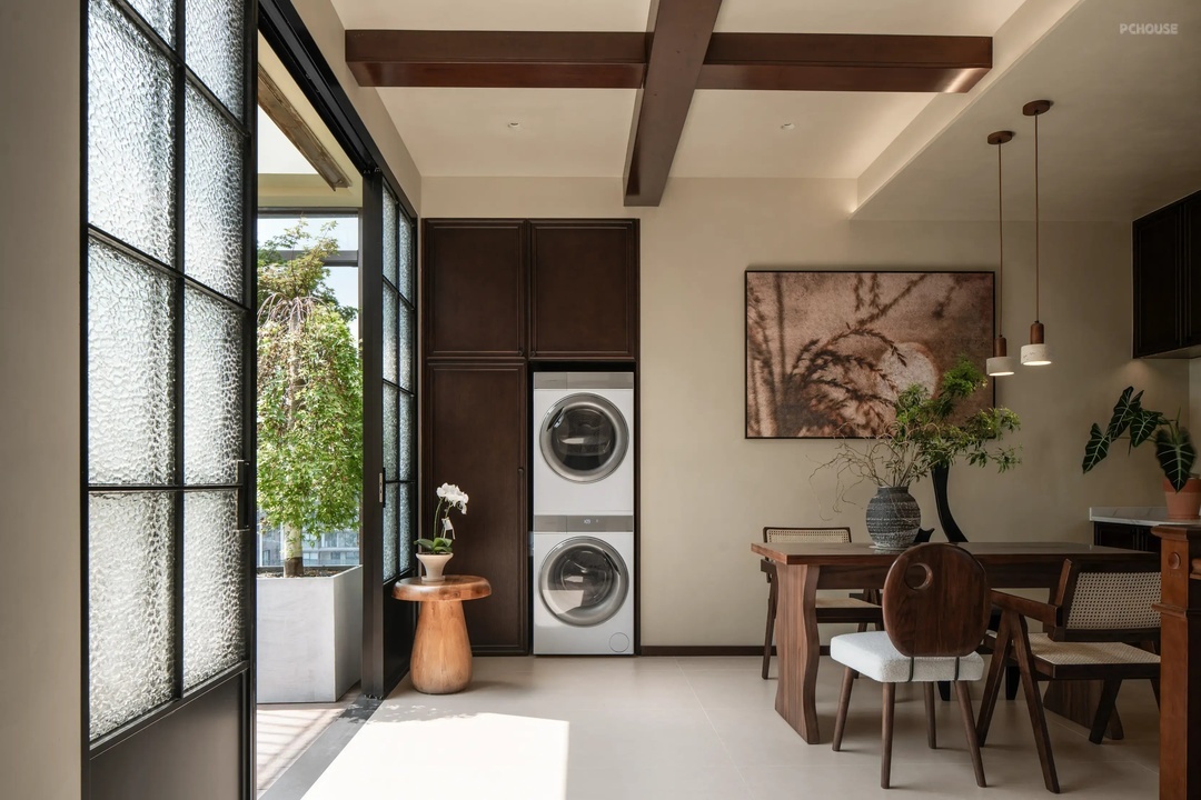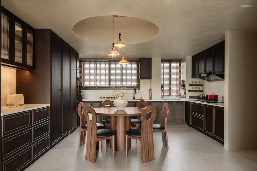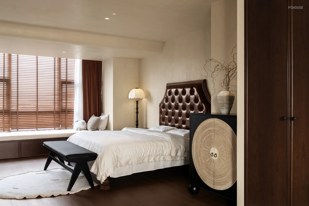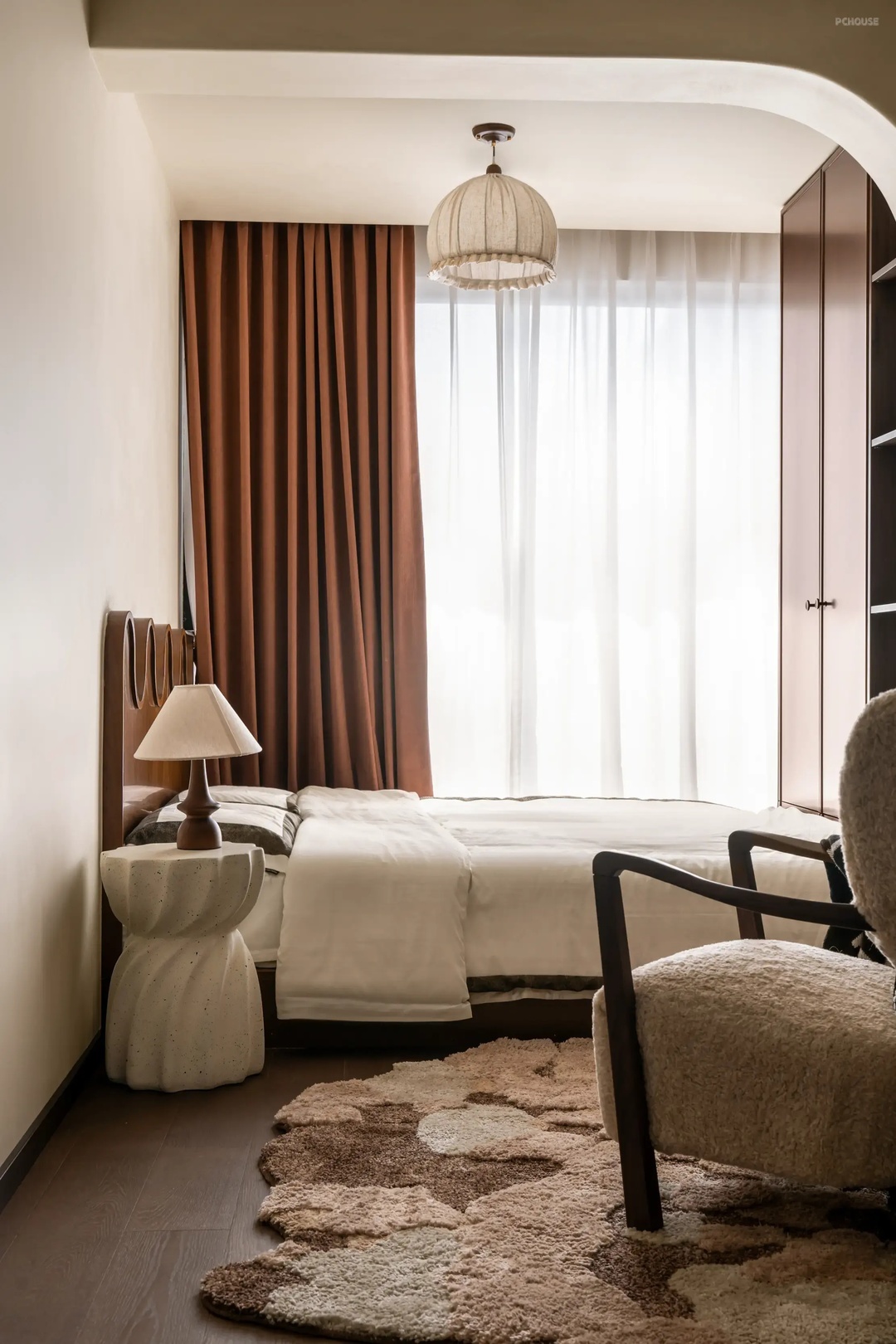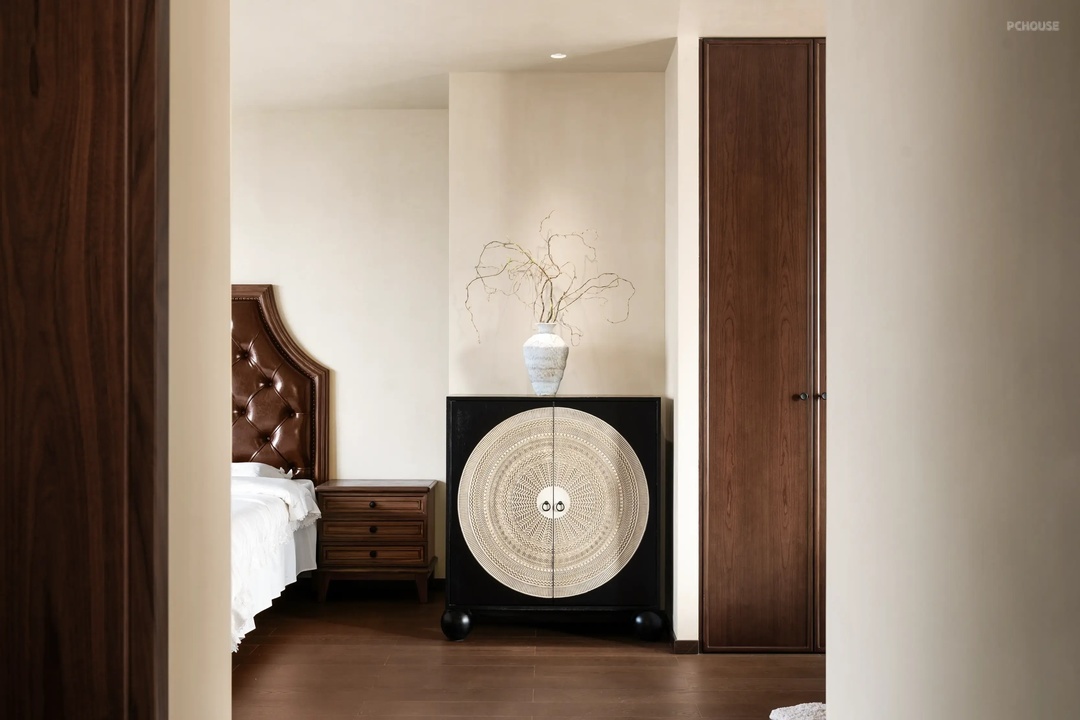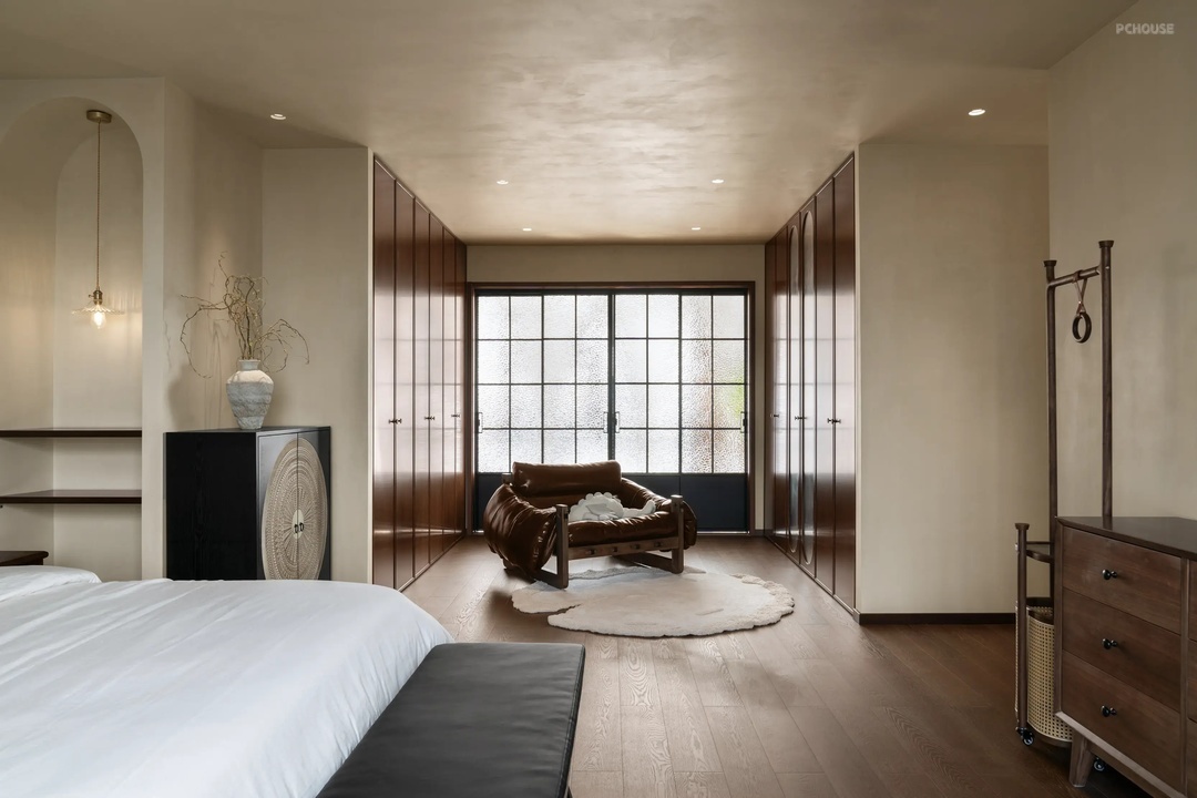 前言: 当空间褪去繁杂装饰,回归质朴本真,便能承载生活的松弛与诗意。本项目以自然材质、柔和色调为笔,绘就兼具温暖与质感的居住画卷。开放式与半私密区域穿插,拱门、隔断弱化边界,让家既有交流的开阔,又有独处的角落。自然元素如干枝、绿植,复古符号如雕花家具、皮质软包,相互渗透,不刻意追随时髦,却把 “宜居” 二字,藏进每一处材质、光线与陈设的对话里,打造出有温度、有故事的私宅模样。