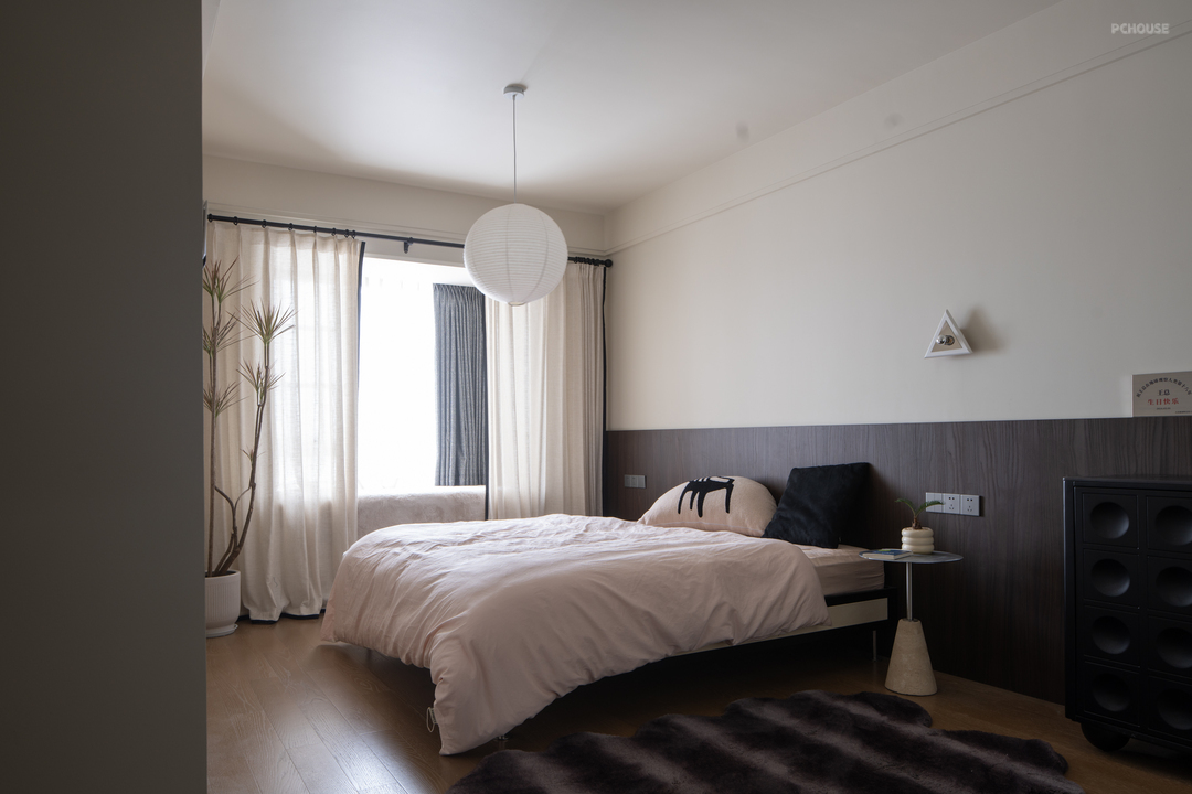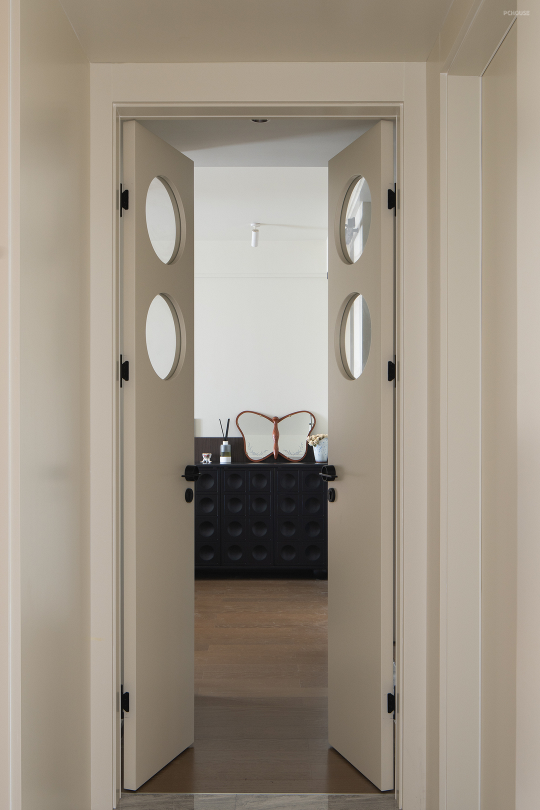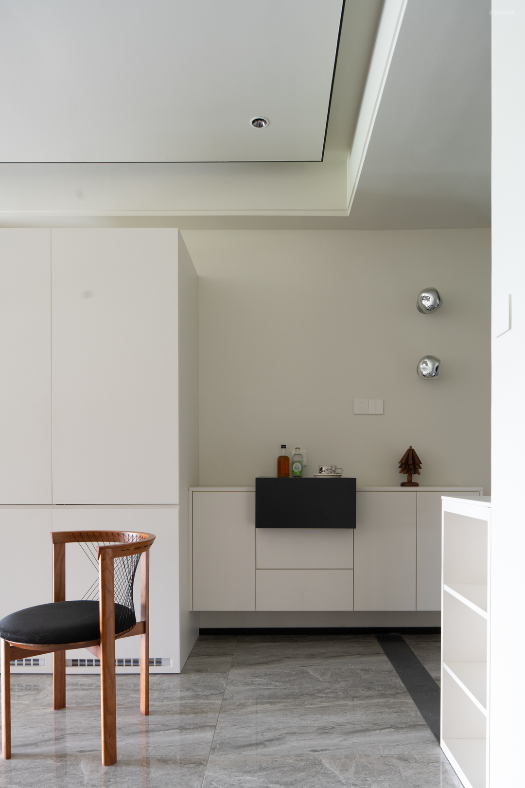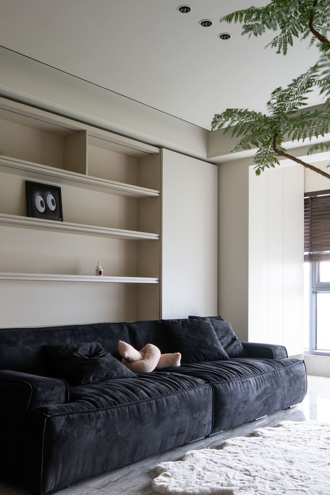在承重墙较多的情况下,我们对硬装结构进行优化,目的是最大程度消除精装房的固有印象。所以在整体色调的把控上以做减法为原则,墙漆与全屋定制主要以柔和中性的奶咖色作为打底,再充分结合结构、线条等元素,让立面空间有更为丰富的层次与视觉效果。