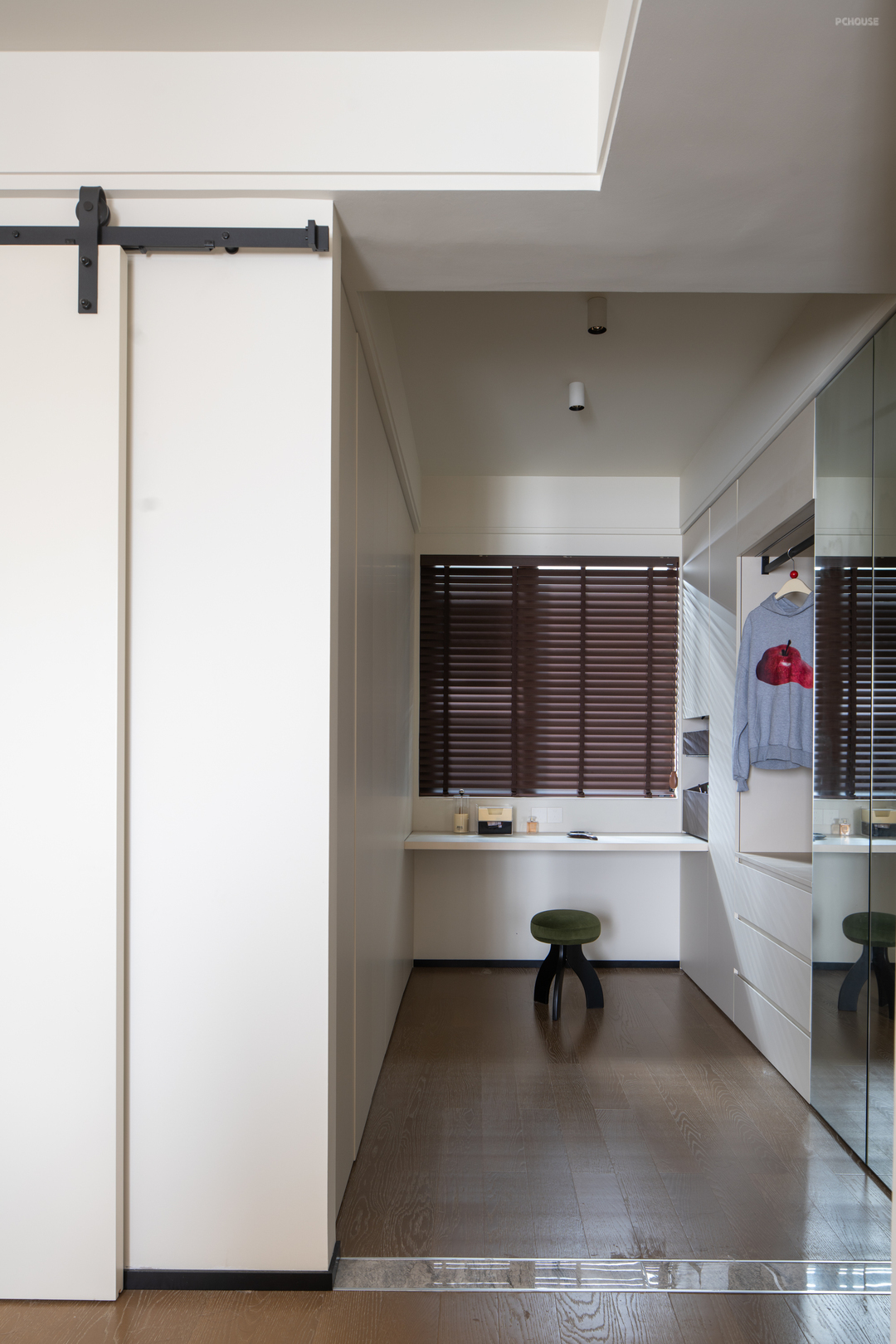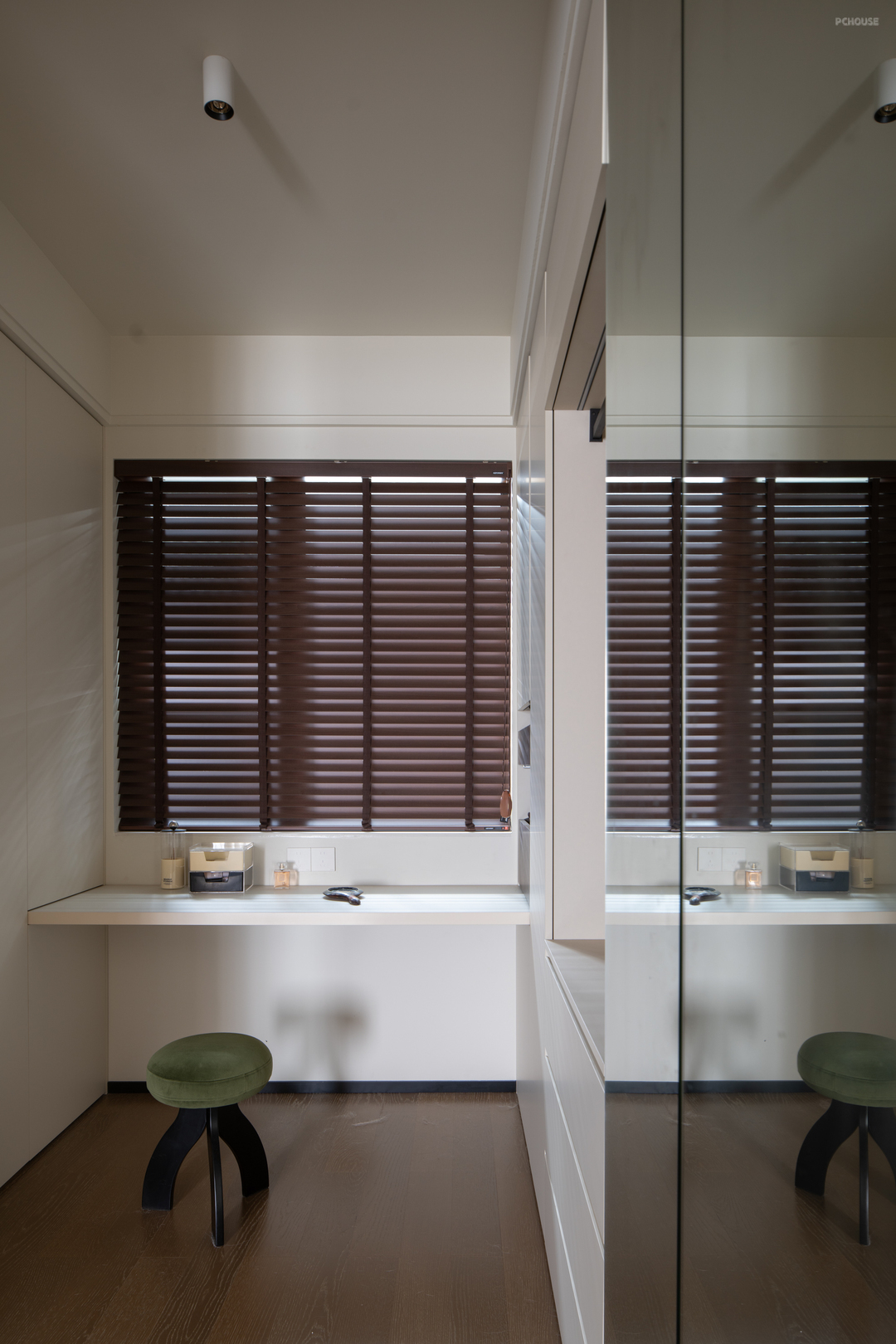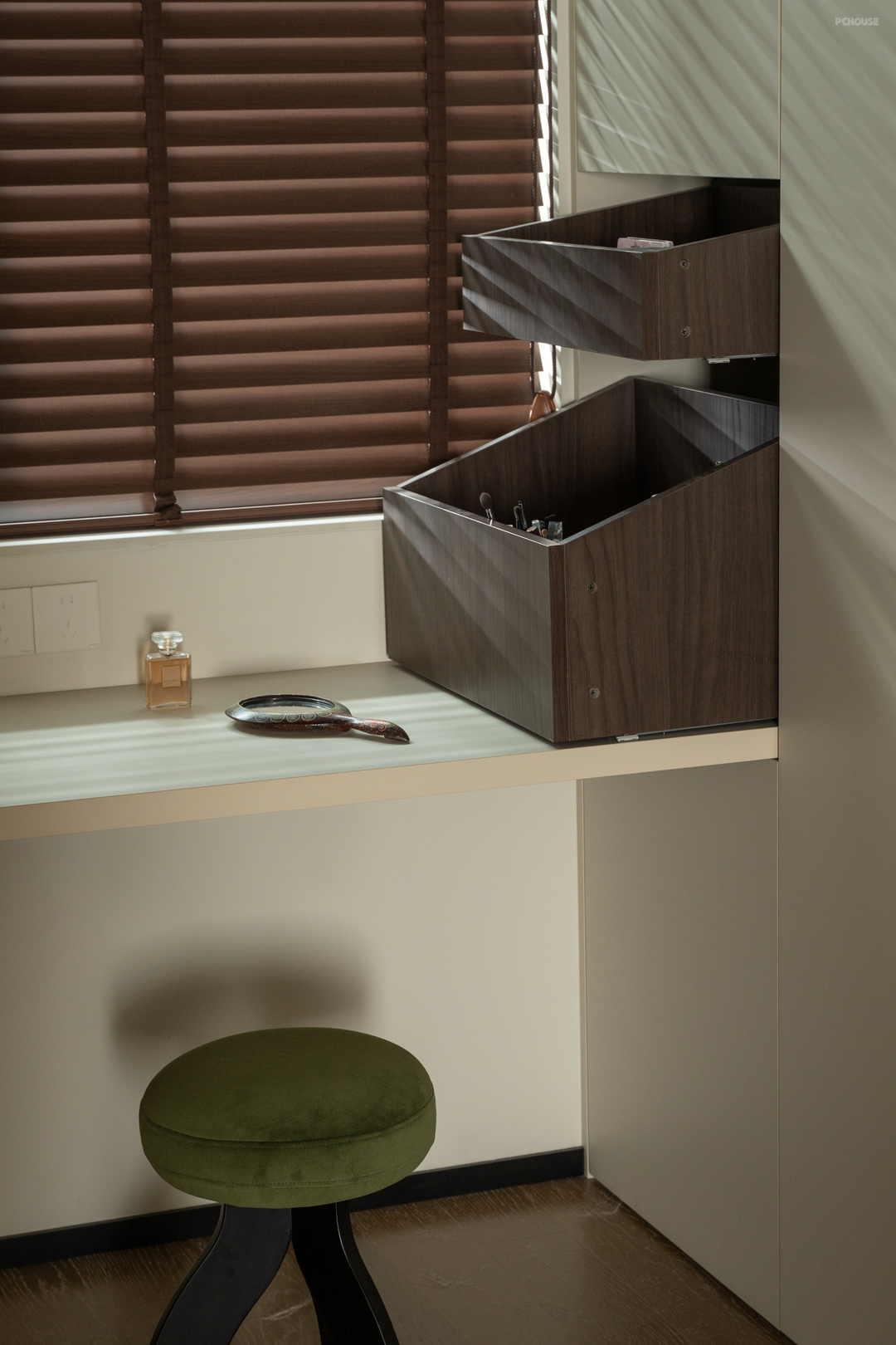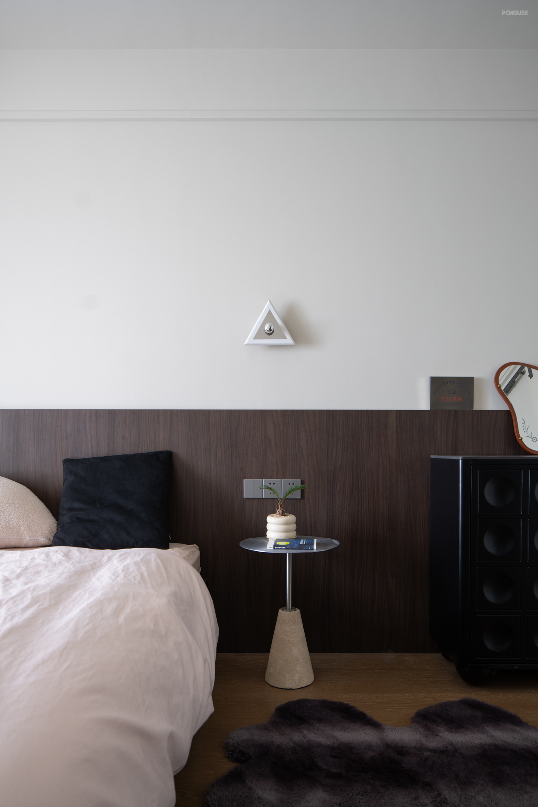 在承重墙较多的情况下,我们对硬装结构进行优化,目的是最大程度消除精装房的固有印象。所以在整体色调的把控上以做减法为原则,墙漆与全屋定制主要以柔和中性的奶咖色作为打底,再充分结合结构、线条等元素,让立面空间有更为丰富的层次与视觉效果。