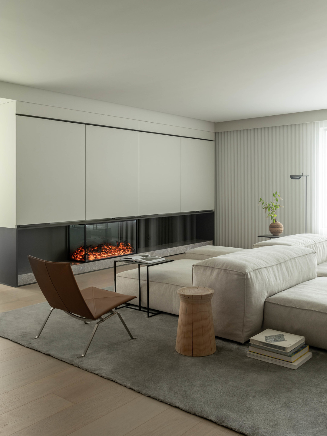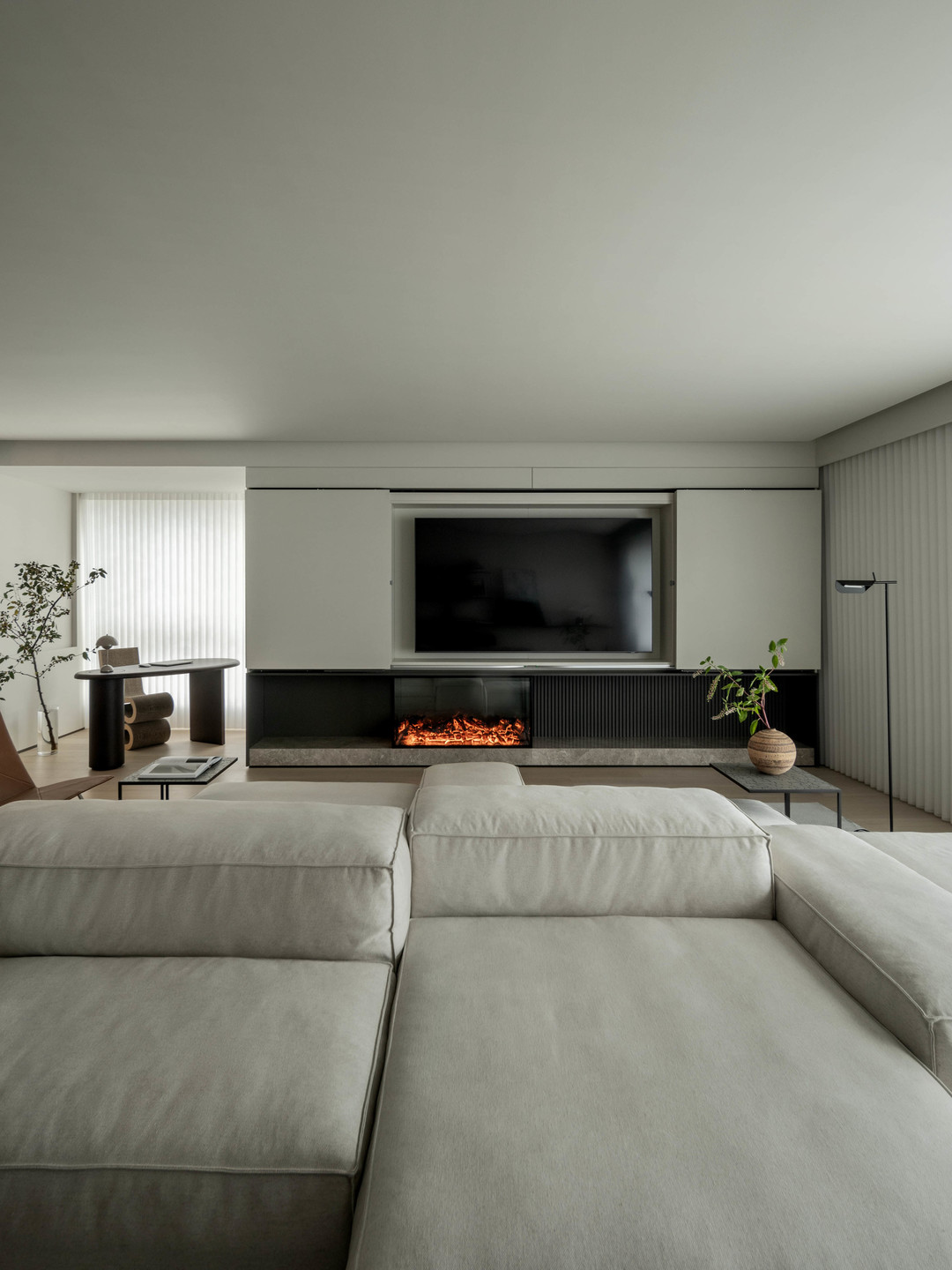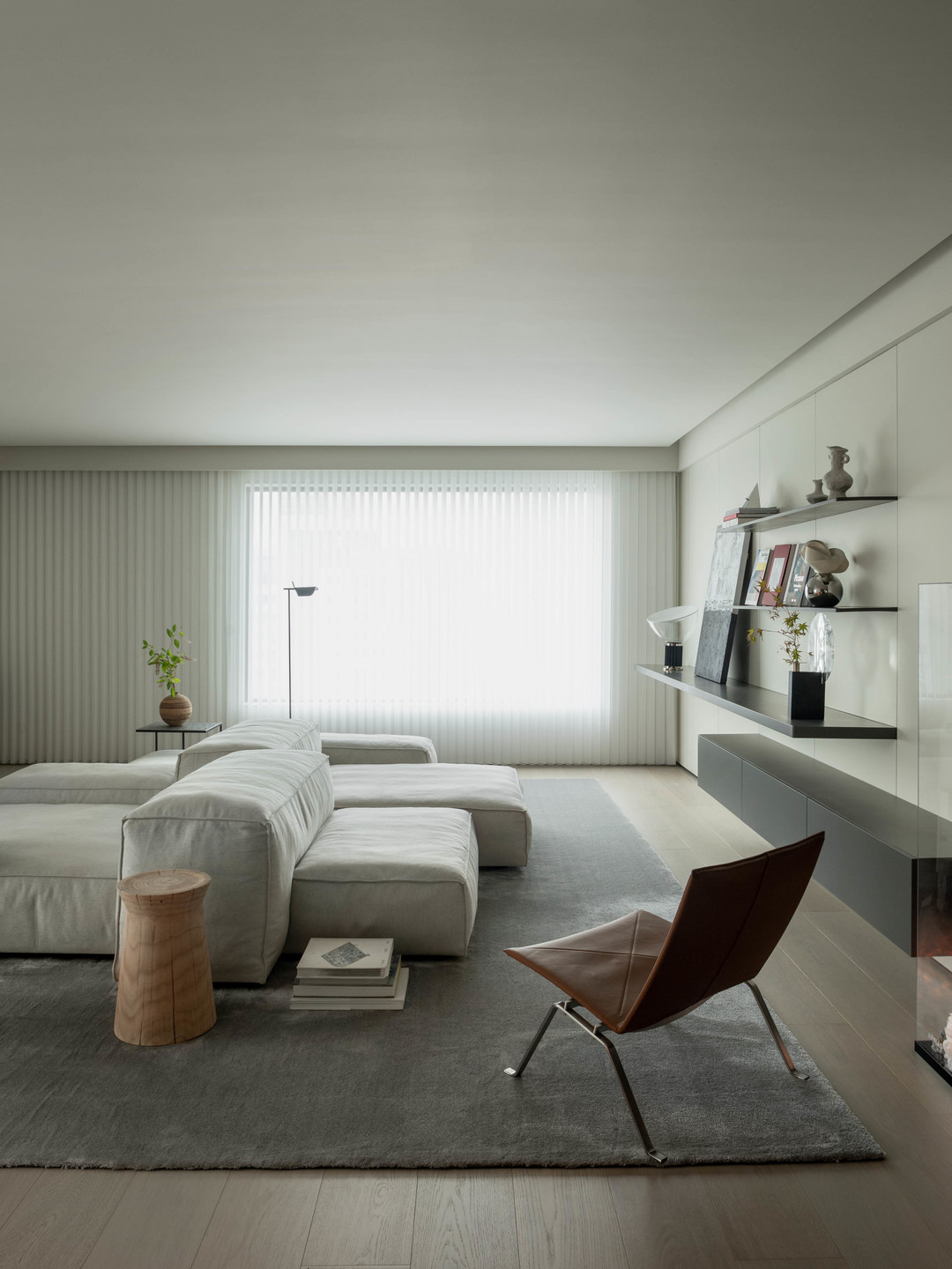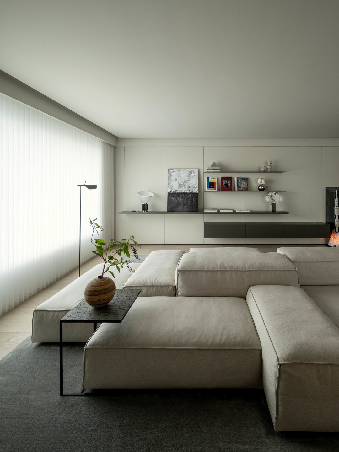 客厅的模块化沙发如散落海中的岛屿,随性而自由,勾勒出慵懒的舒适