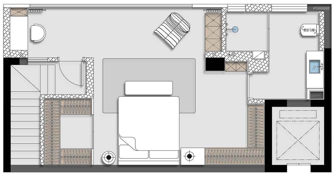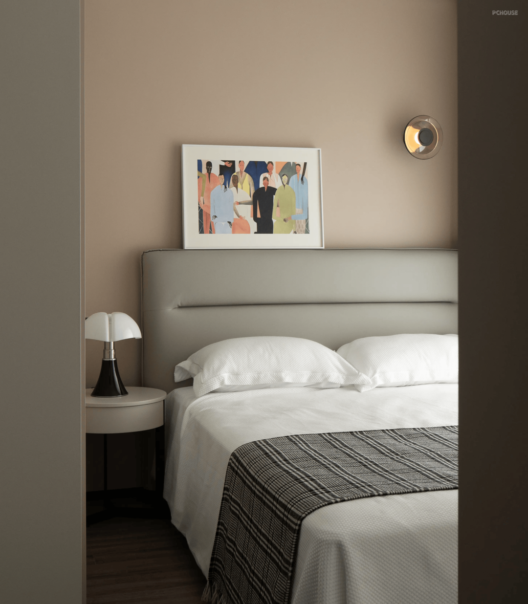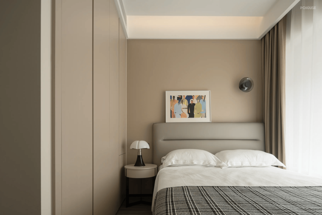 3. 主卧右侧U型的原始结构进行封闭处理,改造为隐藏式衣帽间,既满足大量的衣物储存需求,又保持空间的整体性与协调美感。