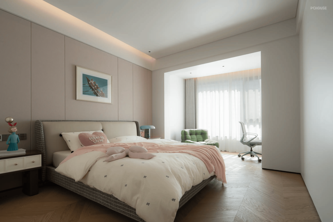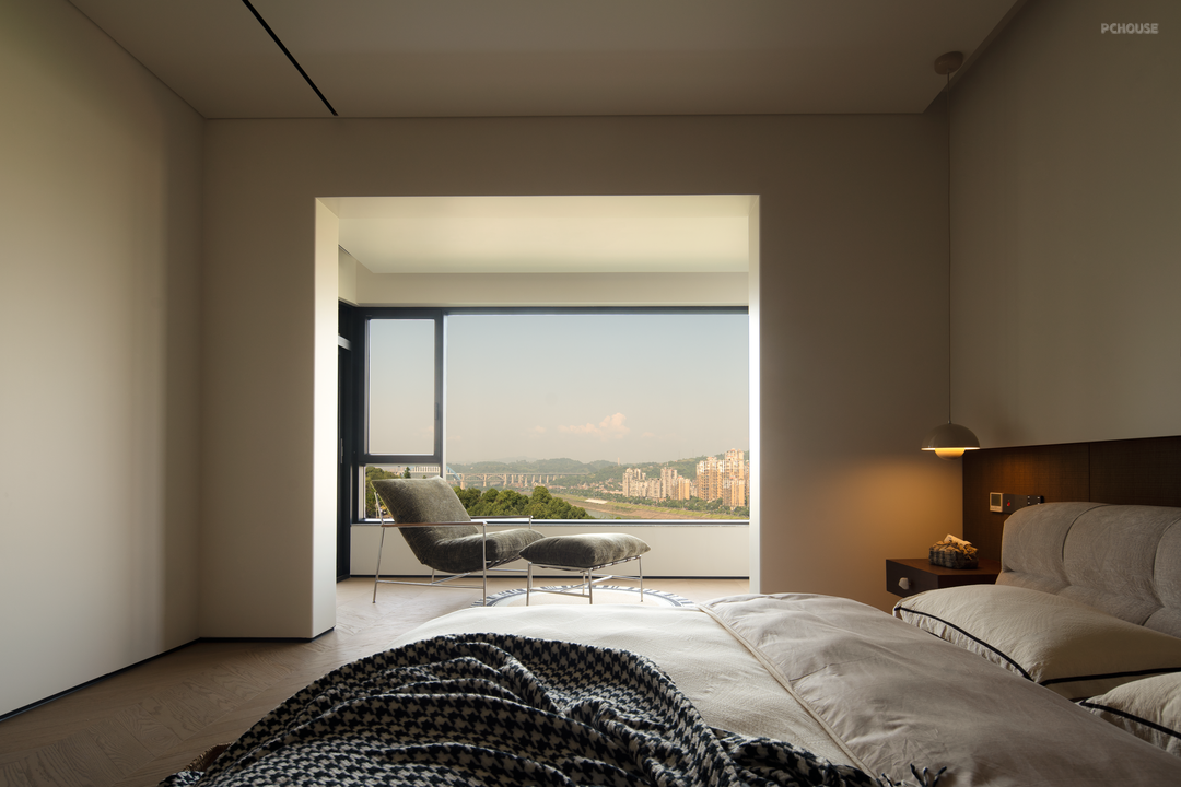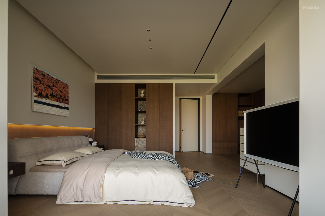 主卧套房以睡眠区为核心,串联起衣帽间与卫生间的功能脉络,打造出一方抚慰身心的舒适空间。大面积留白诠释纯粹意境,择木料赋予温度具象化的体验,两者相辅相成,构筑温暖明亮的生活场域。