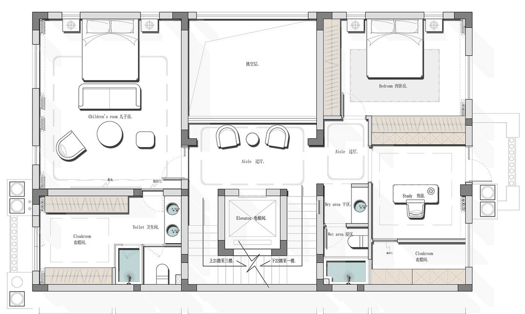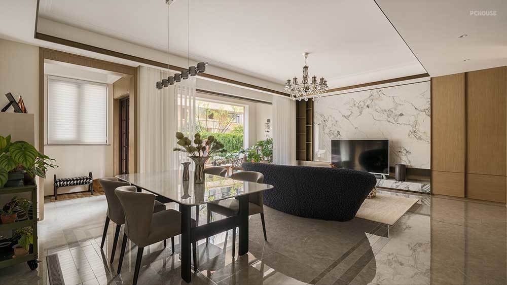 1F的整体空间以精装交付为主,没有做过多的改变,只是通过简单的软装来讲原本没有生命力的精装交付,变得有趣精致。