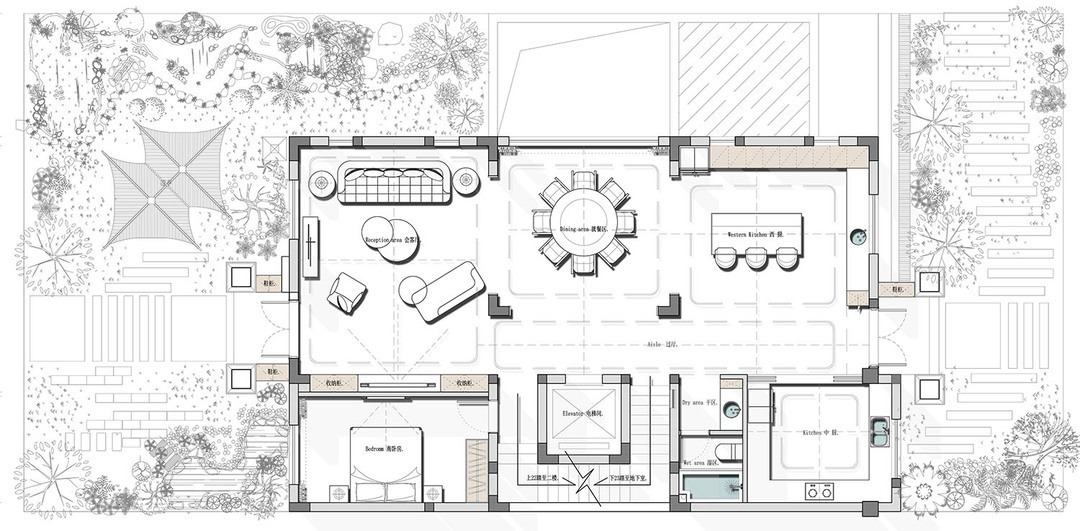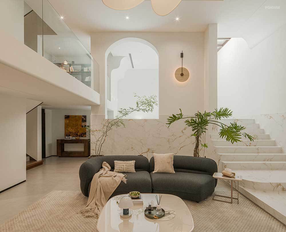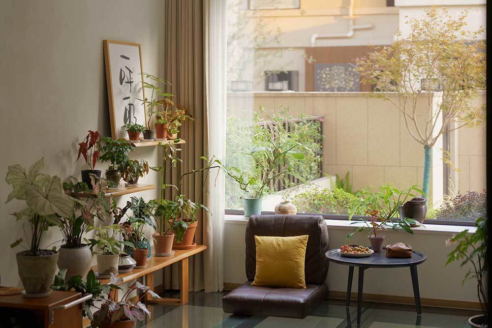 1F我们主要以院子,客厅,以及一个植物冥想室为主。1F的植物室有一部分空间我们是拓出去的,一方面可以增加植物采光,整个空间也会变大。