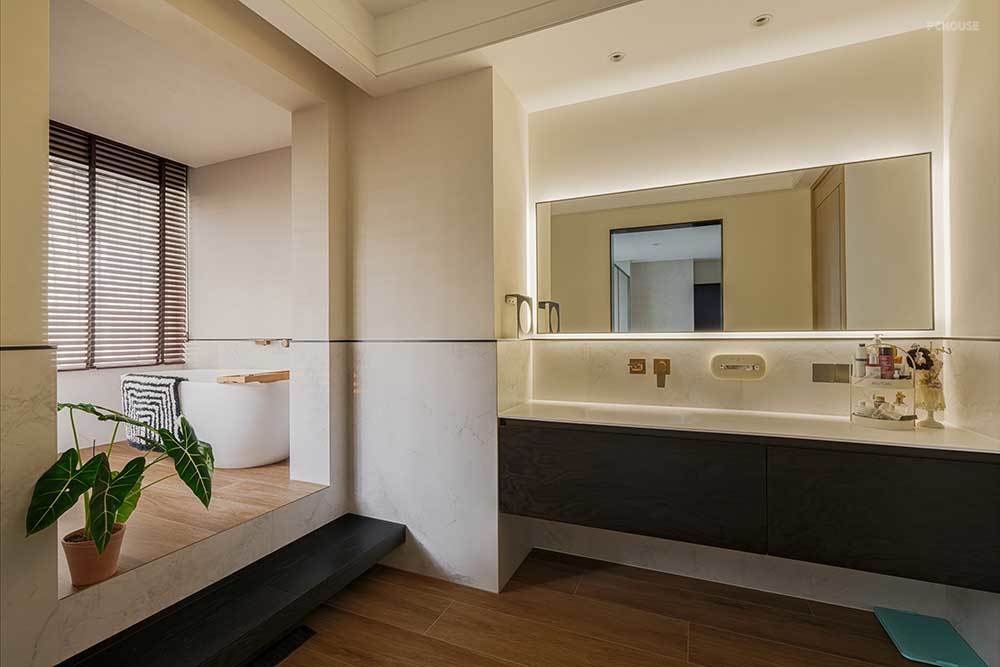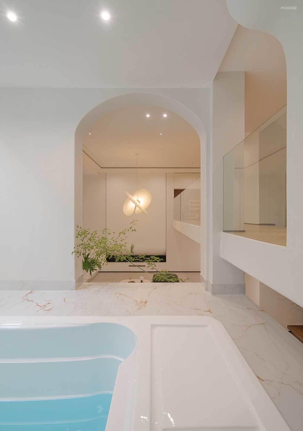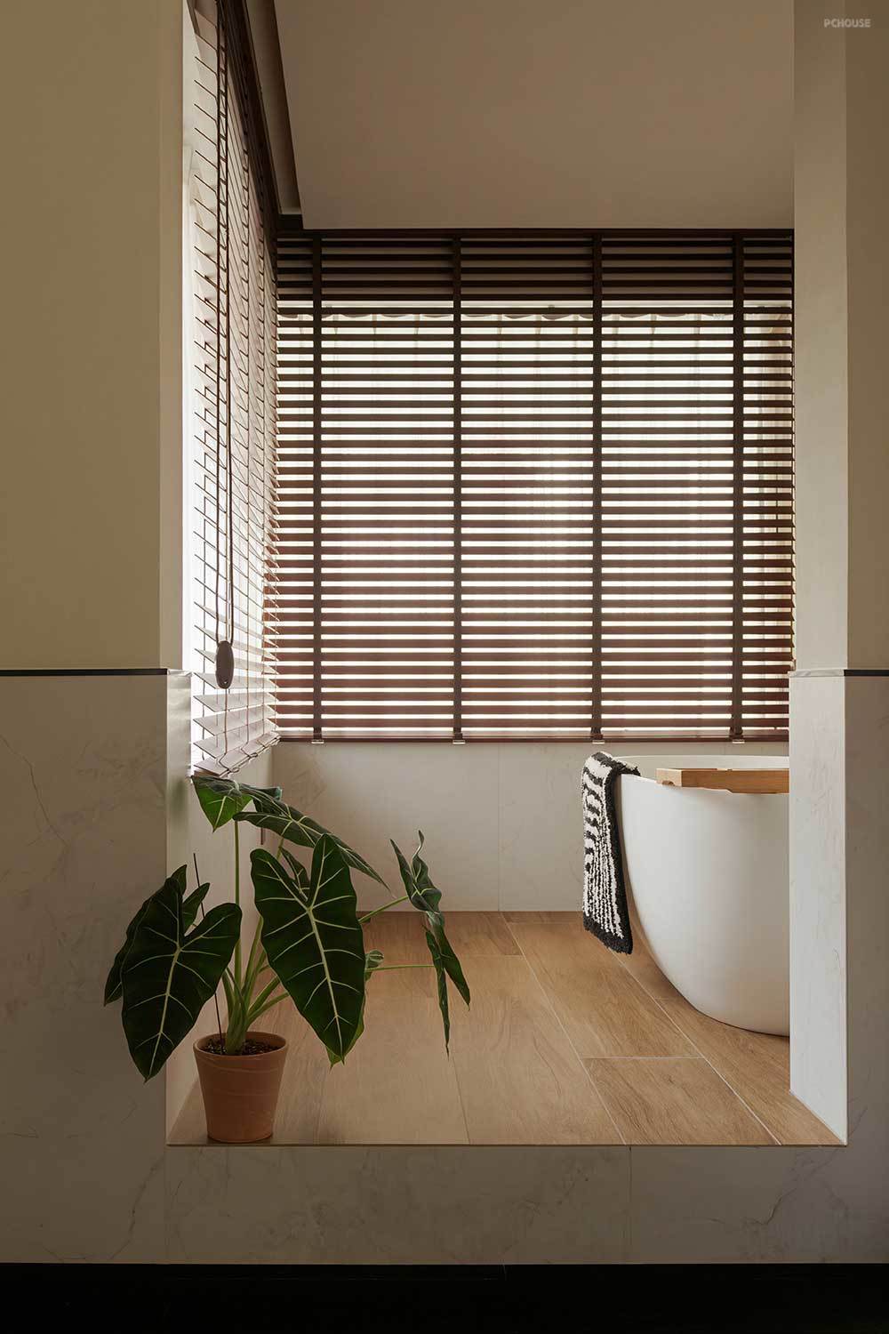 卫浴空间专门利用了一个小空间放置了泡澡浴缸,和淋浴分开,是一个独享空间。