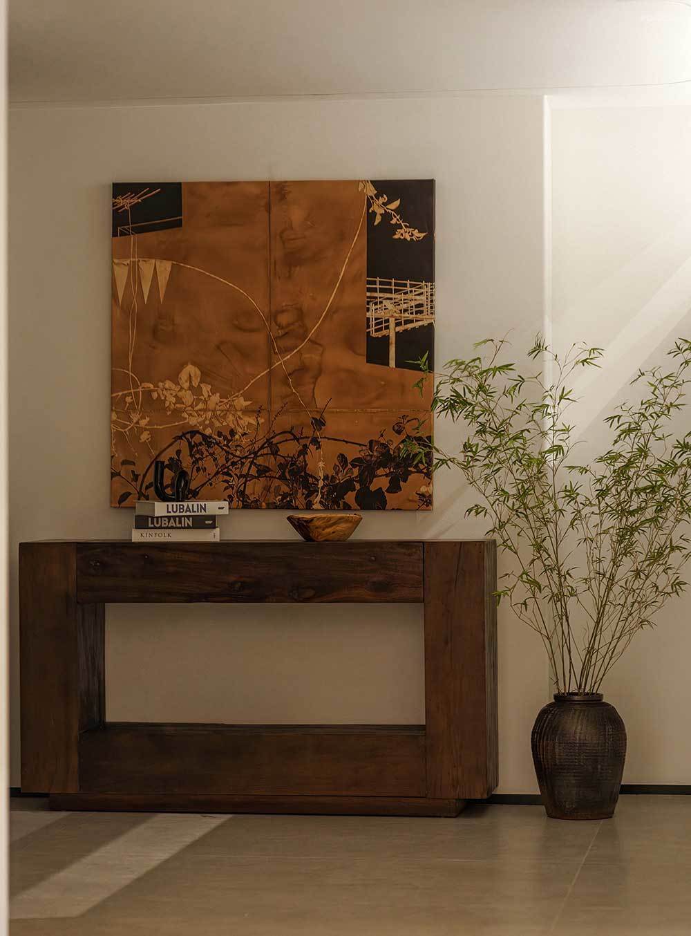 即使在一个充满运动活力的空间里,设计师还是大量使用了一些具有“静”的元素的软装,来中和生活与兴趣,兴趣与空间的关系平衡。