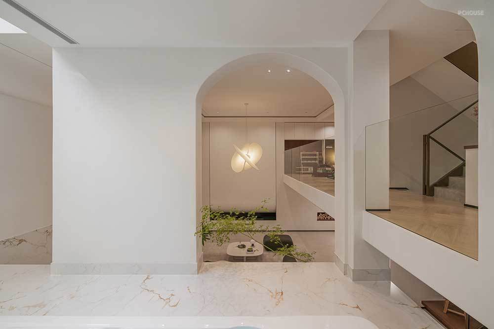 各个空间都有一个不一样的视角,都是半打开的状态,没有做封闭,而且设计师还利用了造型墙,使得每个空间望去都是一种风景的状态。