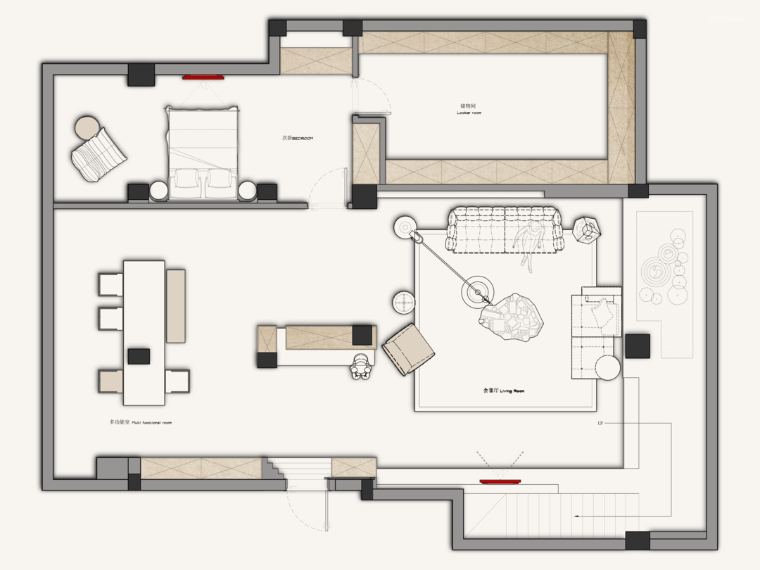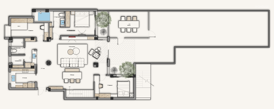 2.楼梯位置改造后,把客餐厅与卧室调换与合并,让整个客餐厅的采光更加宽敞通透。