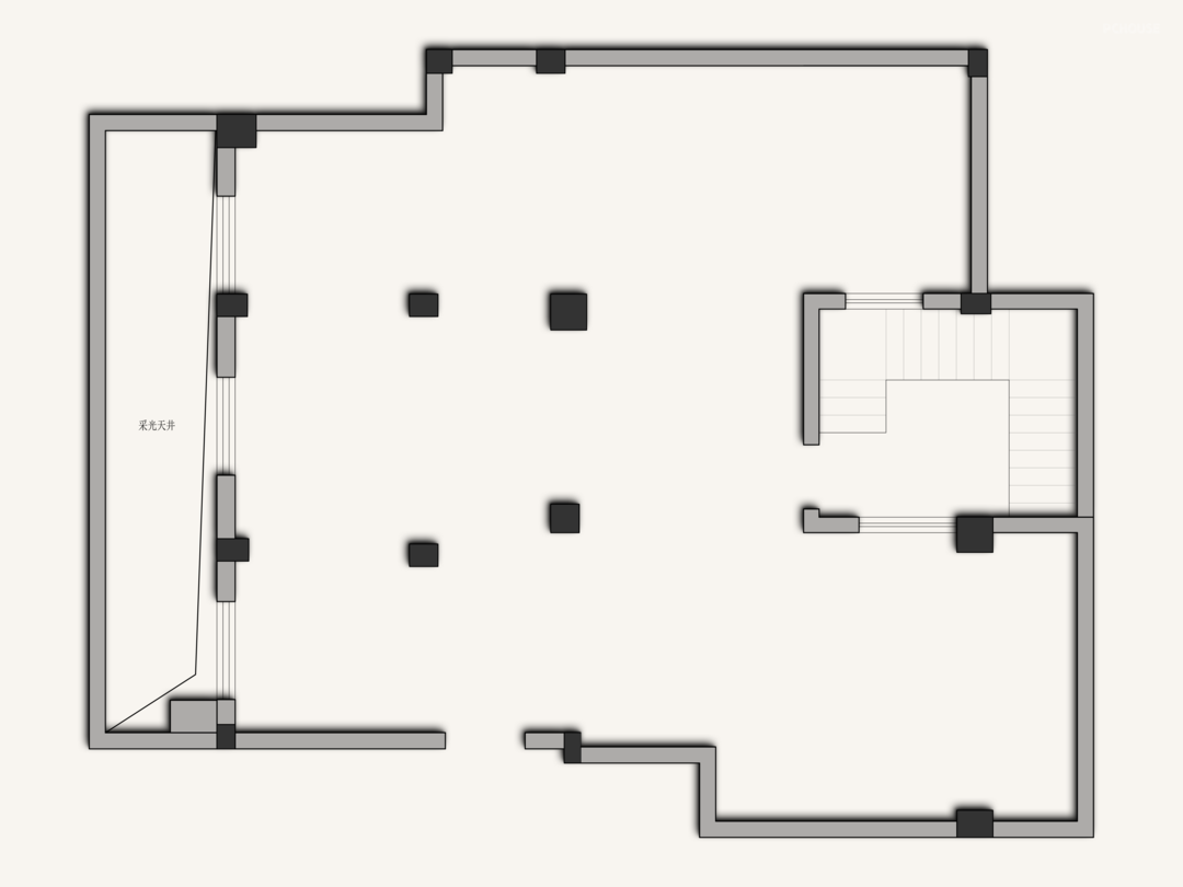 3.缺点:楼梯占据面积比较大,把空间分割零碎,空间承重柱大小不一,且不平行对称