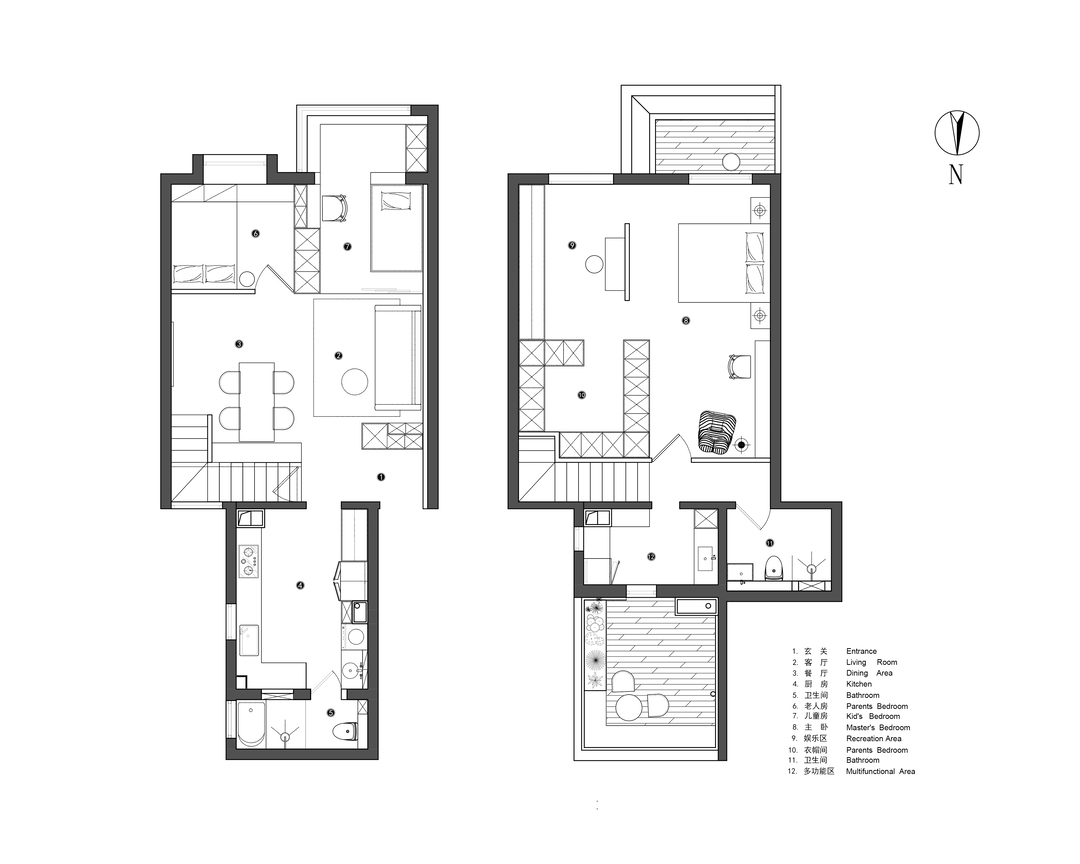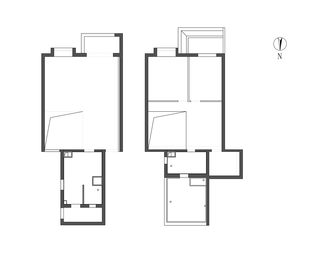 在北京,复式住宅很受房客欢迎。然而,尽管这幢房子面积不算小,二层又有很优越的层高,但一层层高不是很好且并不适合车车一家的居住要求,所以需要全部重新拆分。