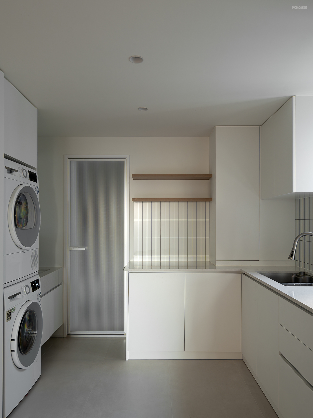 设在门厅旁边的厨房,是车车喜欢的空间。“我热爱烹饪,尤其是那些我从小看着母亲制作的家常菜。”车车说。