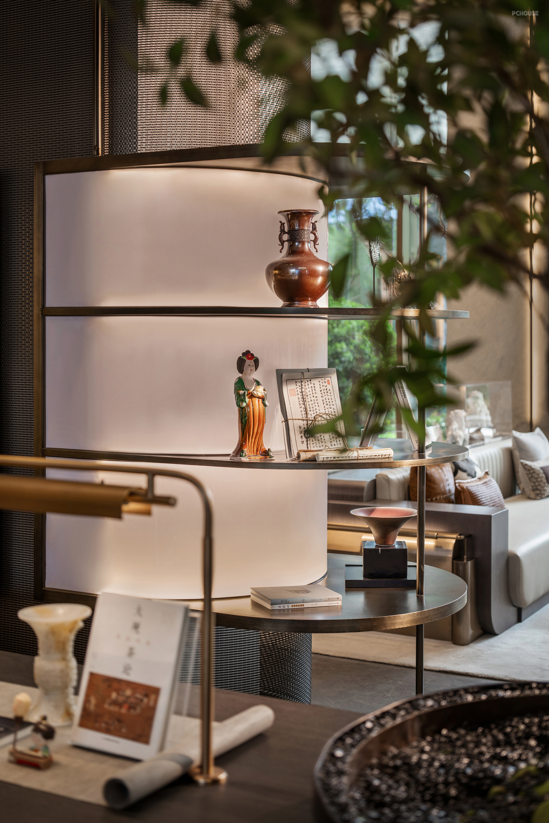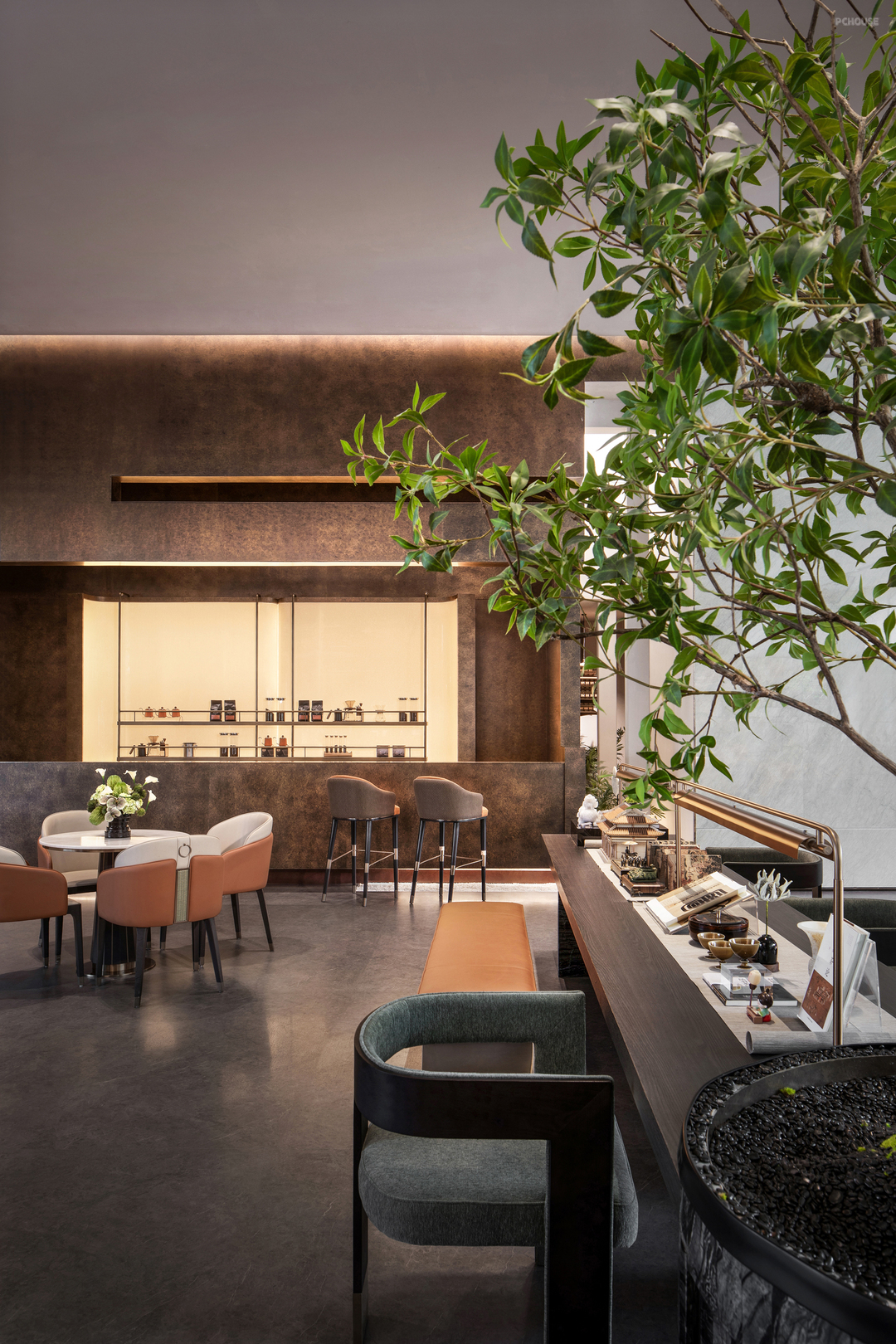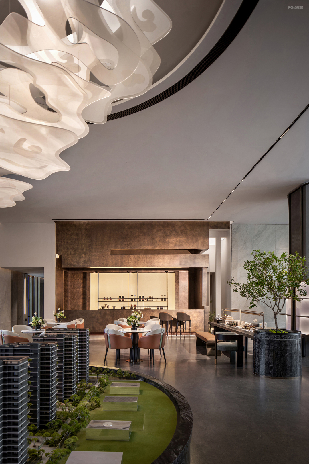 光影筑室,自在流动,将君子风范引入室内,悬挂的松树如同自然界的绿洲,旨在创造一种自然和技术的融合体验,为城市空间带来一抹生机。