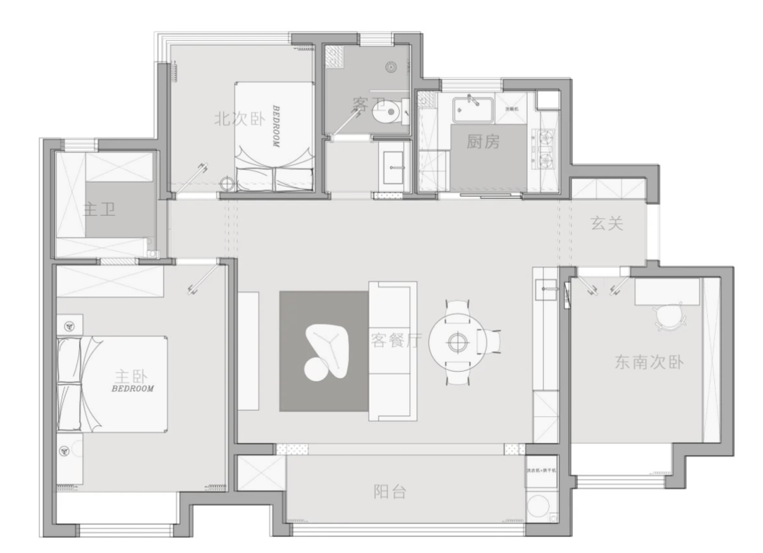 屋主需要具备仪式感的衣帽间,我们改变户型结构,将之前主卫所在的房间独立出来。