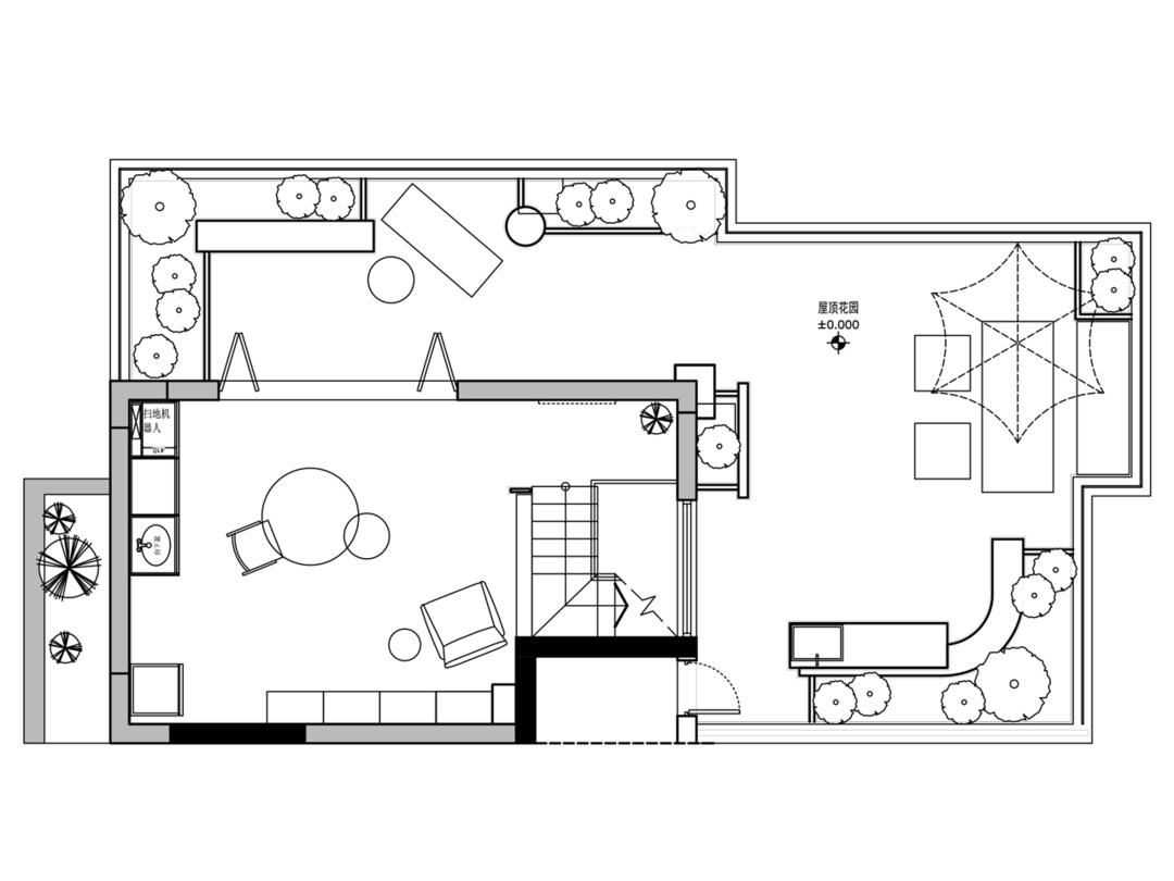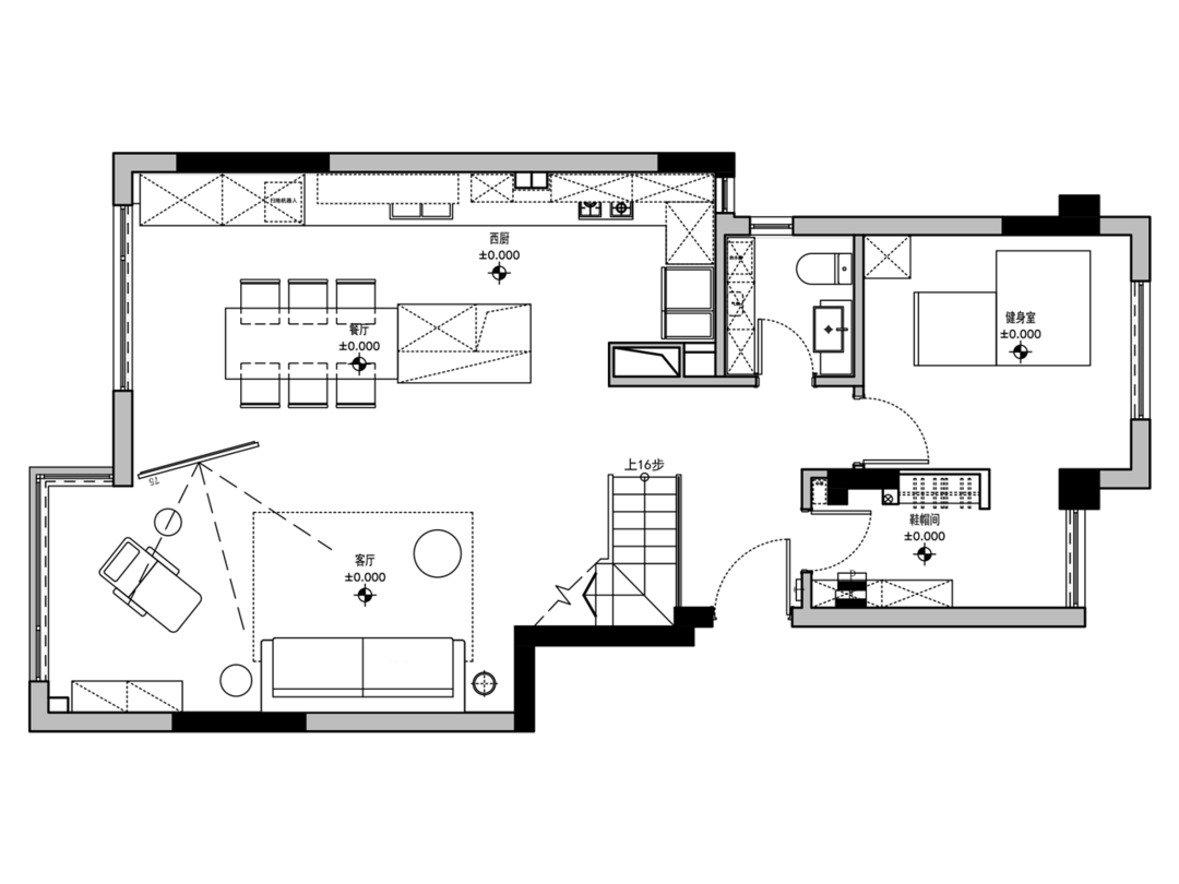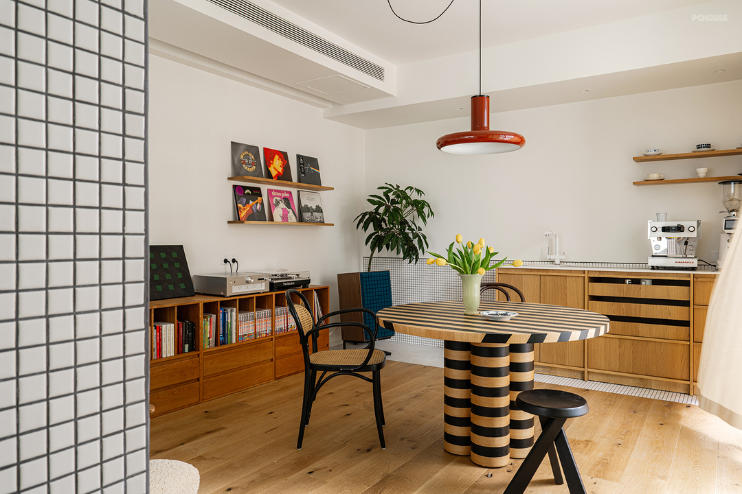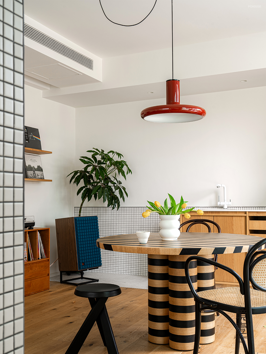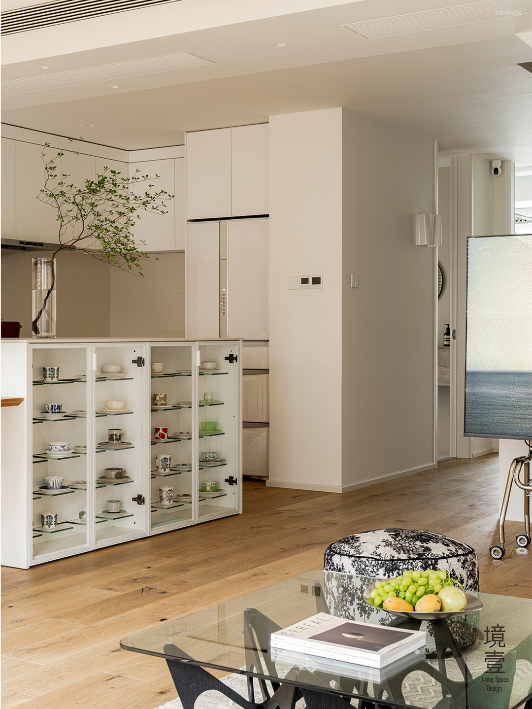 前言: 本案面积210平米,目前主要是业主独自居住。希望自己的空间是开放式的,空间是敞亮并且整体放松的感觉。所以拆除原有厨房空间,重新分配整个公区。如此,模糊餐厅与厨房界限。让餐厨变得宽敞而明亮,餐桌与岛台相连。与业主讨论后觉得可以控制卫生的前提下,首次采用了地板通铺作为西厨地面。