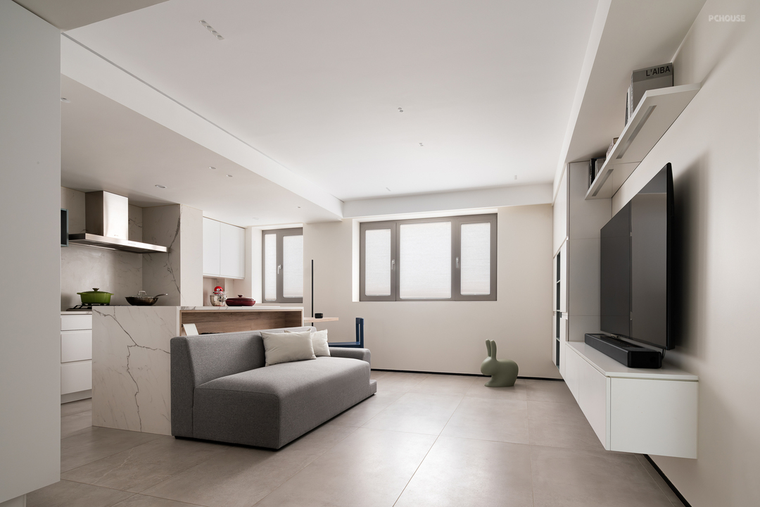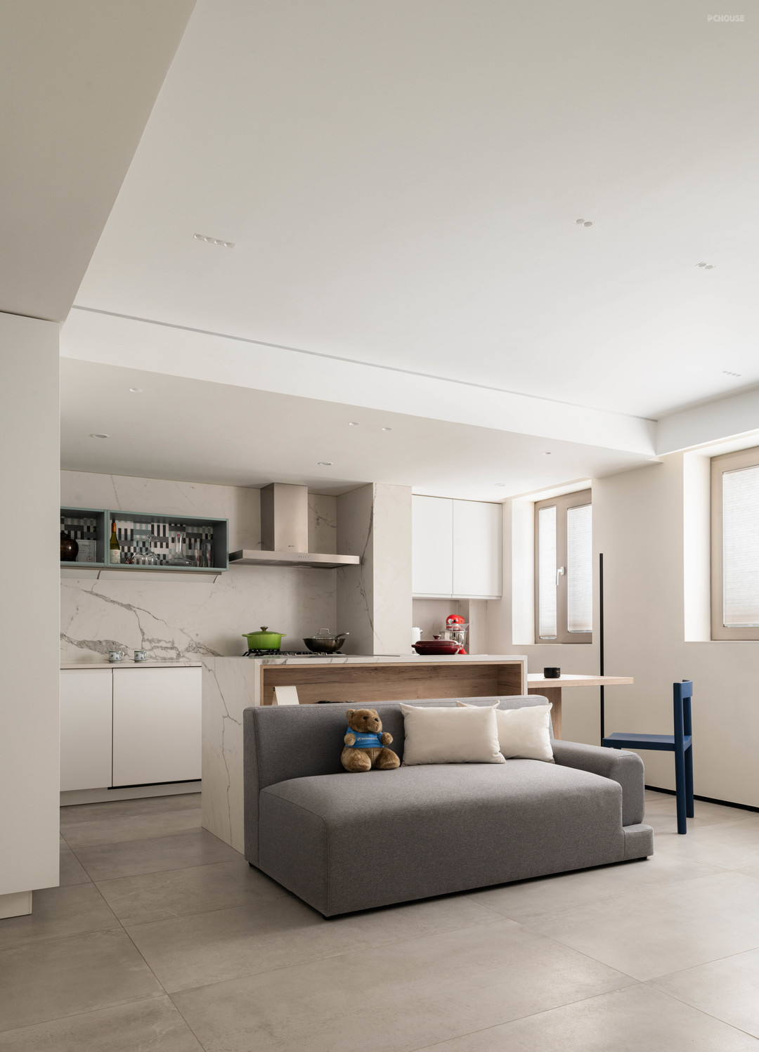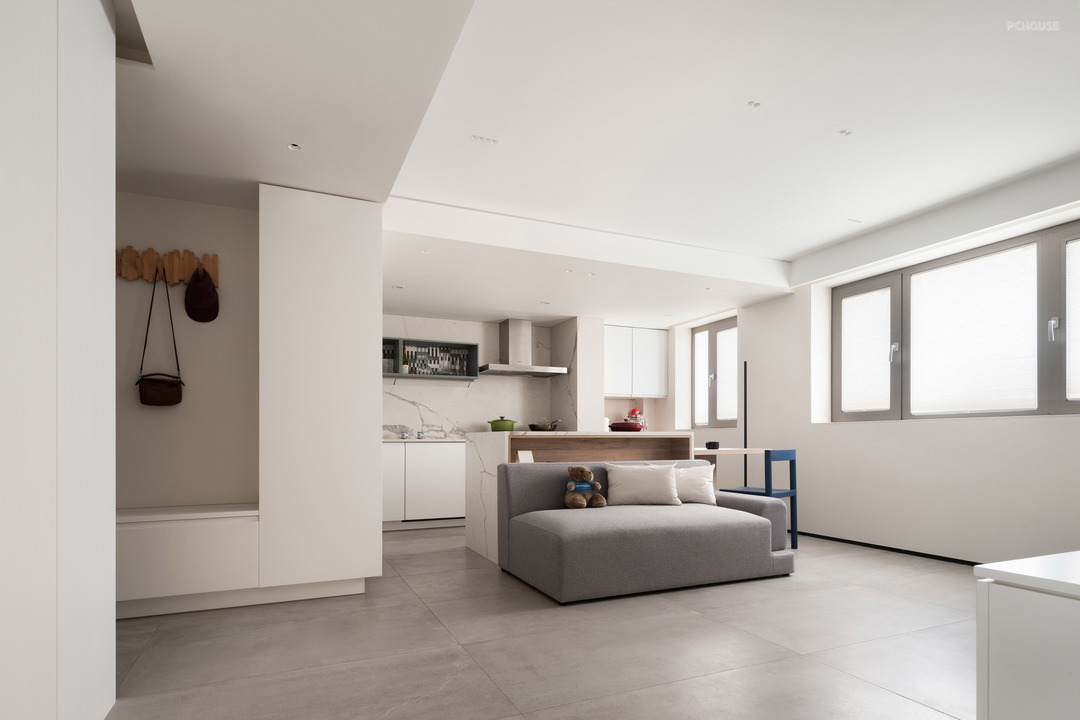目前居住夫妻两人都喜欢开放空间、具有沟通性,能感知有温度的生活方式。
