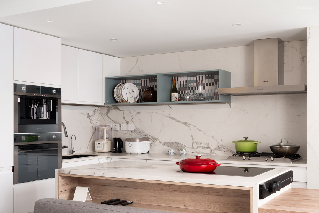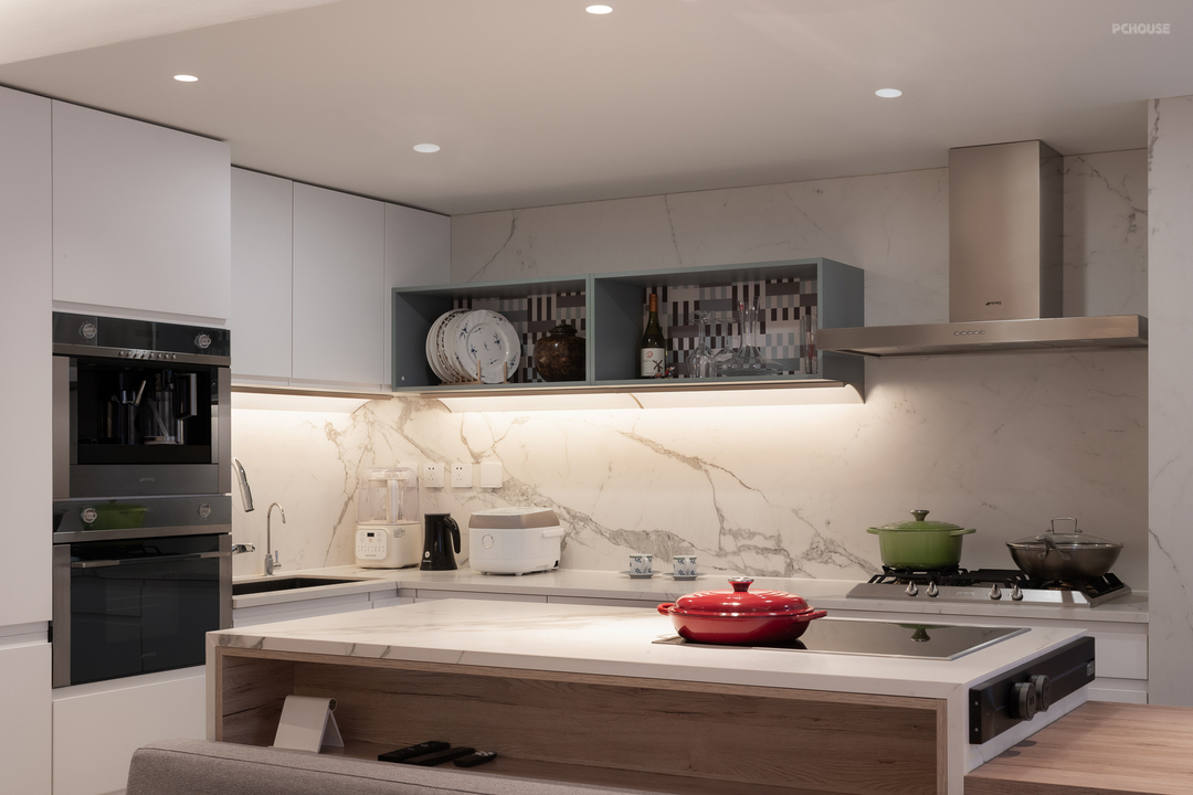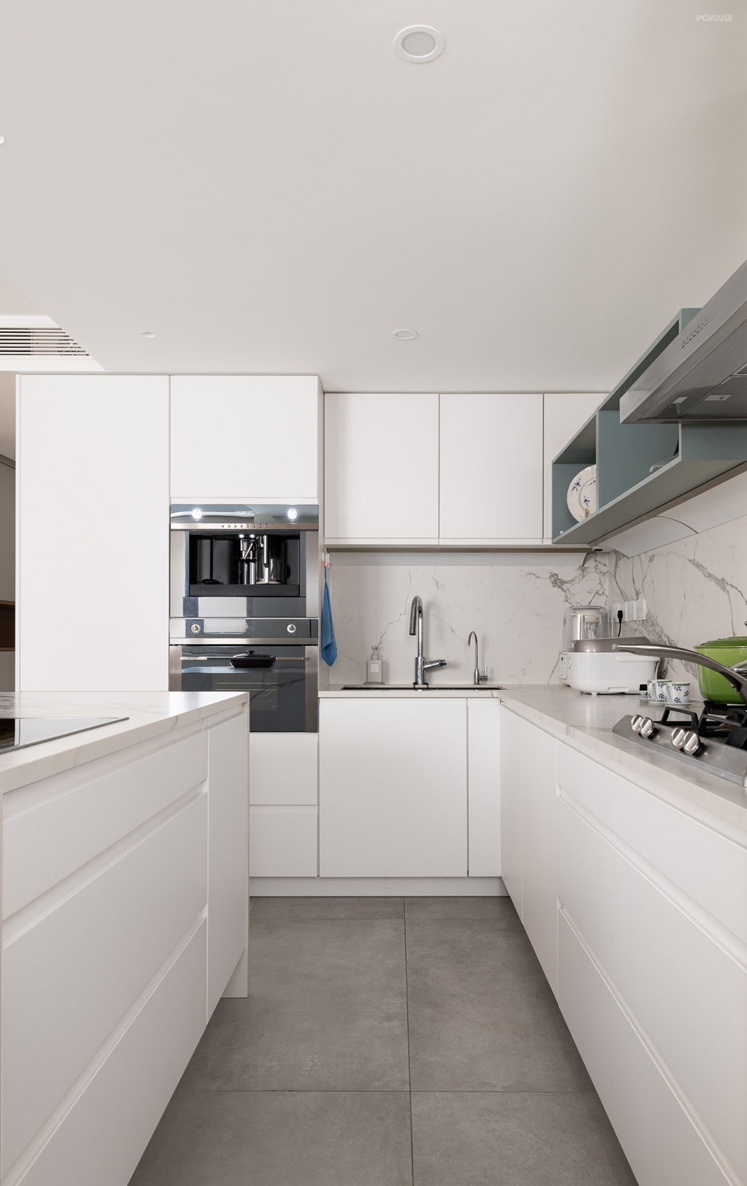 家的温度,往往源自于一餐一饭的相聚时光。我们打破原有封闭厨房的界限,拆除轻体墙,让客厅、餐厅与厨房自由连通,形成一个开阔明亮的共享区域。这里不再只是烹饪的地方,而是融合了美食、交流与陪伴的情感核心——女主人可以一边准备餐点,一边与家人互动,柴米油盐的日子也因此成为最温馨的日常场景。