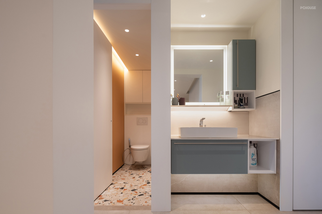 考虑到未来三口之家的生活节奏,我们将卫生间功能做了细致分离。洗漱区独立设置,与淋浴和马桶区完全分开。这样,晨间忙碌时段也不再冲突,刷牙洗脸、沐浴如厕各自有序进行。功能上的巧妙拆解,让空间更贴合真实的生活场景,在细微处提升家的舒适与从容。
