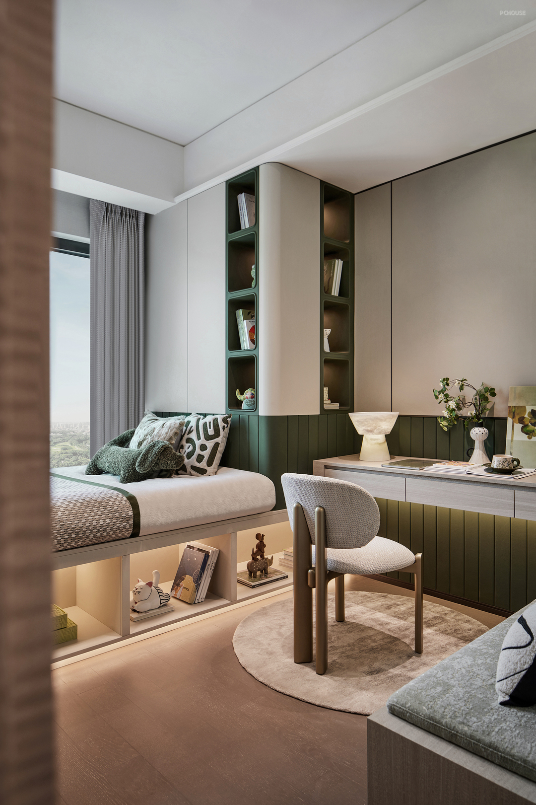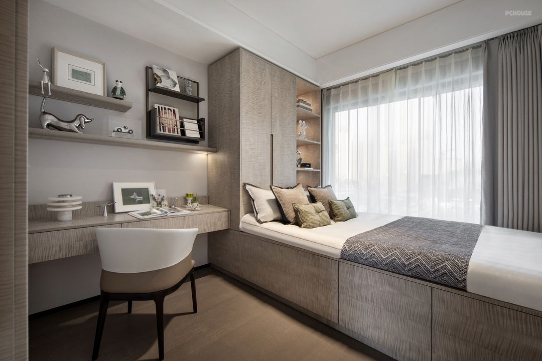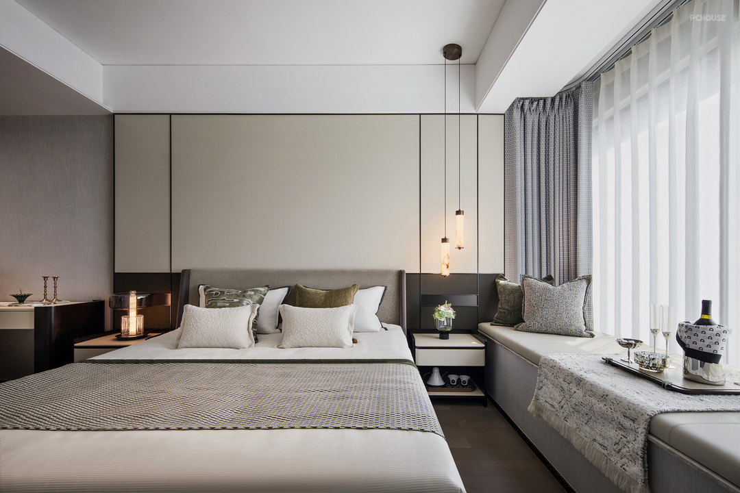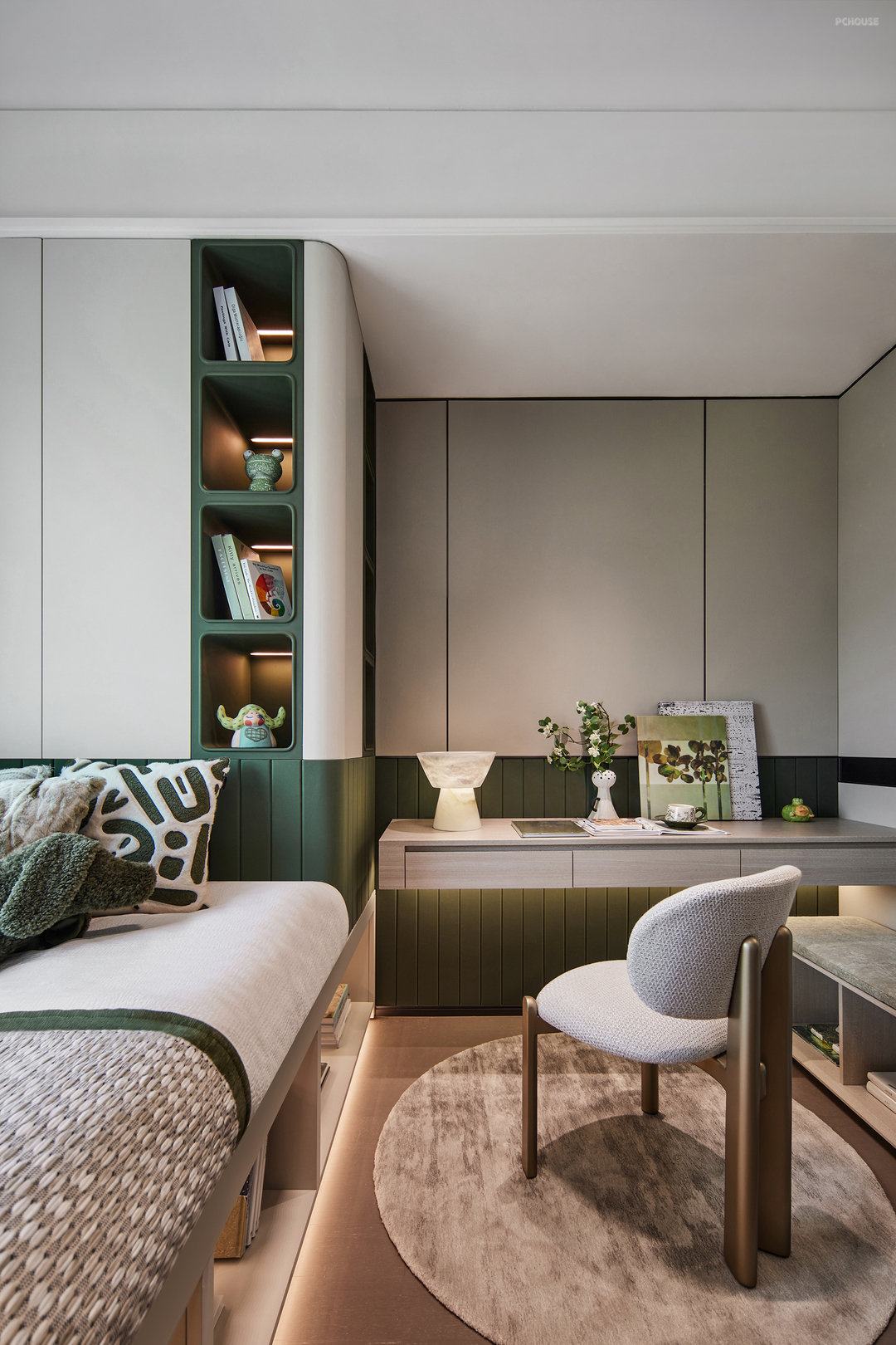 休闲娱乐区与客厅、餐厅自然衔接,米色座凳依窗而设,在这里,女主人能伴着晨光舒展身姿,沉浸于瑜伽的宁静;一家人可围坐闲谈,沐浴在阳光与欢笑中;亦可独处画画,阅读,在诗意与窗外景致交融的氛围里,享受惬意的休闲时光 。