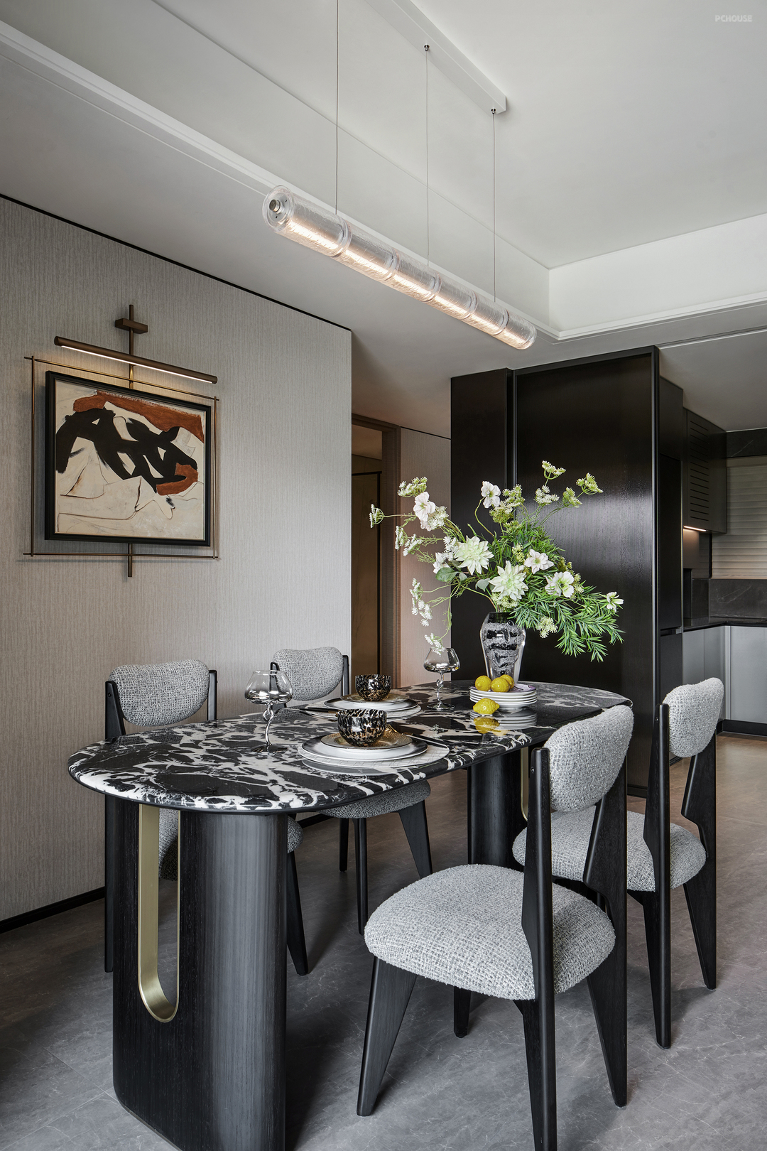 空间以 “艺痕时序 谧境共生” 为核心理念,深度融合每位家庭成员的生活轨迹与兴趣偏好,精心雕琢一处功能与质感并存的理想栖居之所。