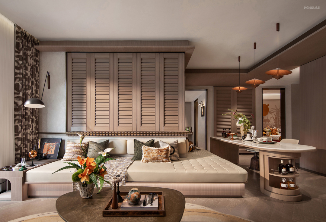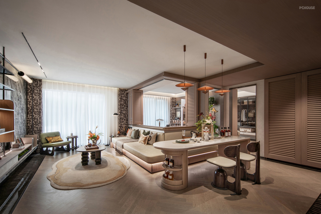 餐厨岛台的围合、客厅沙发的排布、阳台绿植区的共享园艺角,皆为能量流转的载体。对话随晨光生长,陪伴伴暮色沉淀,空间化作养分催化剂,让每个个体在默契的共生里舒展,让整个家在时光里持续向上,酝酿出更丰盈的生命力。