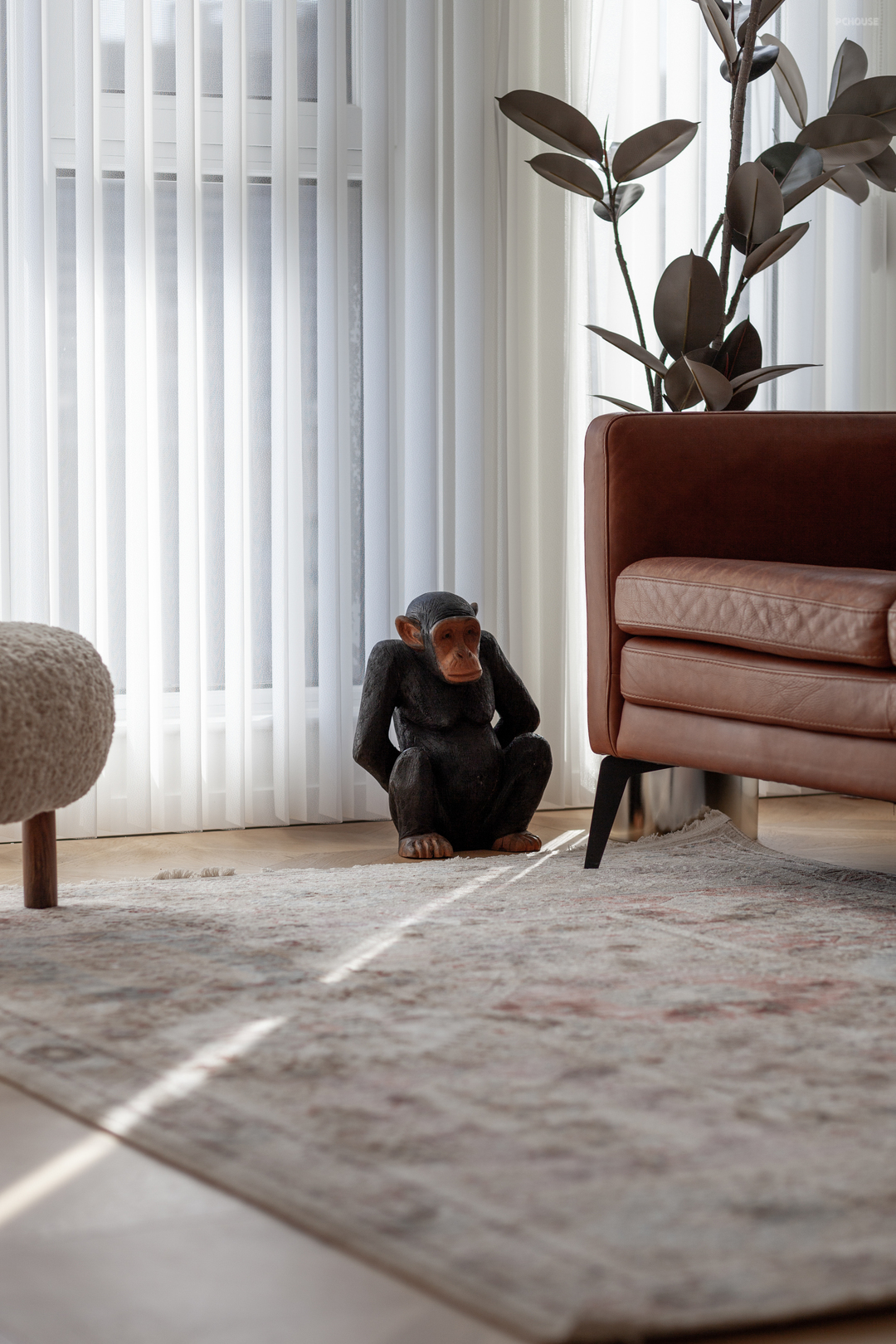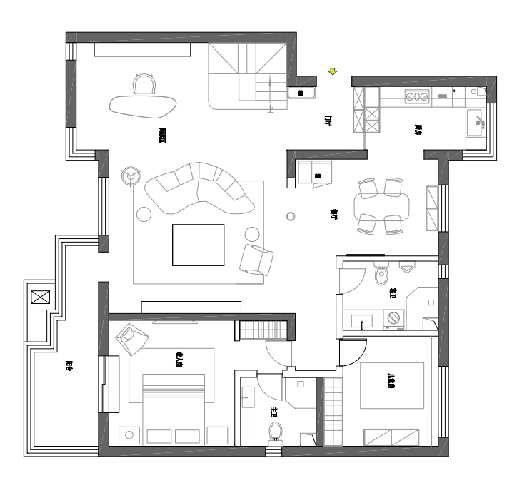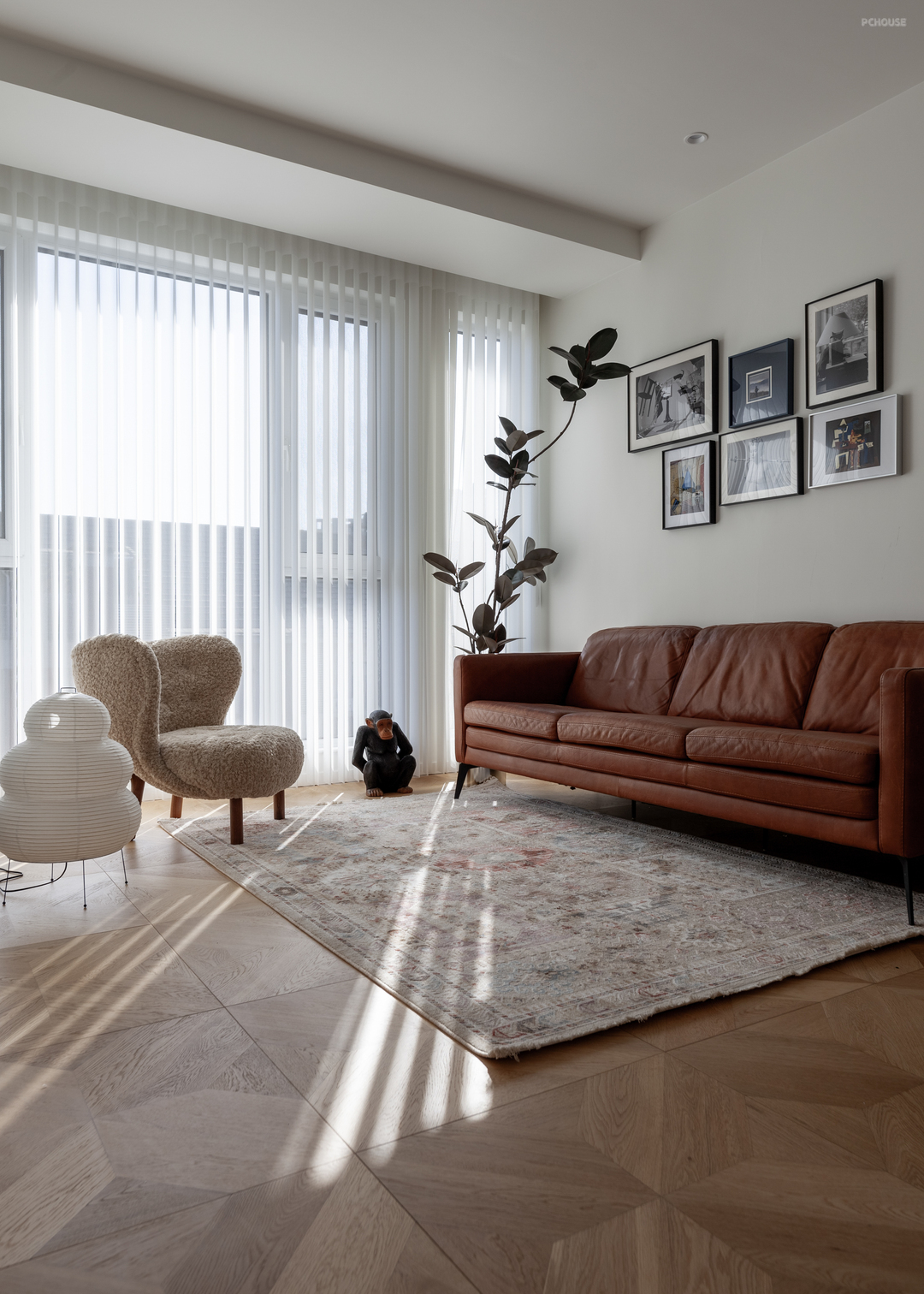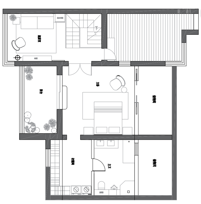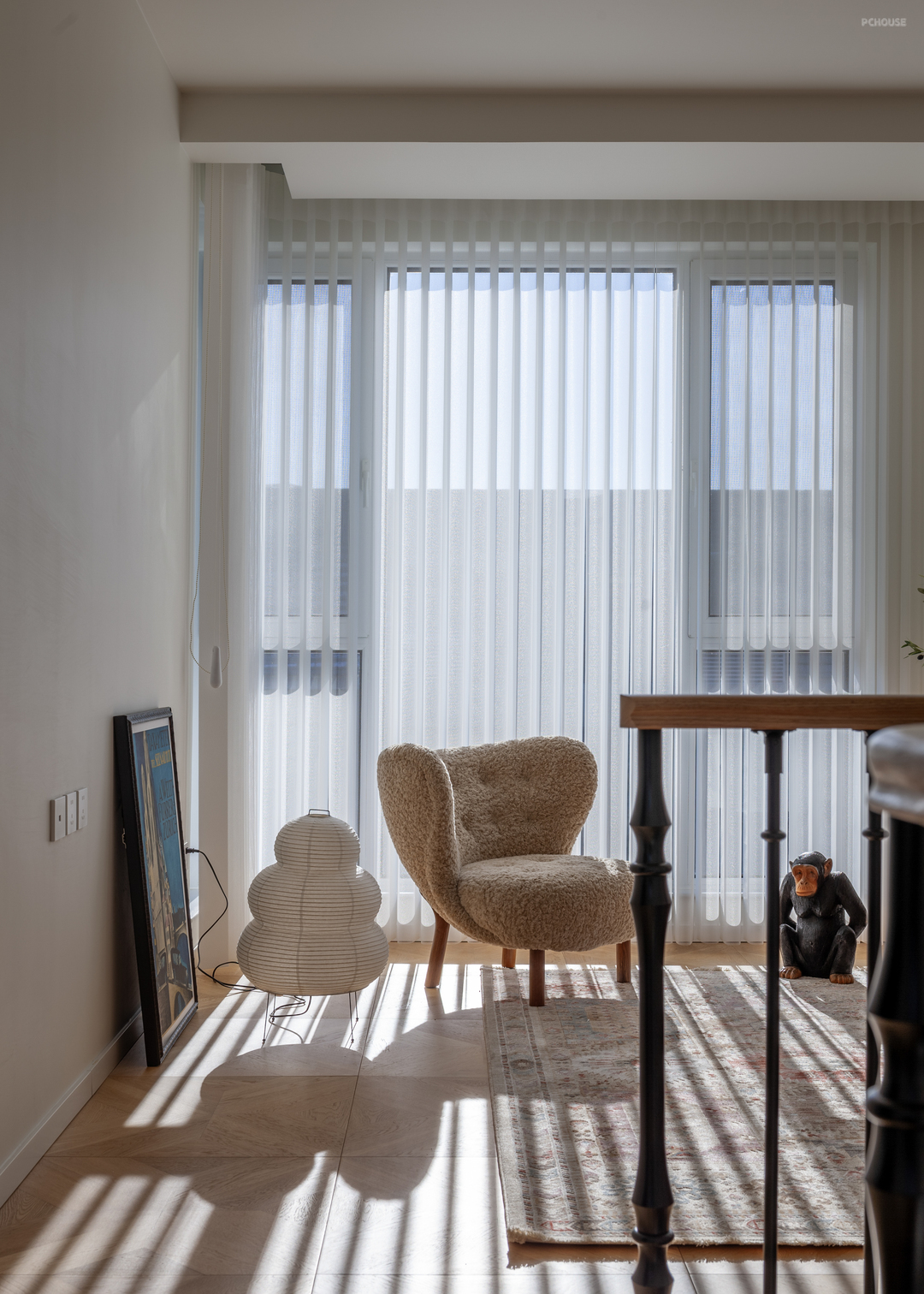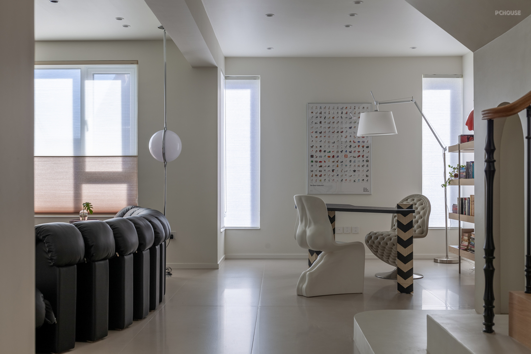 墙面通刷的浅色底调,增强了对家具的兼容性 。此外,休闲厅中沿用了屋主原有家具,往日使用的留痕,彰显着生命的厚度,而与斑驳光影交错之下,仿若将那些故事娓娓道来 。