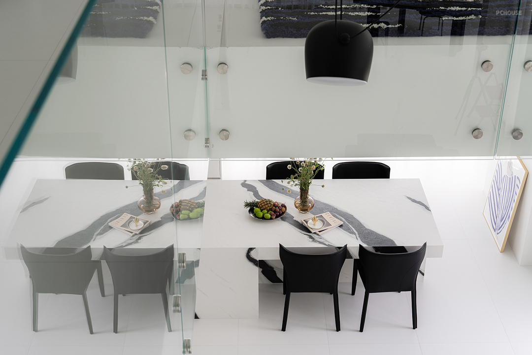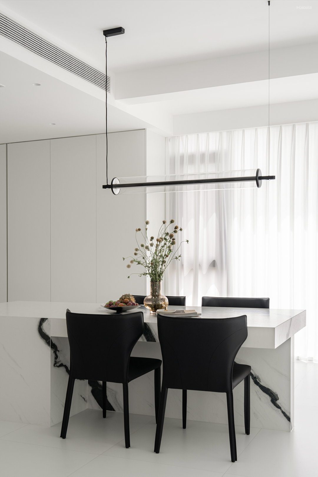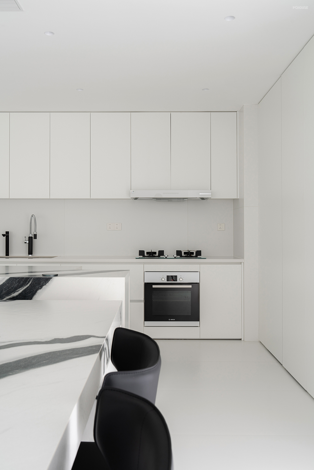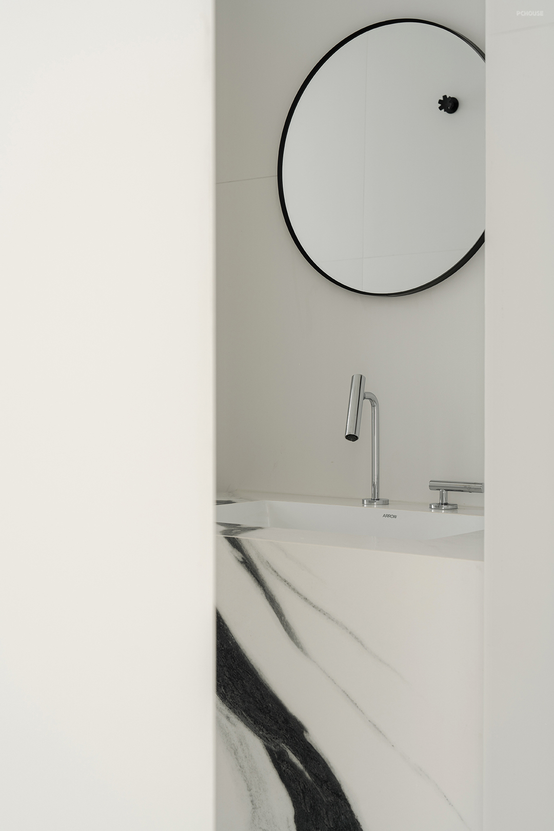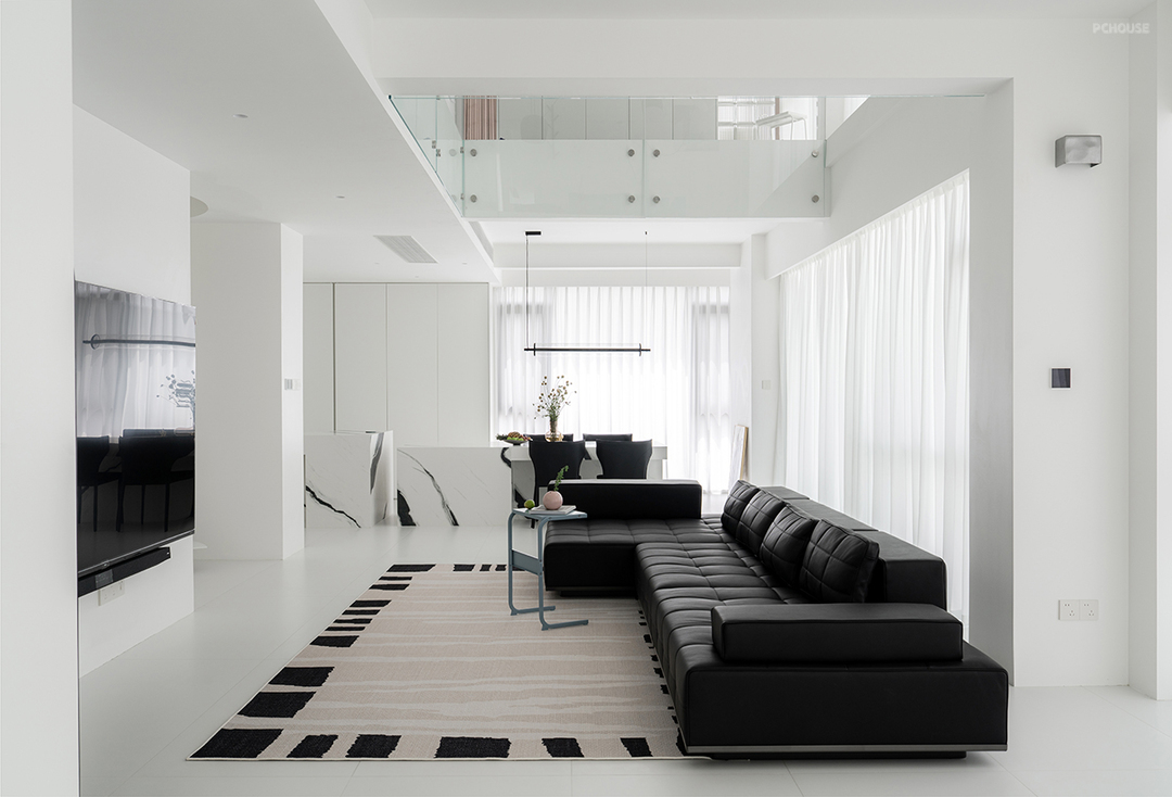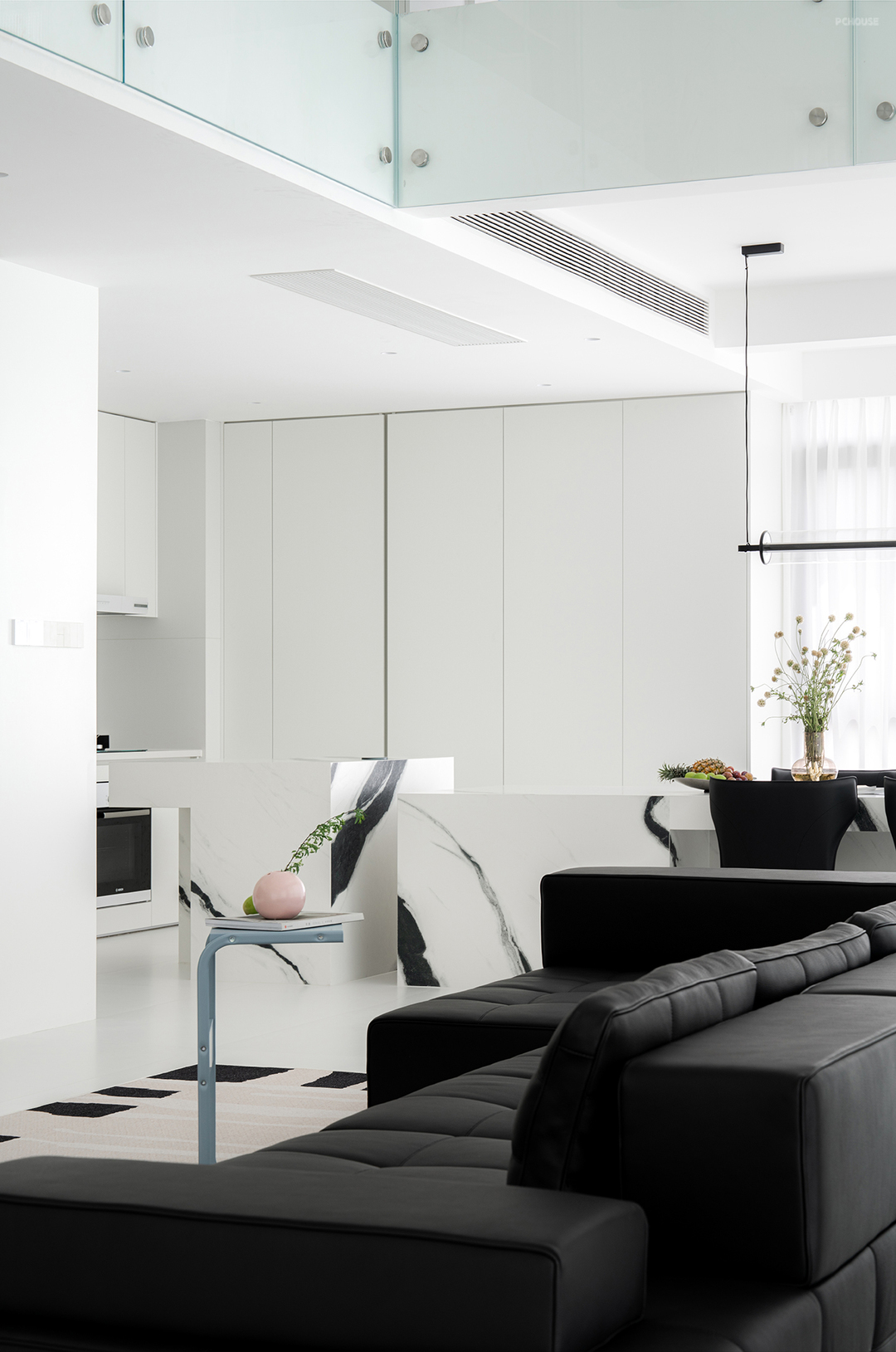 我当然喜欢这样特殊的设计,在通过详细沟通后看,我们把这种特殊化又推进了一步,在空间风格上,我们决定用极简极白的方式来处理空间,之后再软装中加入少量色彩。