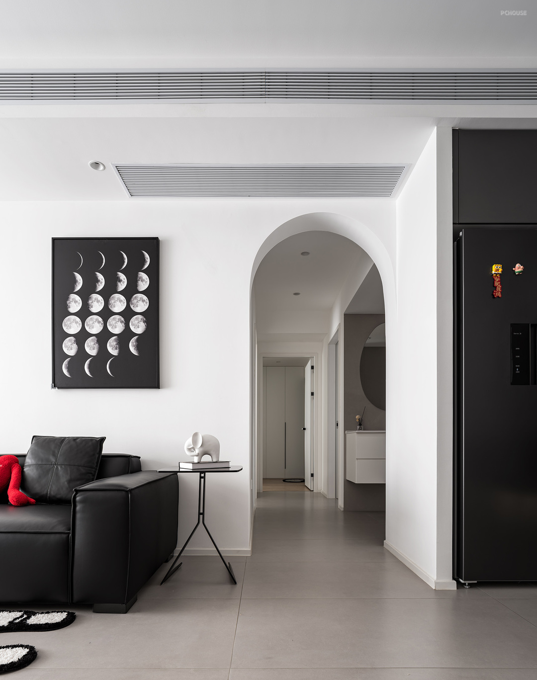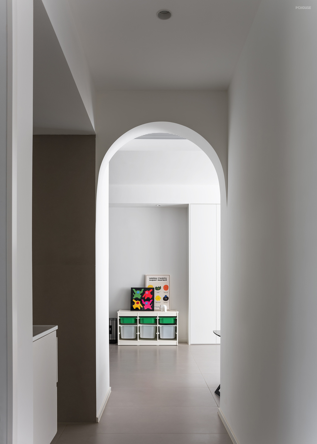 客厅的走廊利用横梁高度,在这里做了一个圆拱造型,这样去到卧室空间,更加有仪式感。