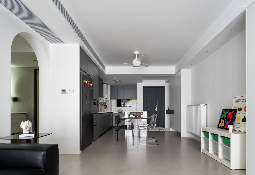 前言: 业主是一对90后的小夫妻,两人从事航空行业,有个3岁的儿子,因为明年儿子要上学,今年想要把自己的房子装修一下,夫妻两个都比较喜欢现代简约的风格,哑光质感和精致的通透感是两个人共同的诉求,因为原户型厨房面积比较小,希望我们能对户型进行一定的改造,把厨房空间扩大,让整个空间变得更为通透,提高互动性,让亲朋好友过来玩耍时能够更为舒适自由惬意。