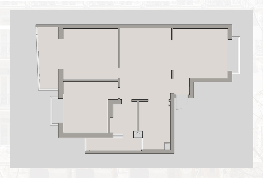 2、将原有卧室和客厅、客厅与餐厅之间的墙体进行拆除,通过新建增加客厅和餐厅尺度,拆除客厅和阳台之间的移门,延展室内空间;