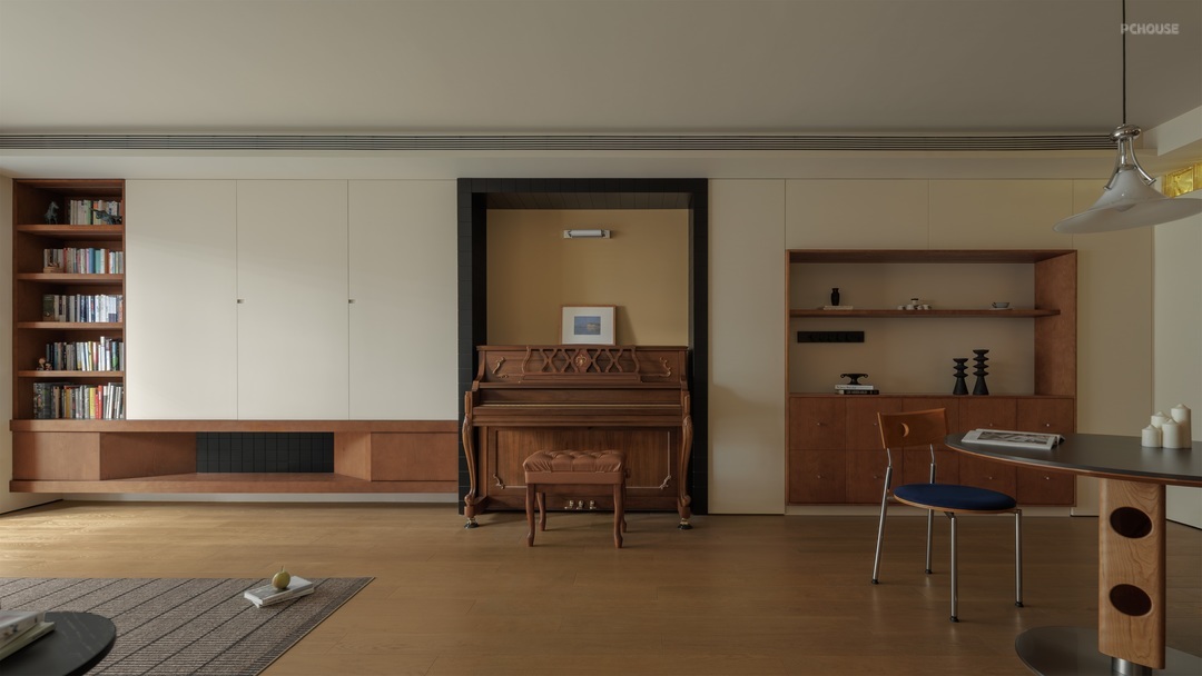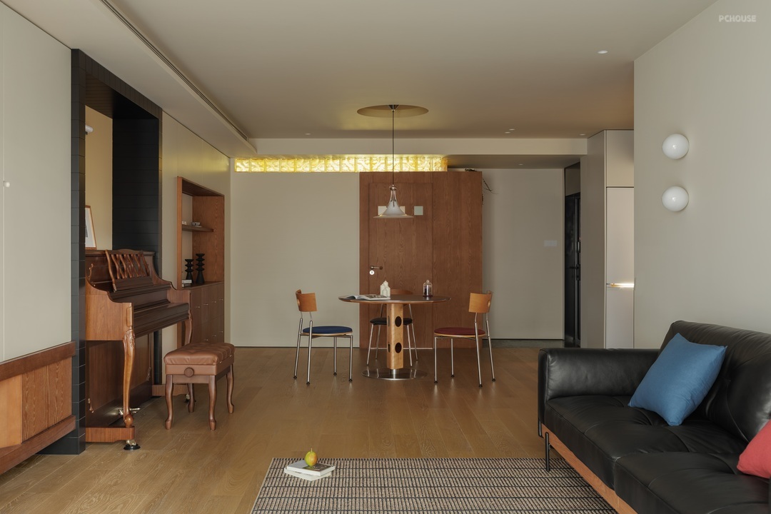 设计师根据屋主的需求与喜欢的元素,在风格上没有特别定义某种风格,而是根据屋主的喜好,空间糅合了现代、中古、包豪斯不同的元素去设计;