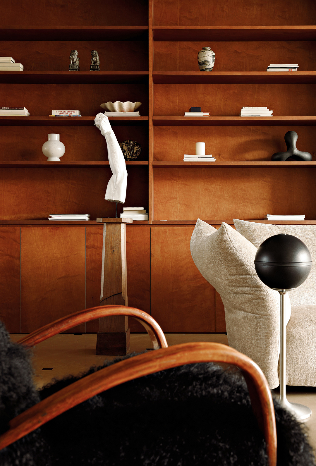 原本的客厅是沙发合围电视的传统布局,在现在已经不再适用了。取而代之的,是更符合业主家庭生活的被收藏品环绕的会客沙龙。