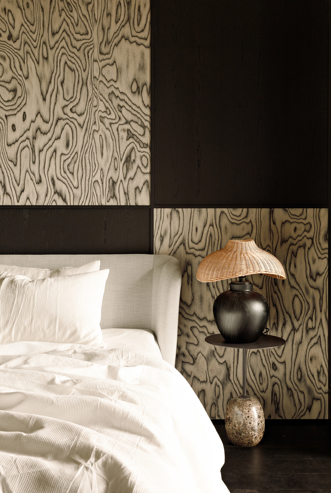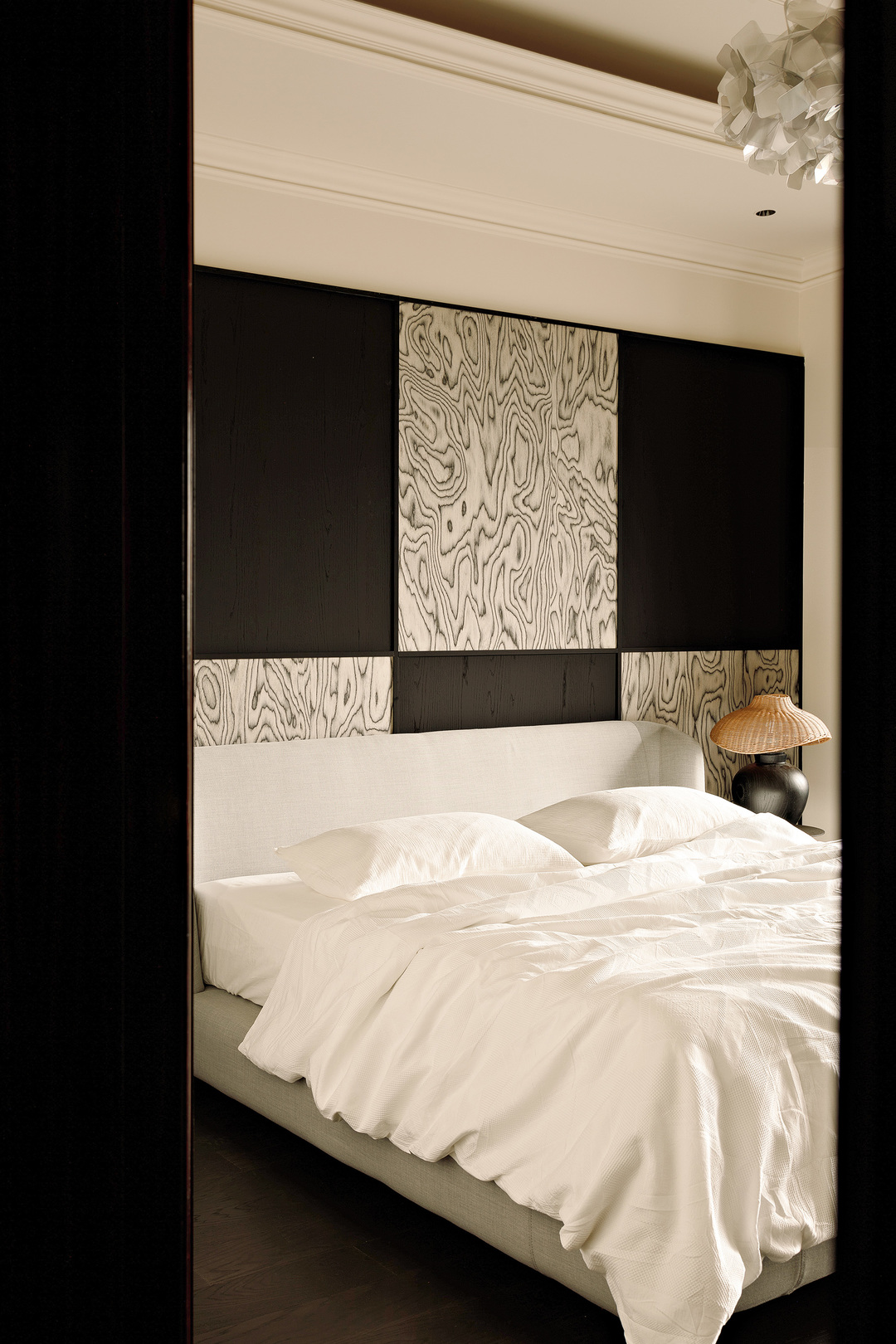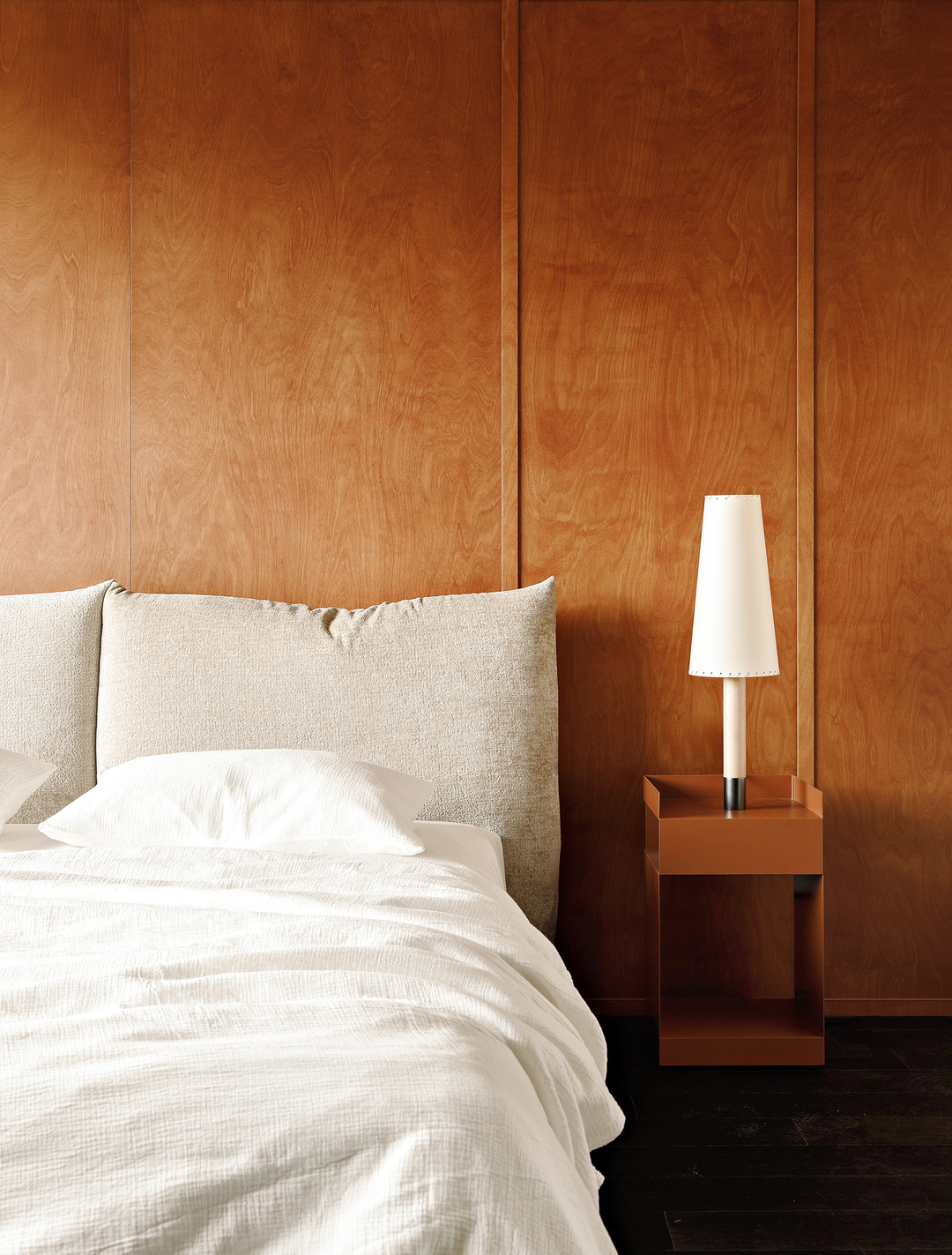床头增加了木质护墙板,用来和家里的木元素呼应。