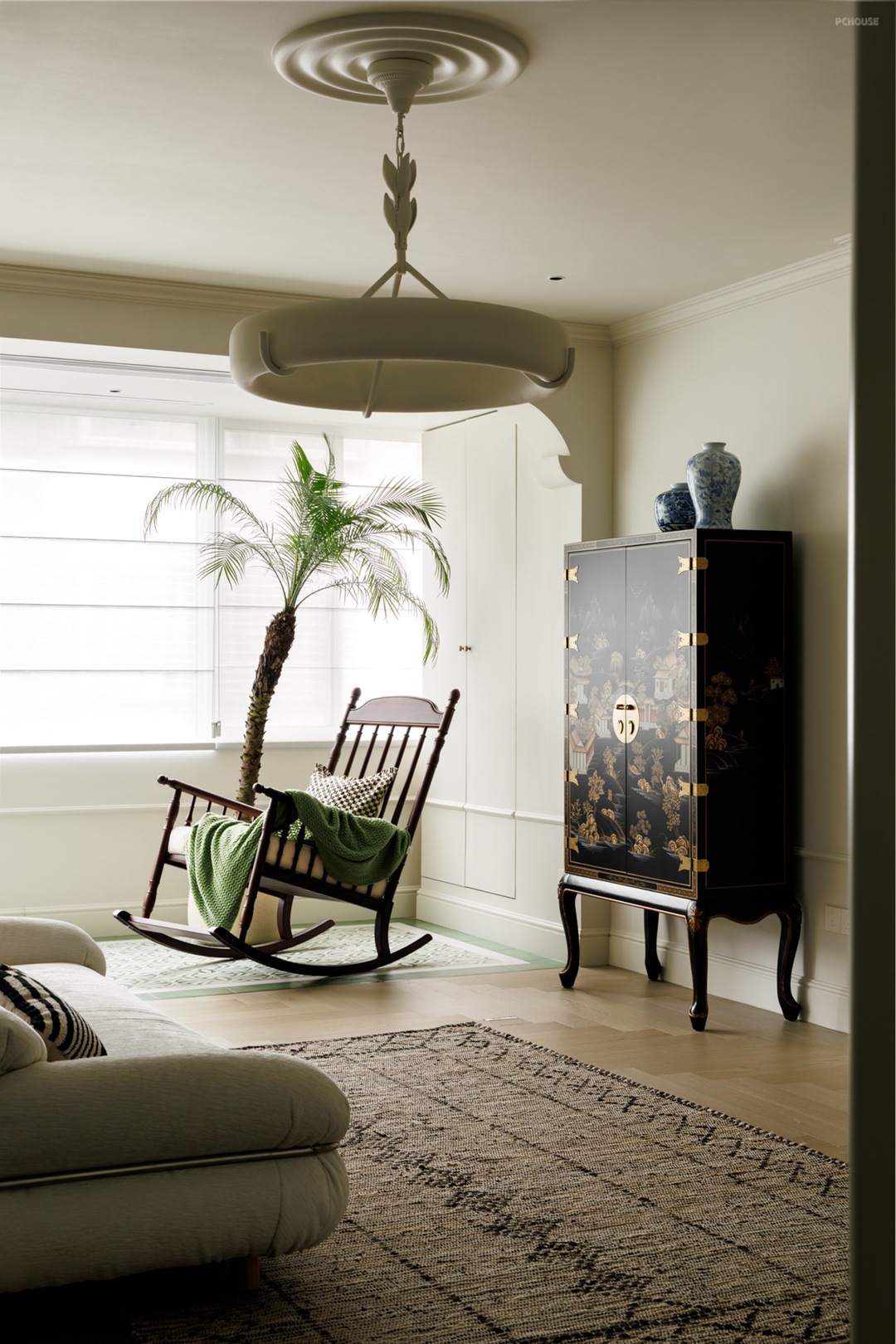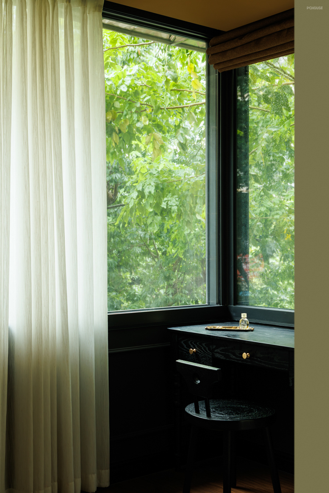 当把室内设计也把“绿”放大后,内外交相呼应,在家躺在摇椅上,又好像呆坐在树下,似乎都能听见婆娑树影晃晃悠悠的沙沙声。