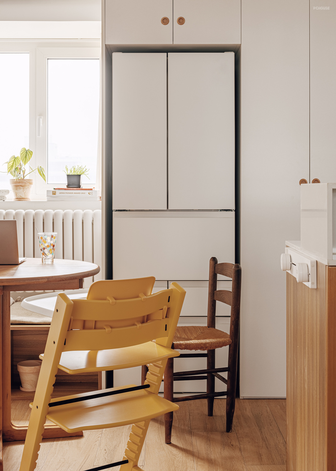 便更好地将她的收藏置入其中。餐椅来自失物招领,宝宝椅来自